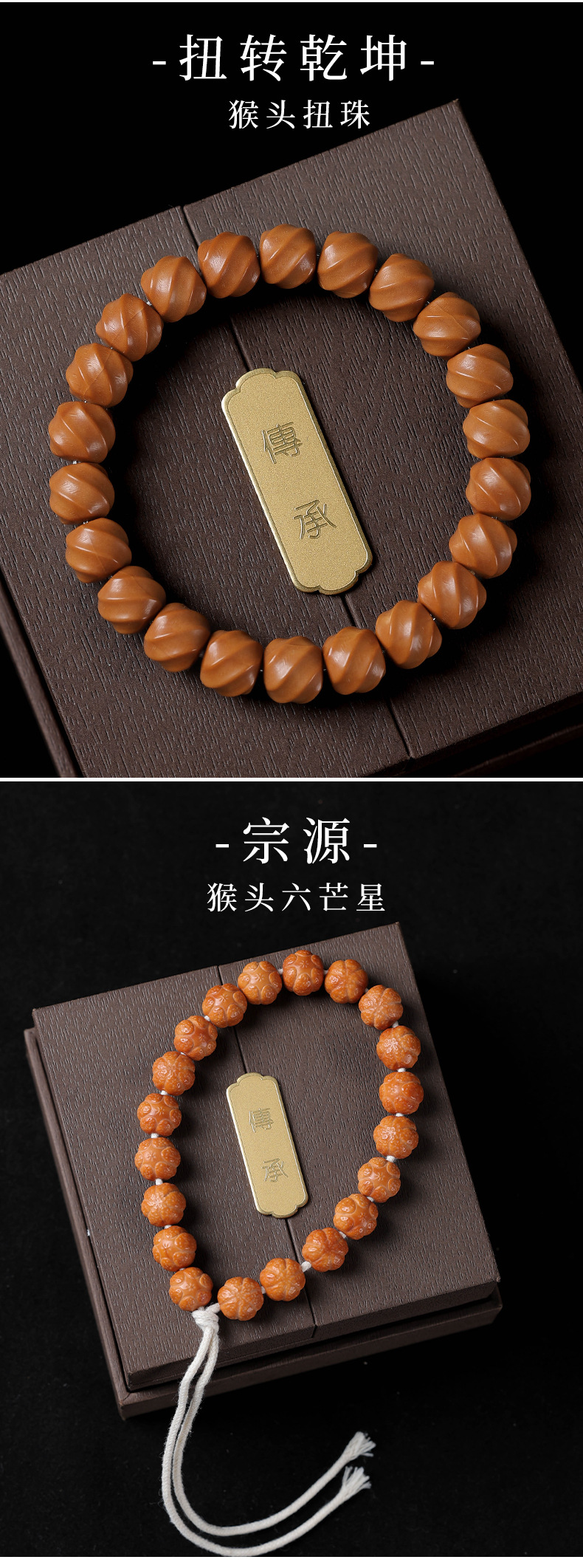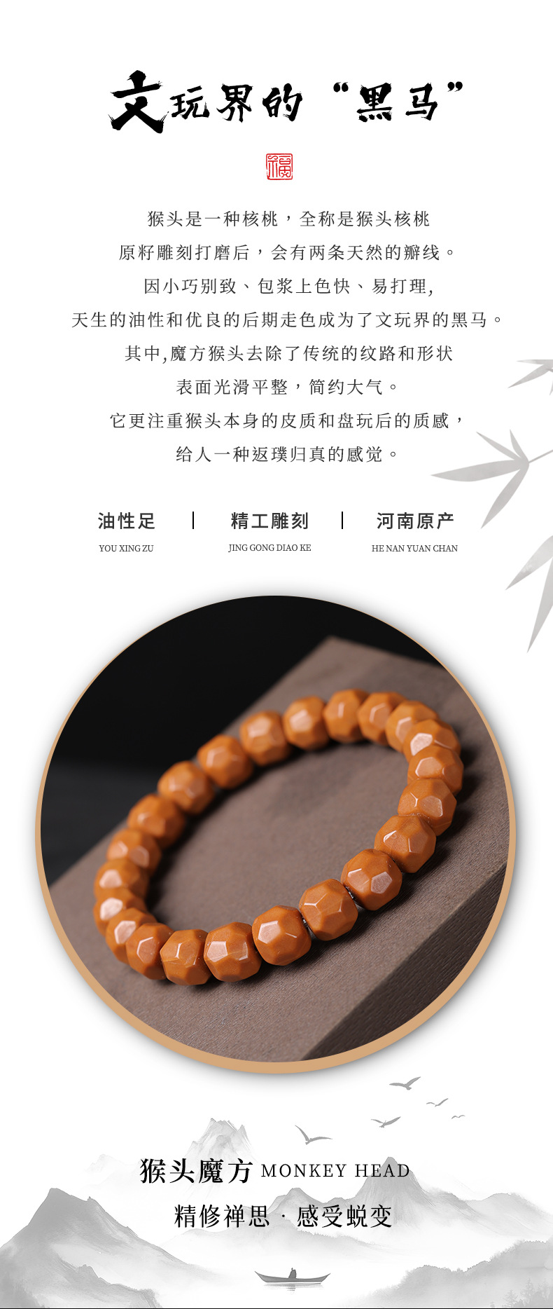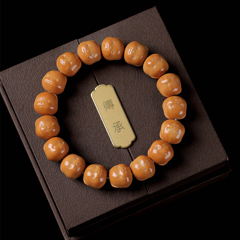精品老型桶猴头手串正圆雕刻全品核桃单圈文玩男女士佛珠手链批发