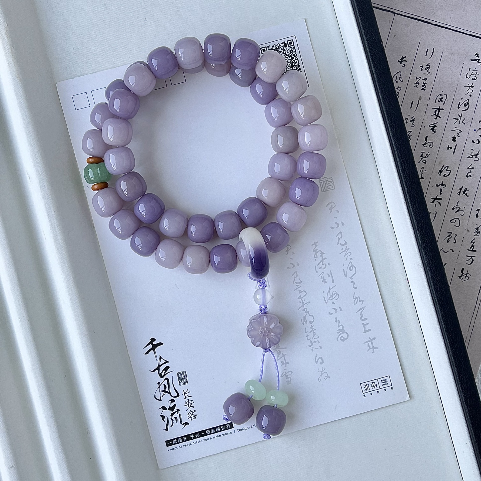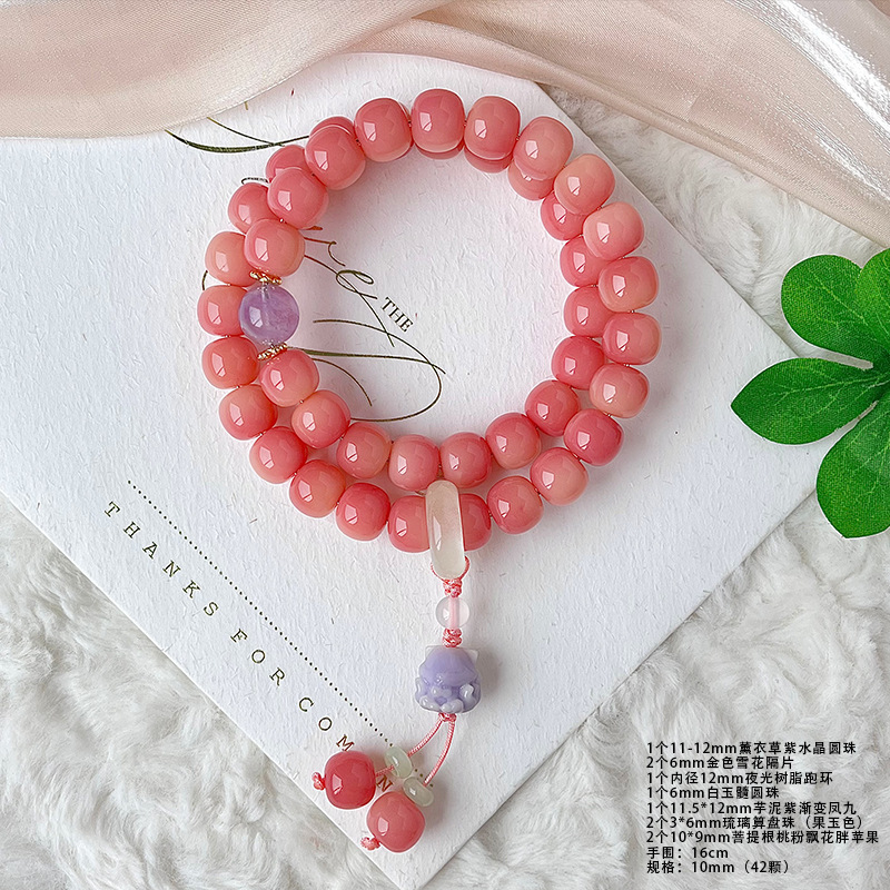 天然蜜桃粉渐变菩提手串学生双圈手持男女菩提子佛珠念珠文玩批发