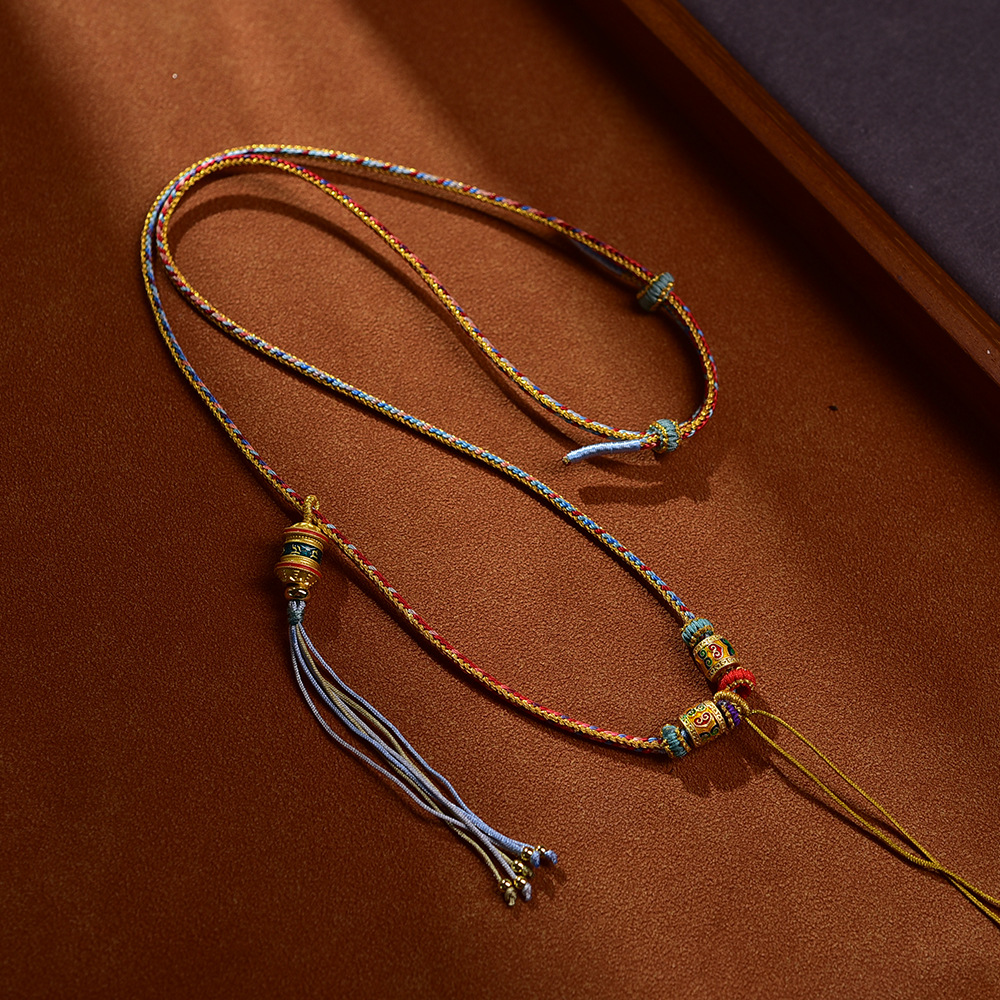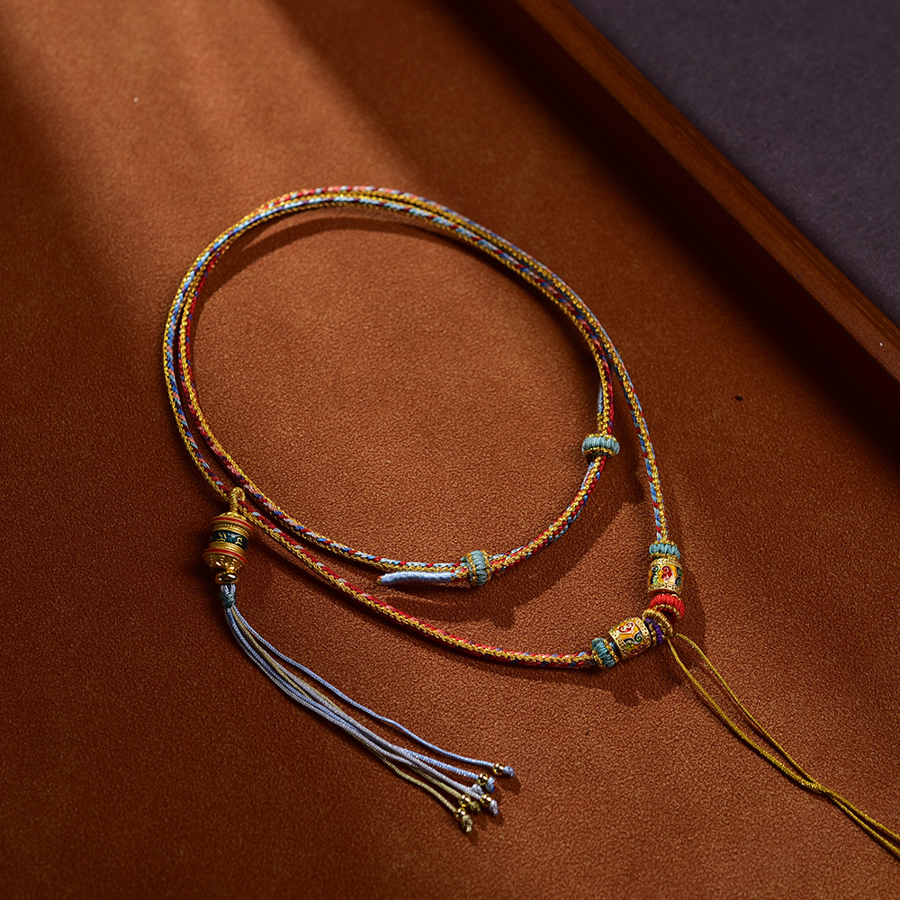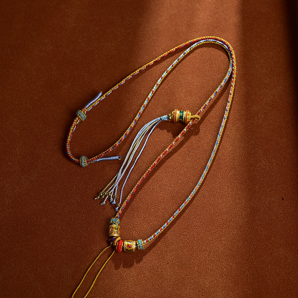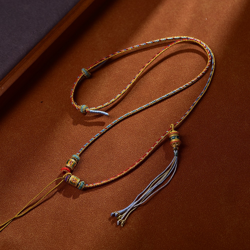 高端藏式编织绳唐卡吊坠绳佛牌项链绳蜜蜡黄金挂绳五彩绳六字真言