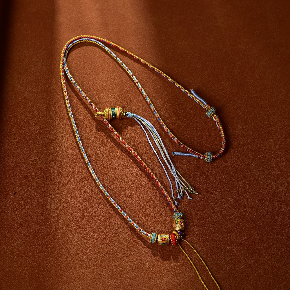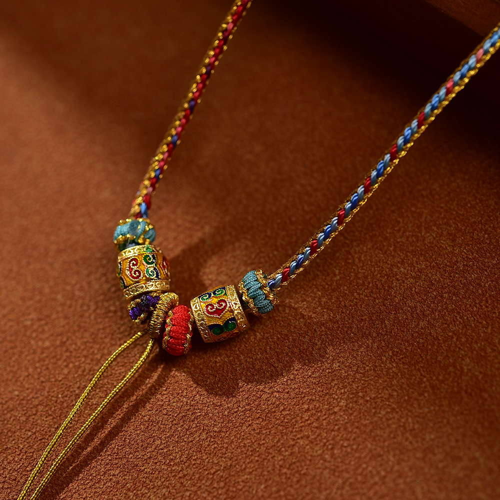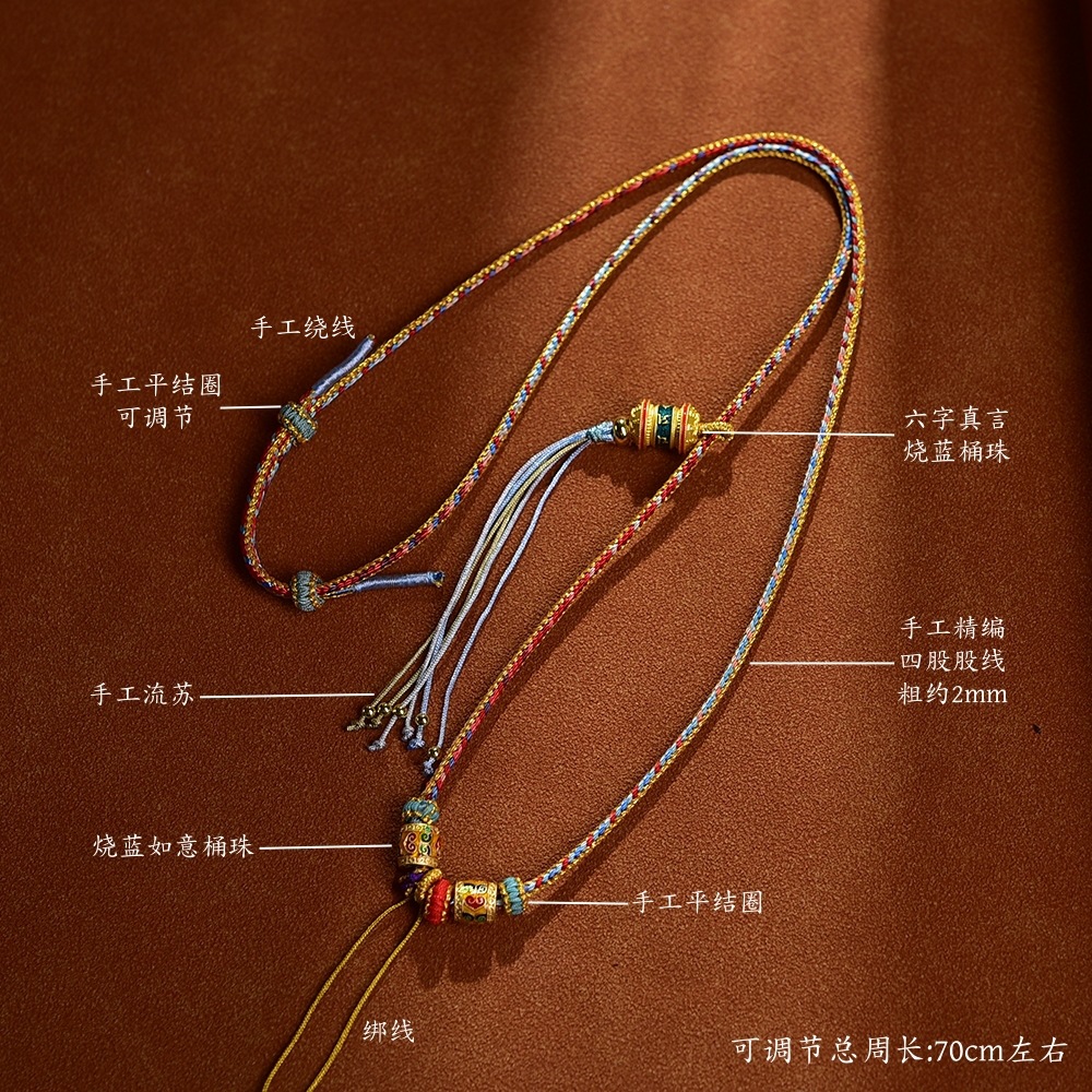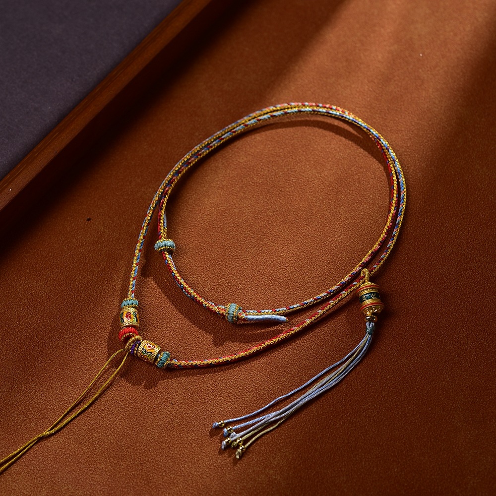 高端藏式编织绳唐卡吊坠绳佛牌项链绳蜜蜡黄金挂绳五彩绳六字真言