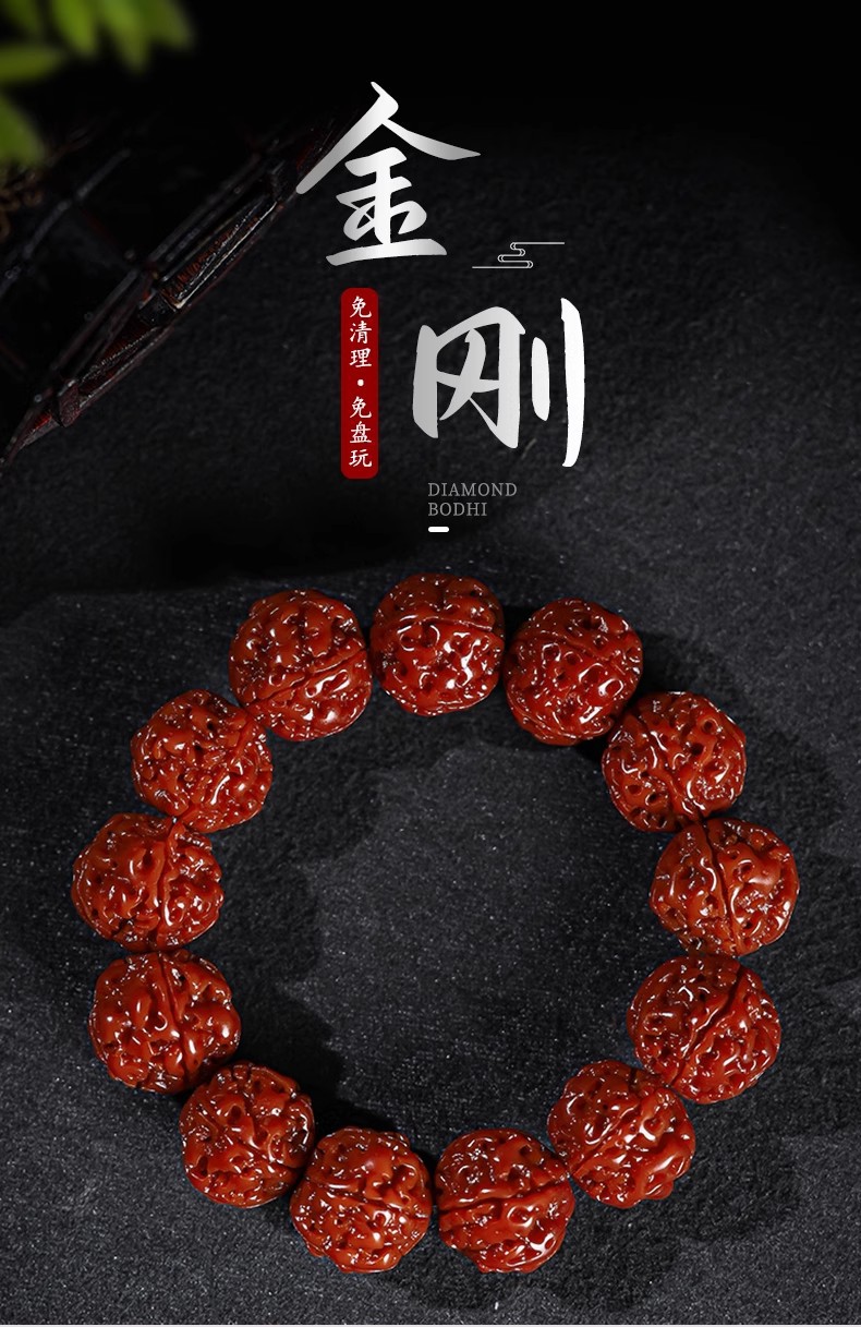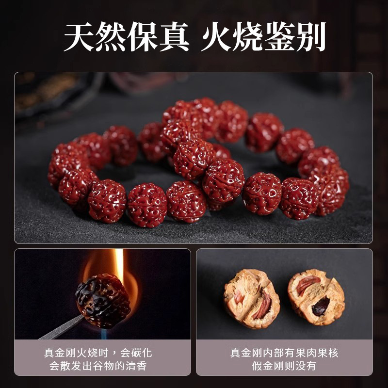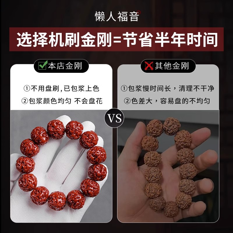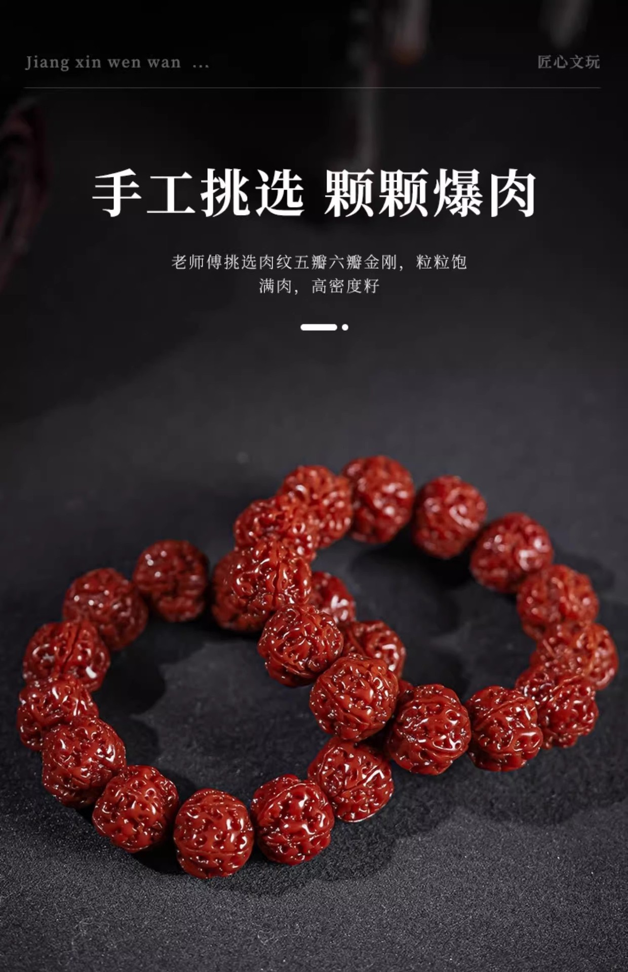 尼泊尔五瓣机刷大金刚菩提手串爆肉红皮包浆大金刚免清理文玩手串