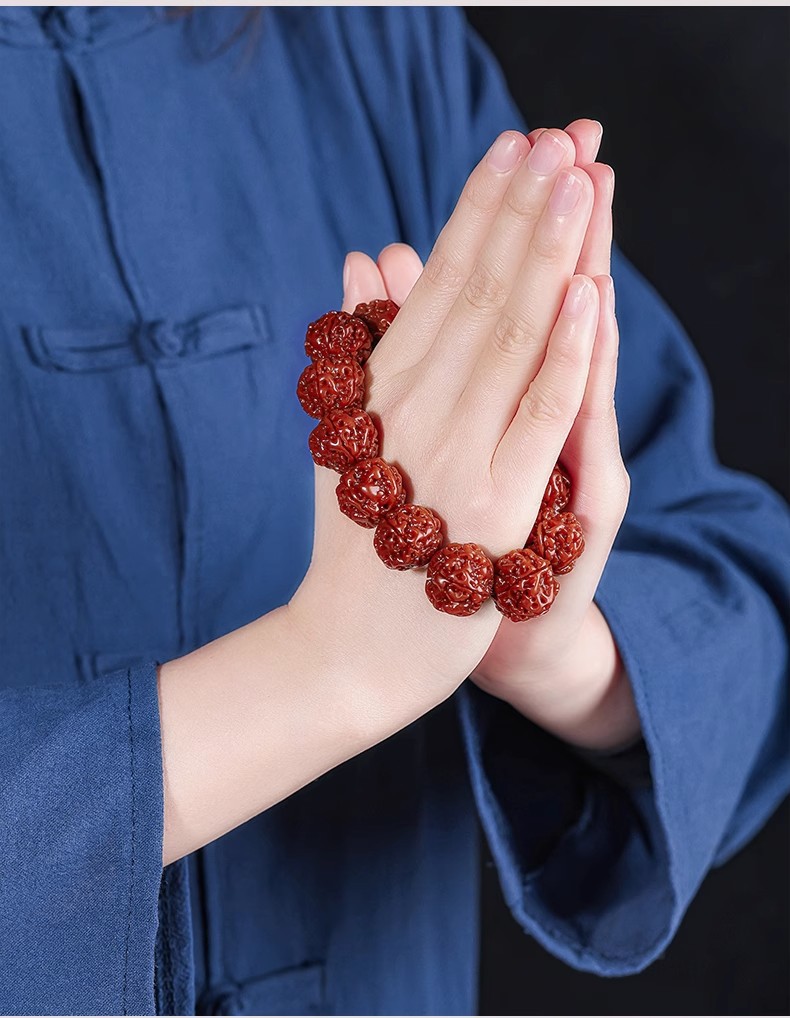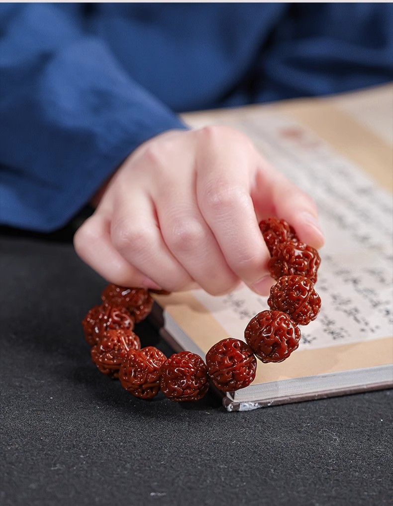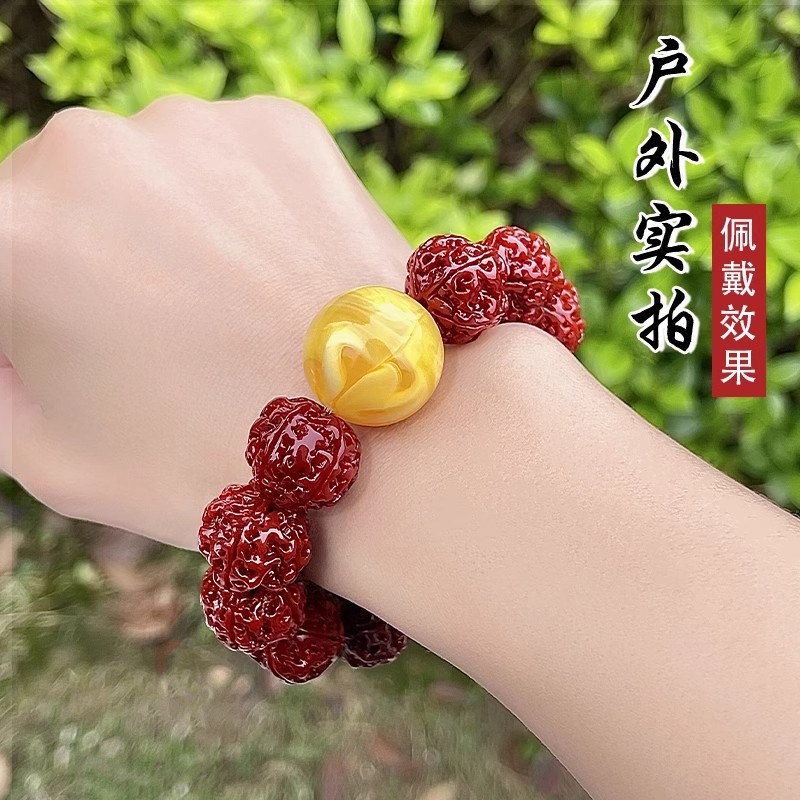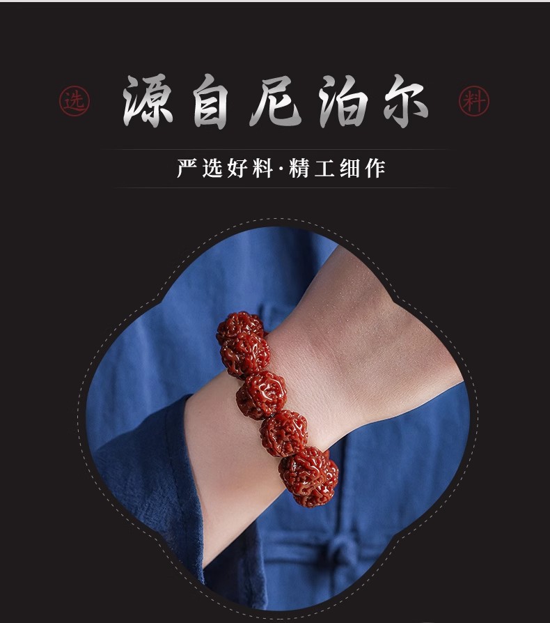 尼泊尔五瓣机刷大金刚菩提手串爆肉红皮包浆大金刚免清理文玩手串