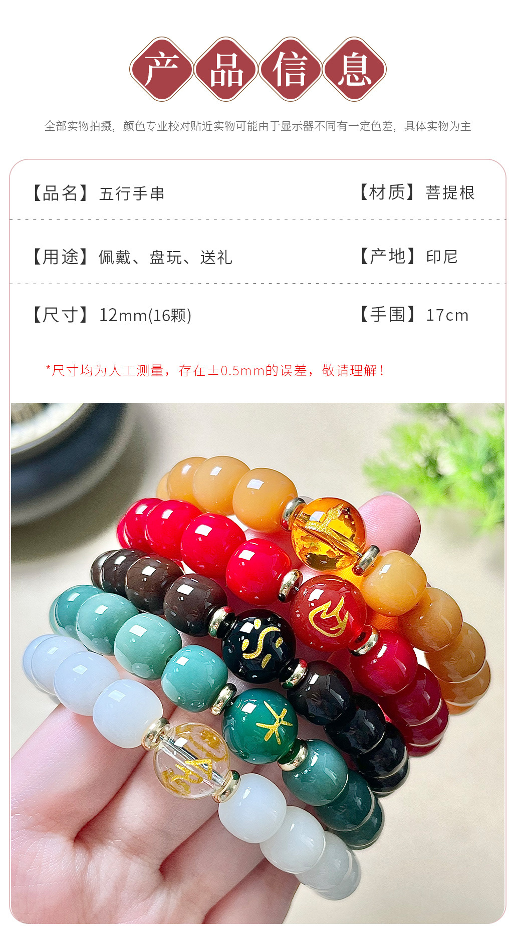 天然五行菩提手串男女金木水火土好运菩提子佛珠念珠文玩手链批发