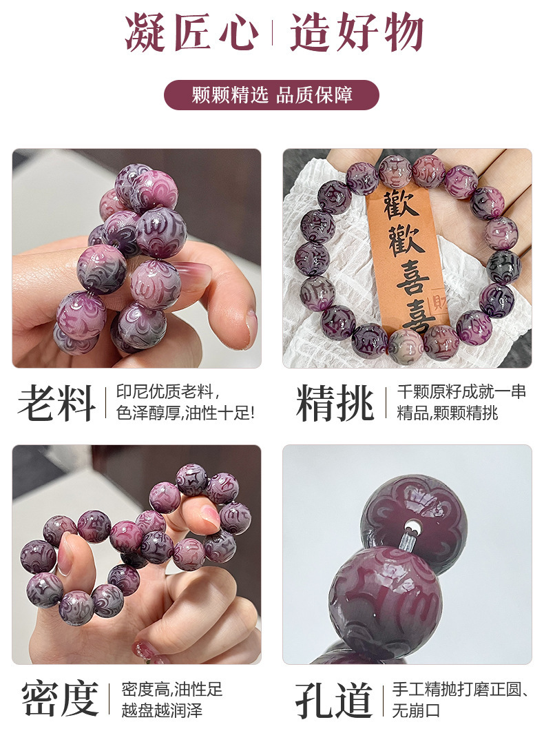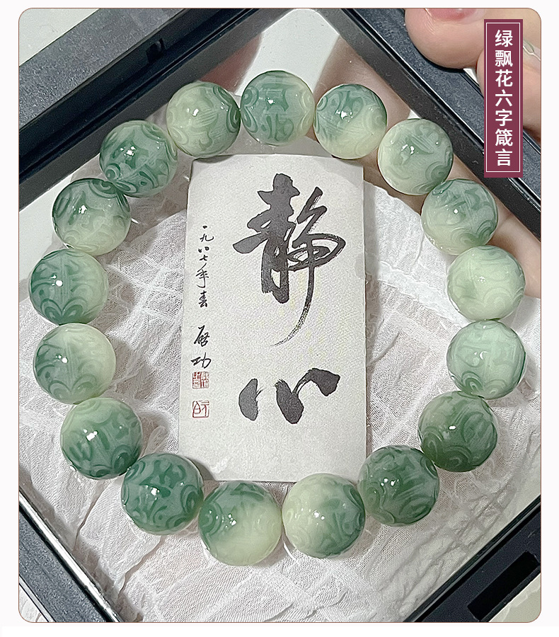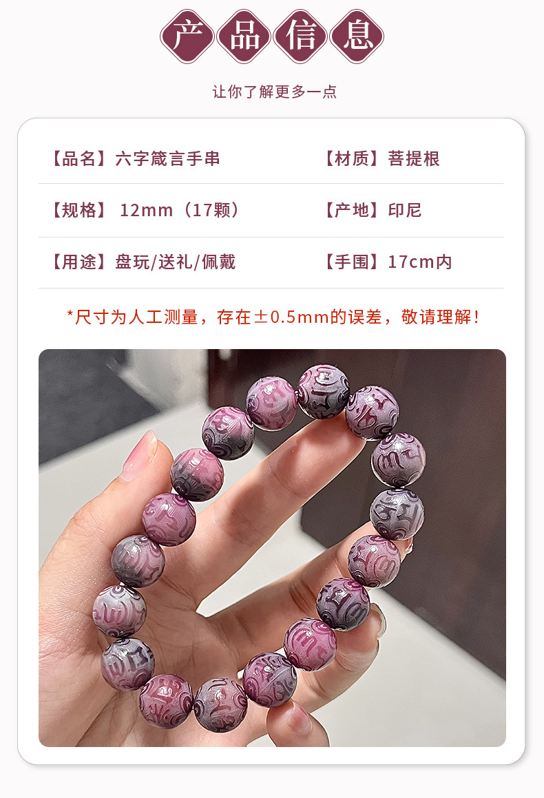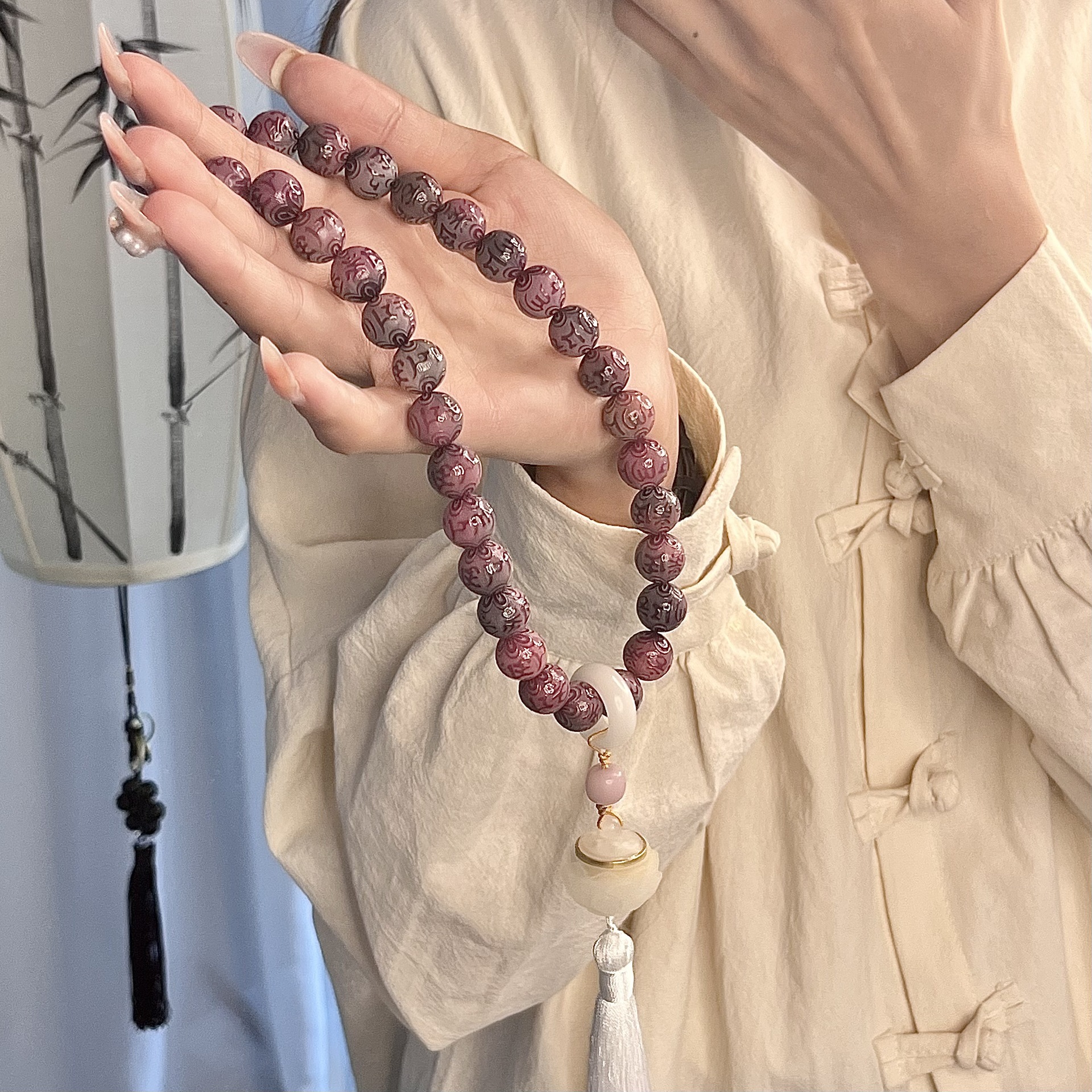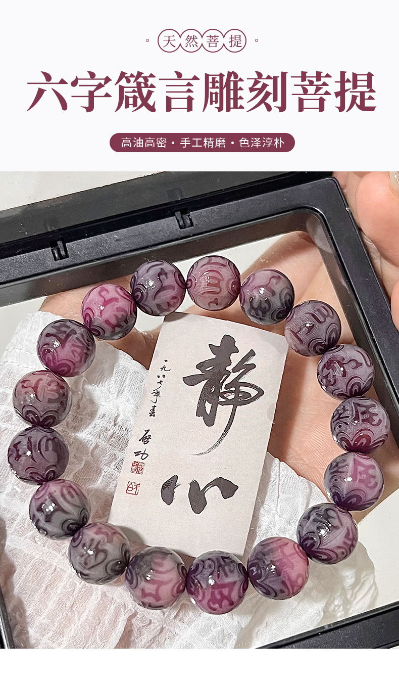 白玉菩提根雕刻六字箴言学生盘玩手串女绕指柔菩提子文玩佛珠手链