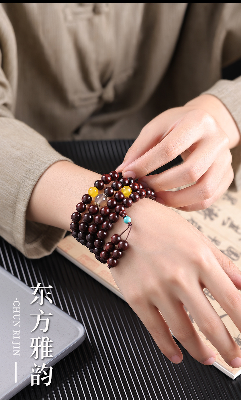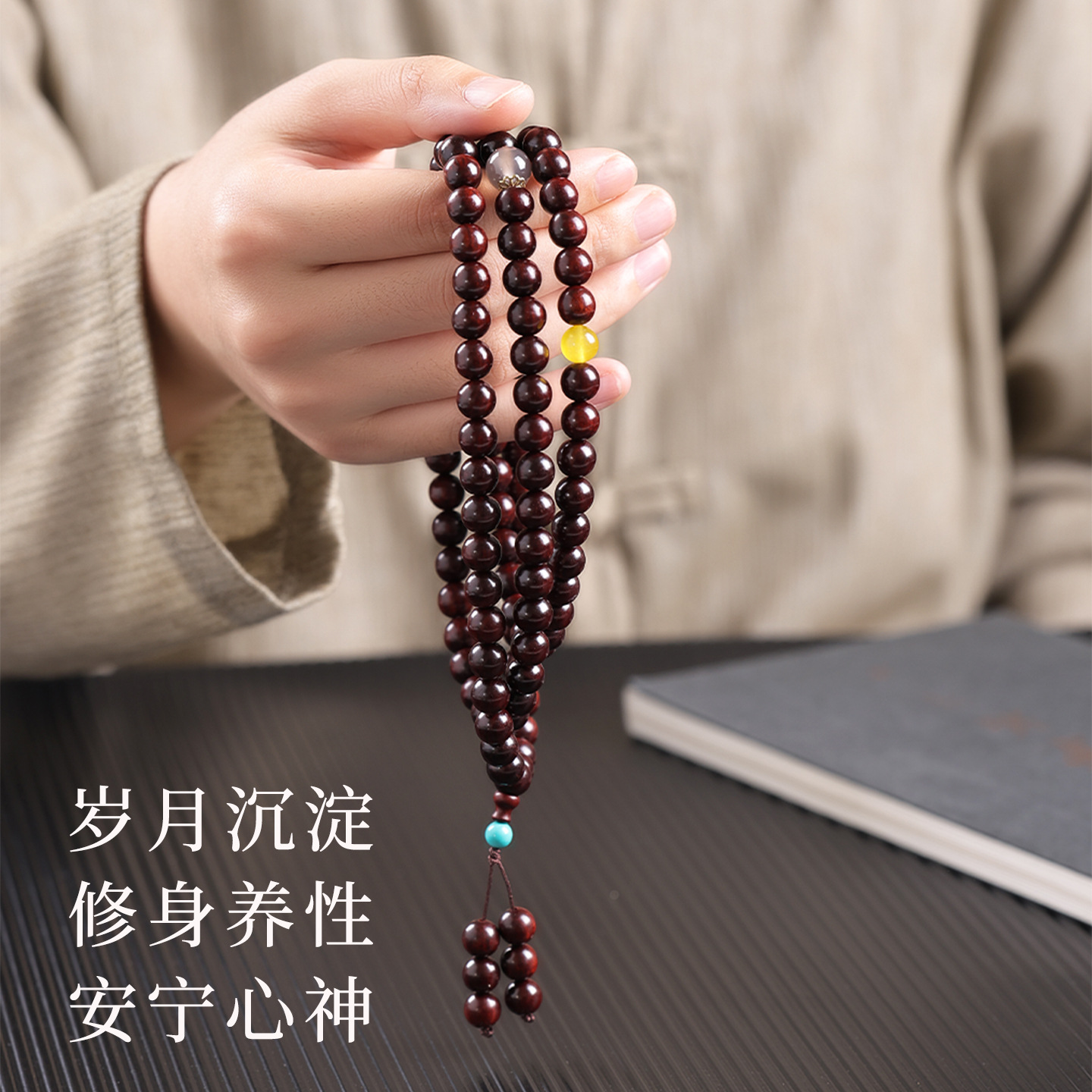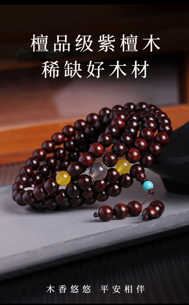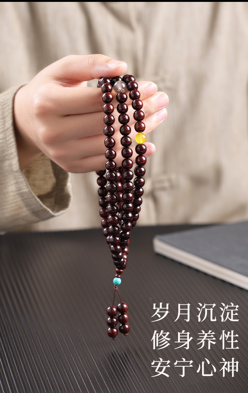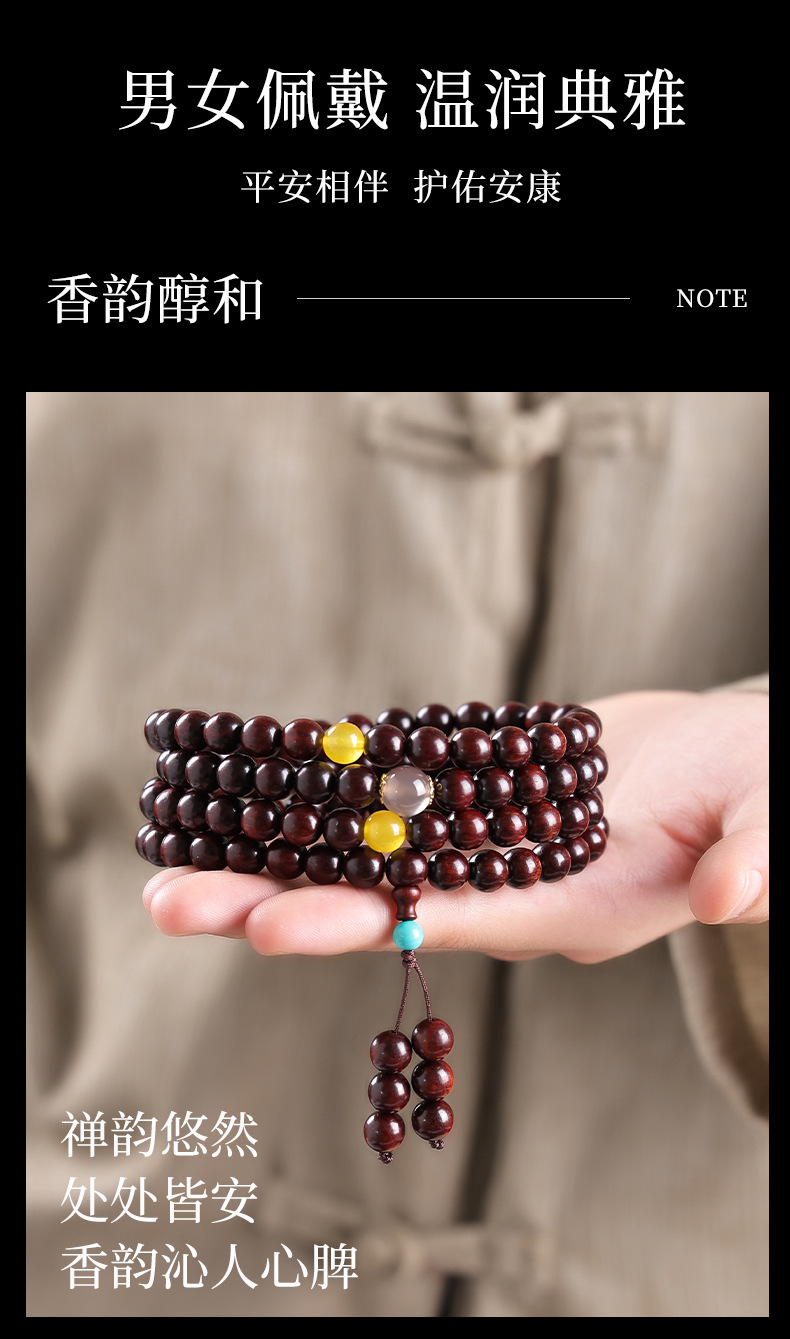 非洲檀木手串108颗紫檀香木念珠男女士款沉水级文玩佛珠手链批发