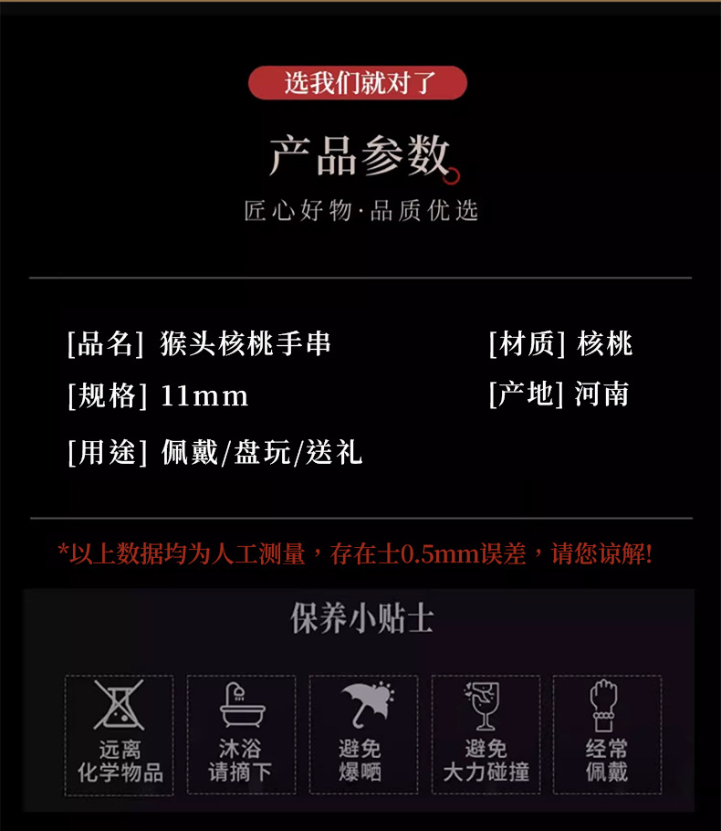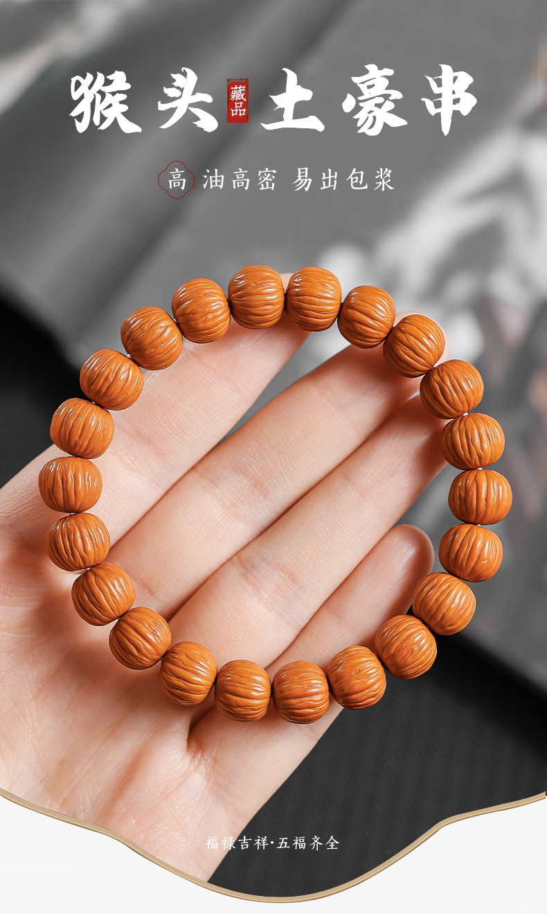 天然颗颗严选猴头手串土豪911小核桃雕刻京八棱佛珠念珠文玩批发
