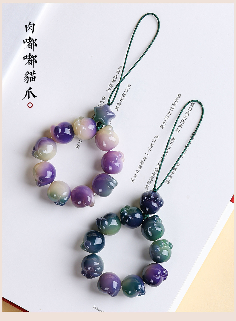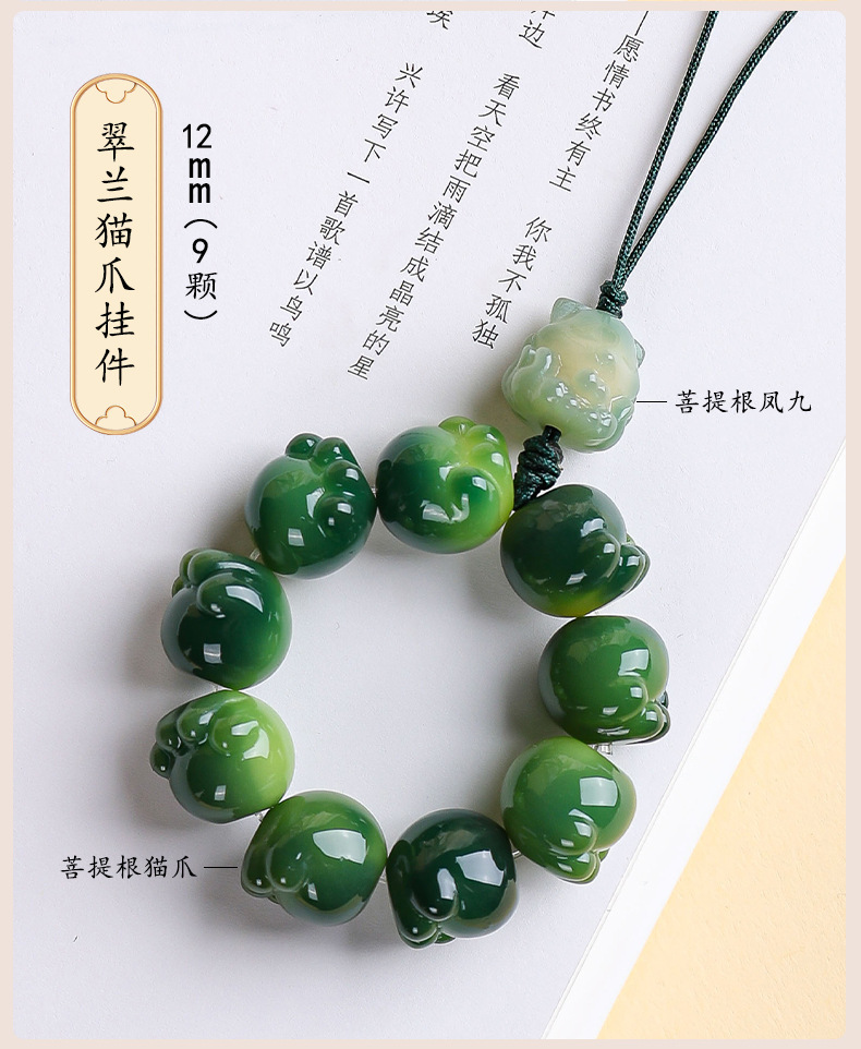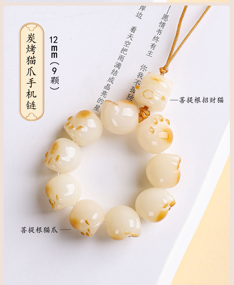 雕刻菩提猫爪手捻手串菩提猫爪手机链配件包包挂件高档汽车挂饰