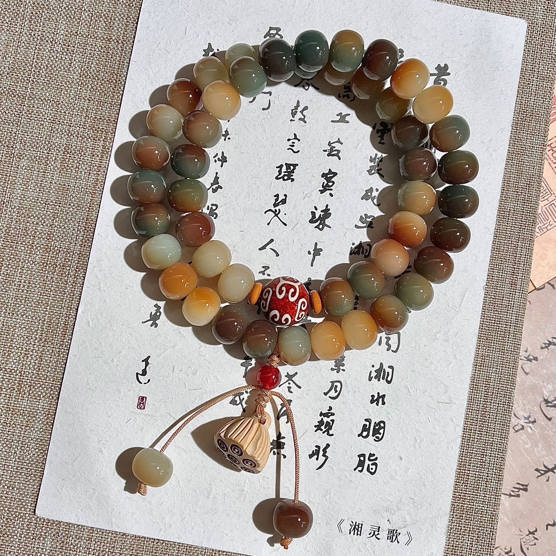 天然菩提根手串女定风波多宝风化菩提双圈手持佛珠念珠手链男批发