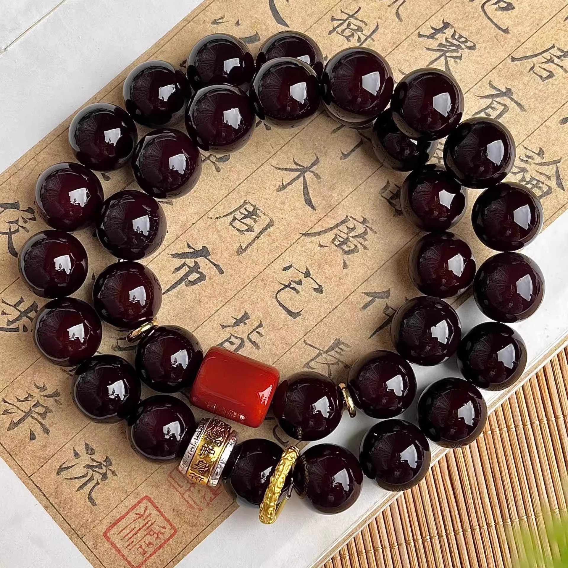 大尺寸溏心老料菩提手串新中式男款双圈文玩盘玩手链佛珠念珠批发