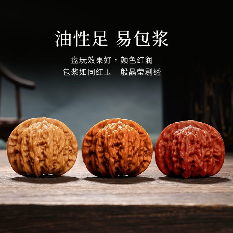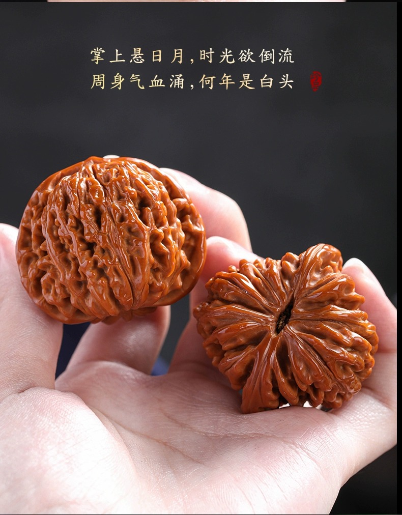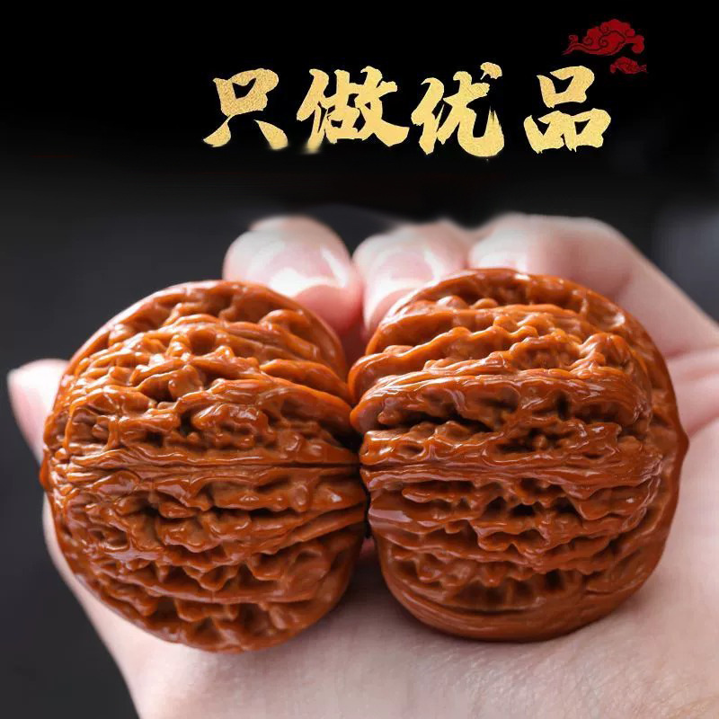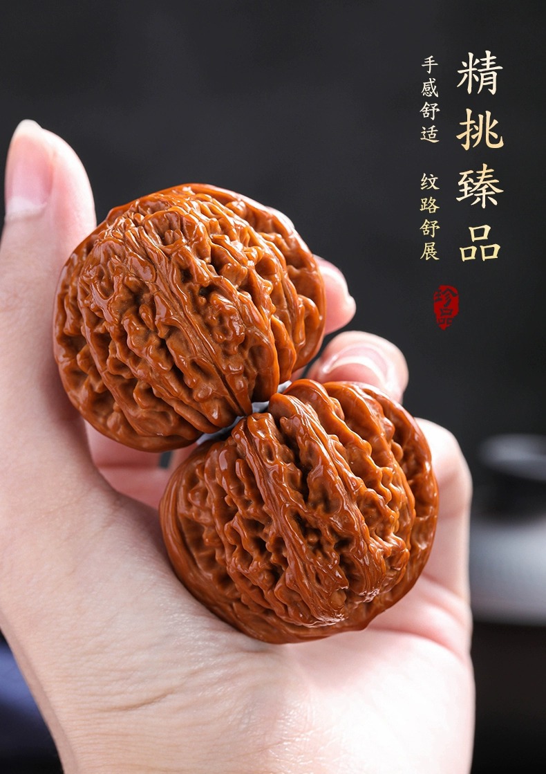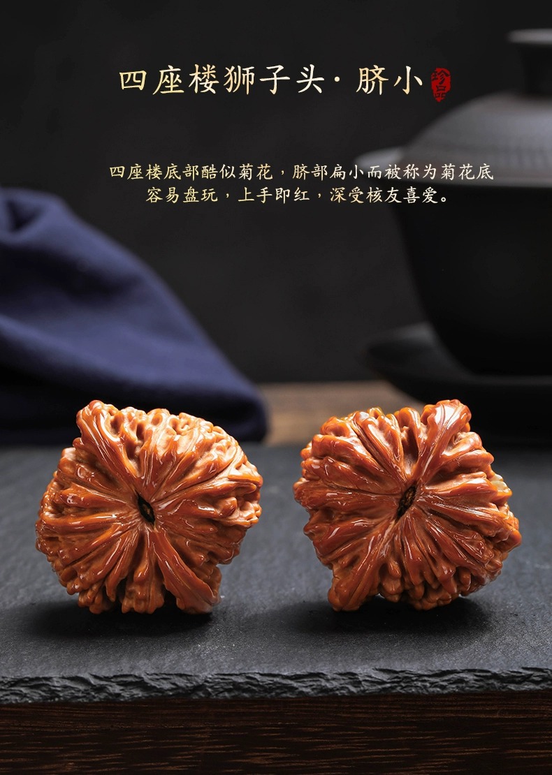 文玩核桃王勇麒麟纹官帽四座楼狮子头精配对高抛包浆文玩手把件