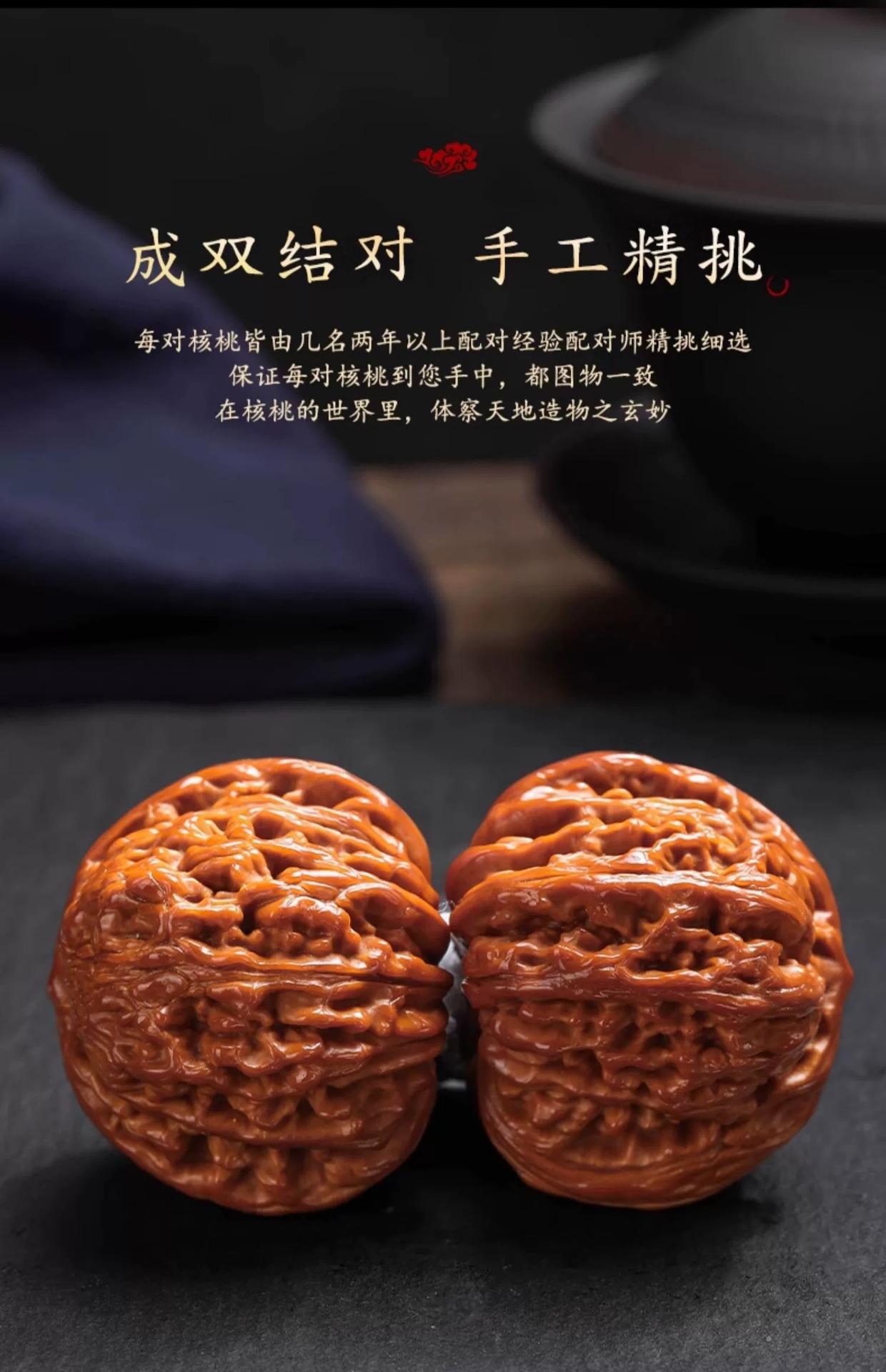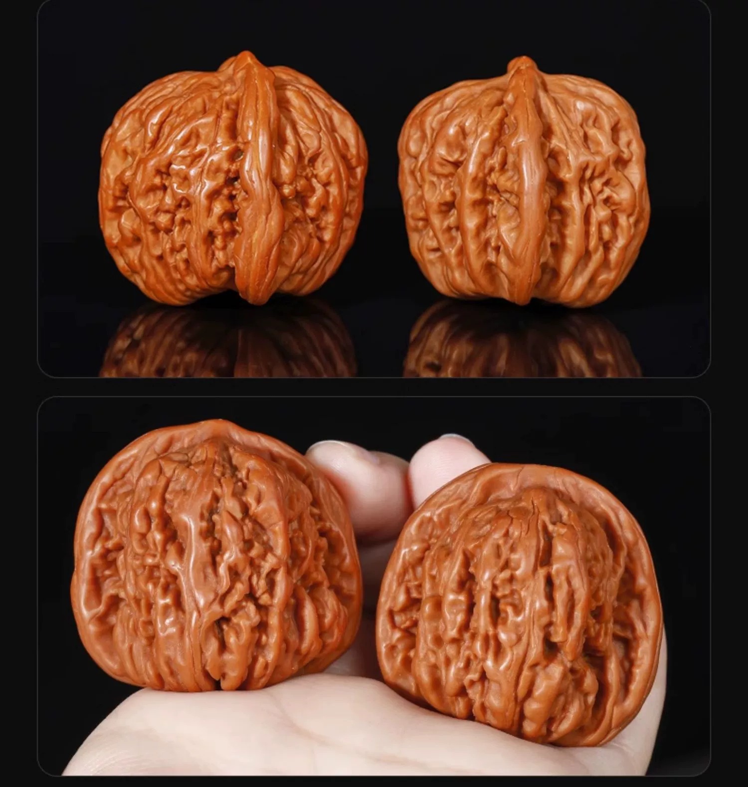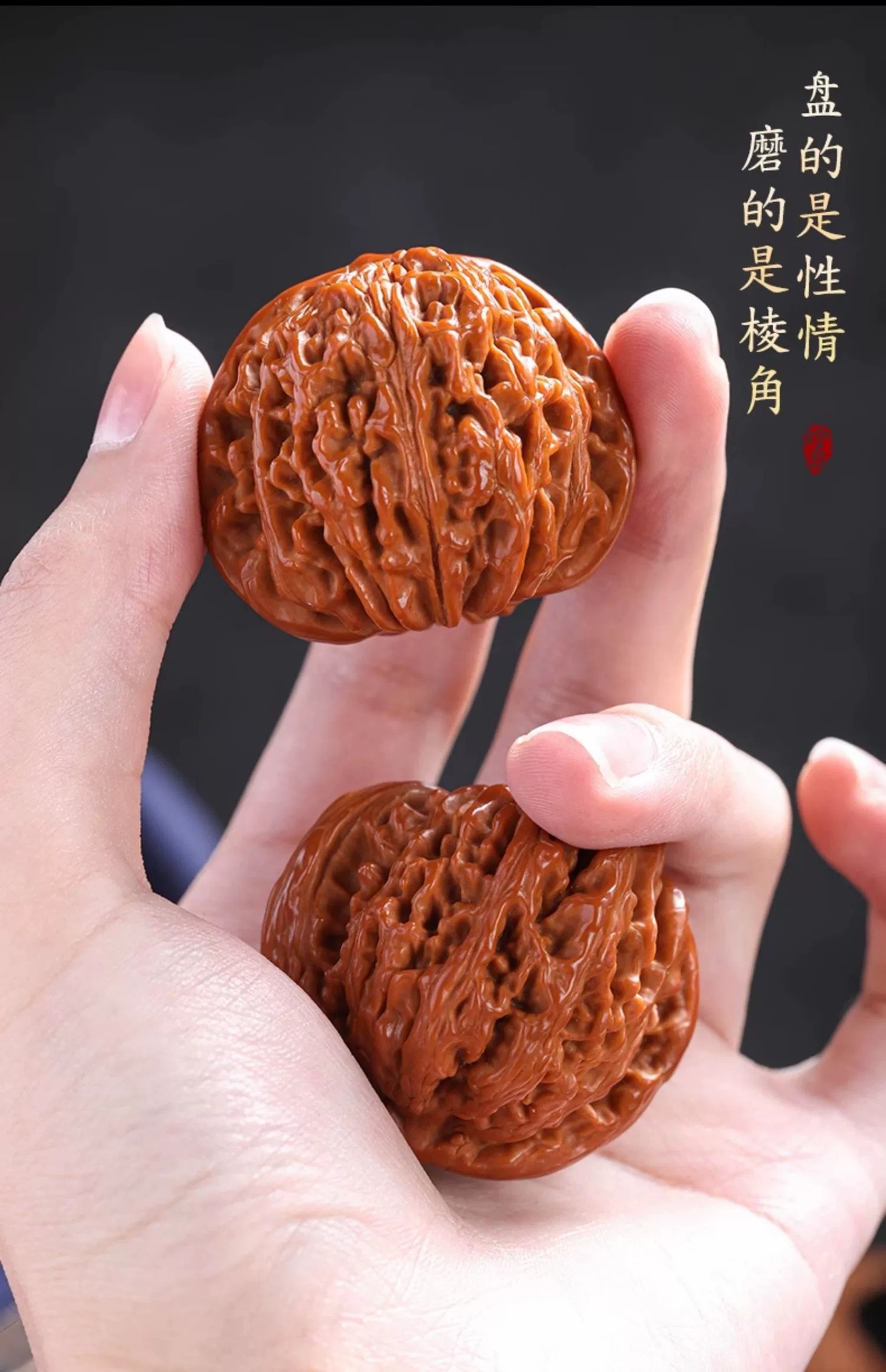 文玩核桃王勇麒麟纹官帽四座楼狮子头精配对高抛包浆文玩手把件
