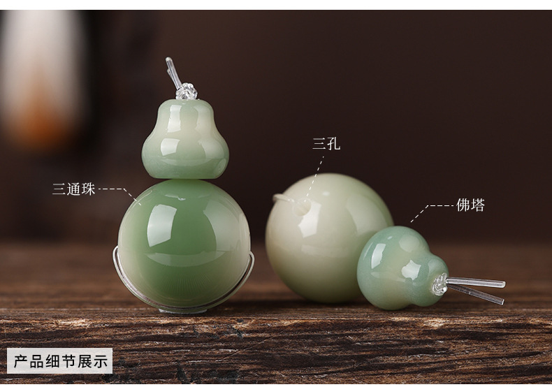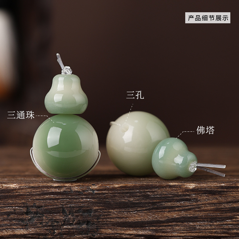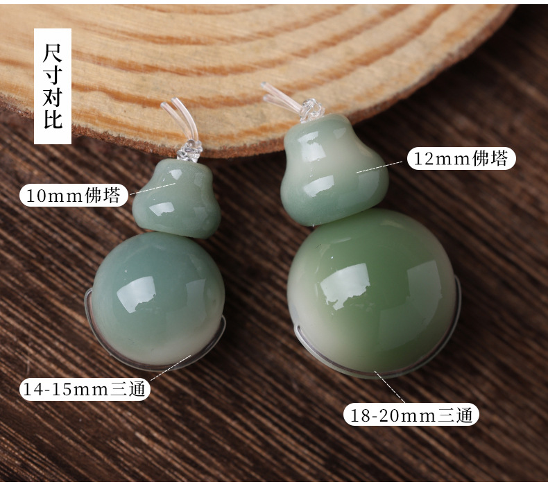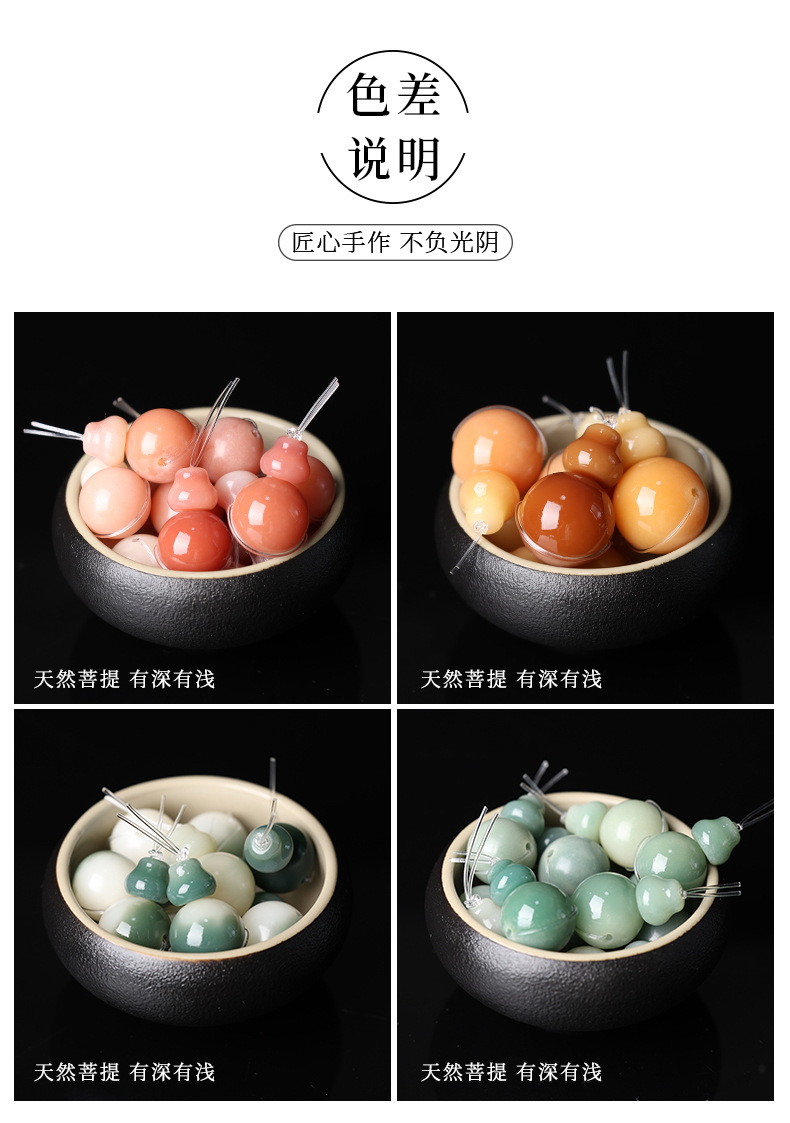 天然绿飘花菩提手串三通佛头小葫芦佛塔diy配饰佛珠文玩配件批发