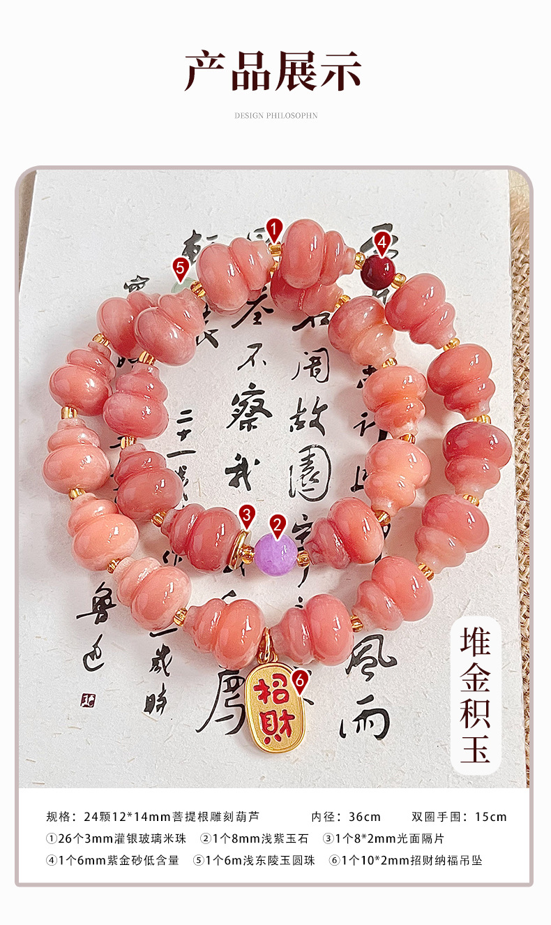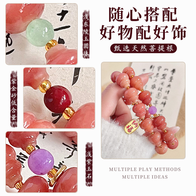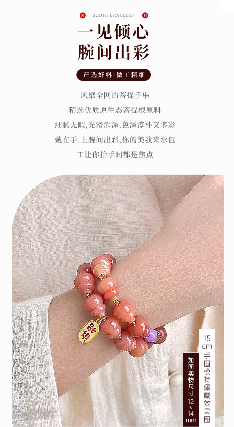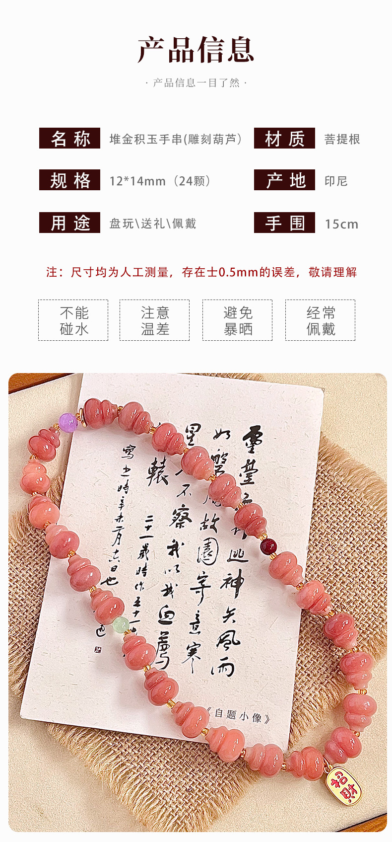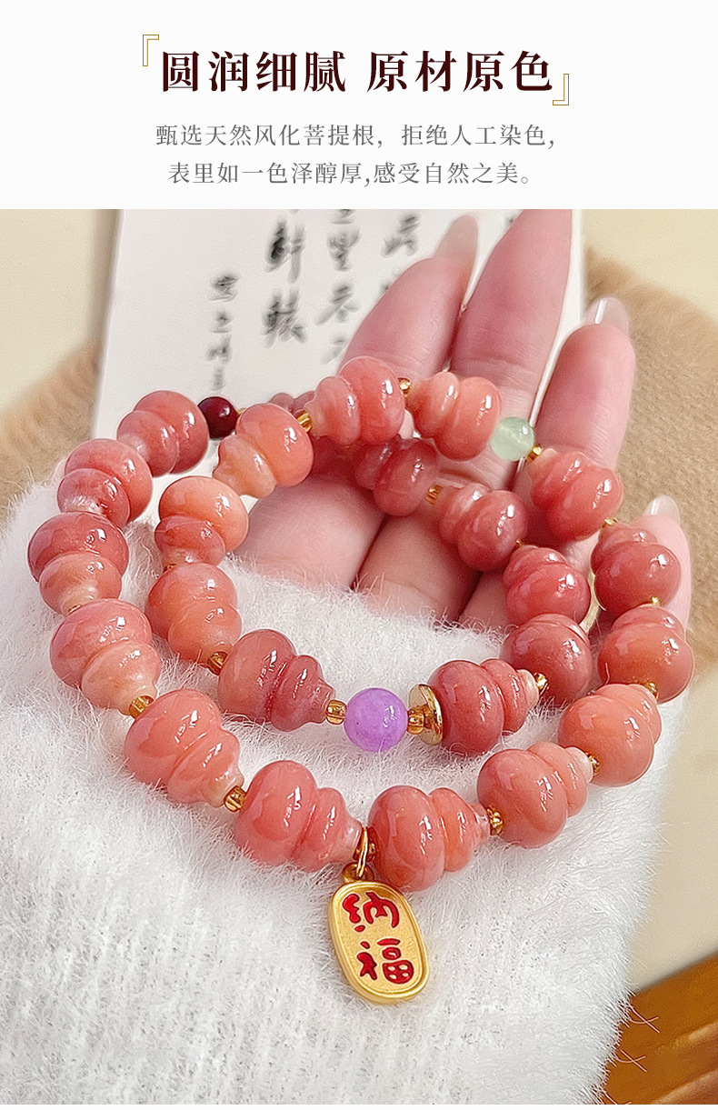 天然藕粉菩提手串抖音爆款葫芦雕刻件双圈文玩盘玩手链佛珠批发女
