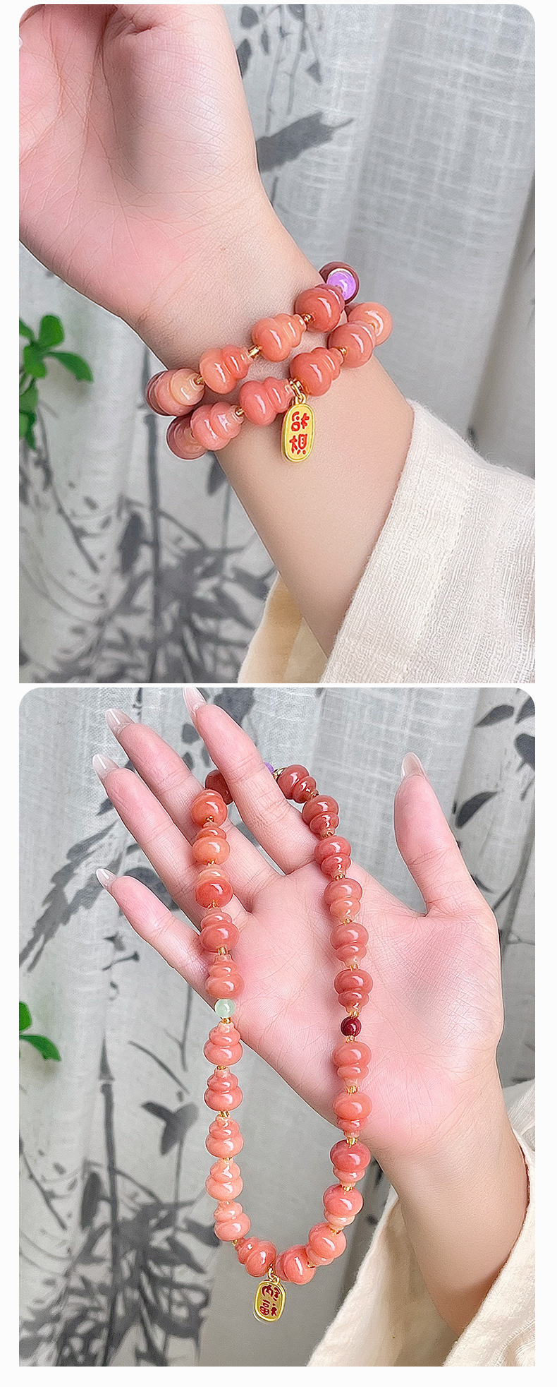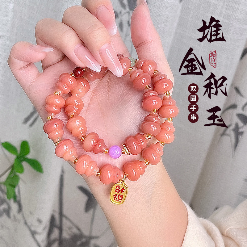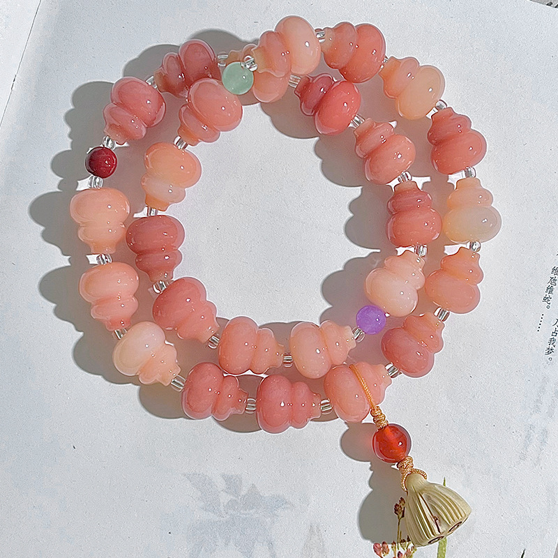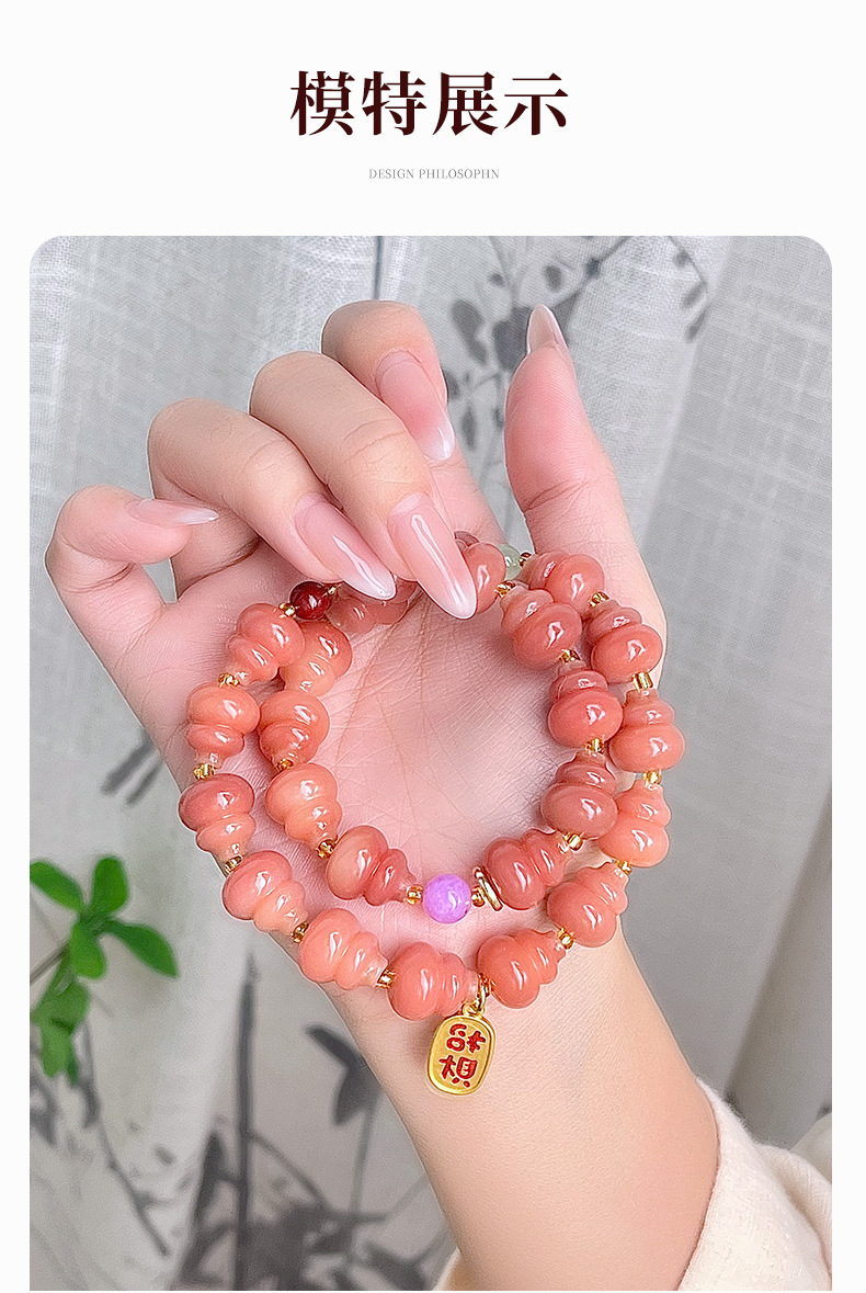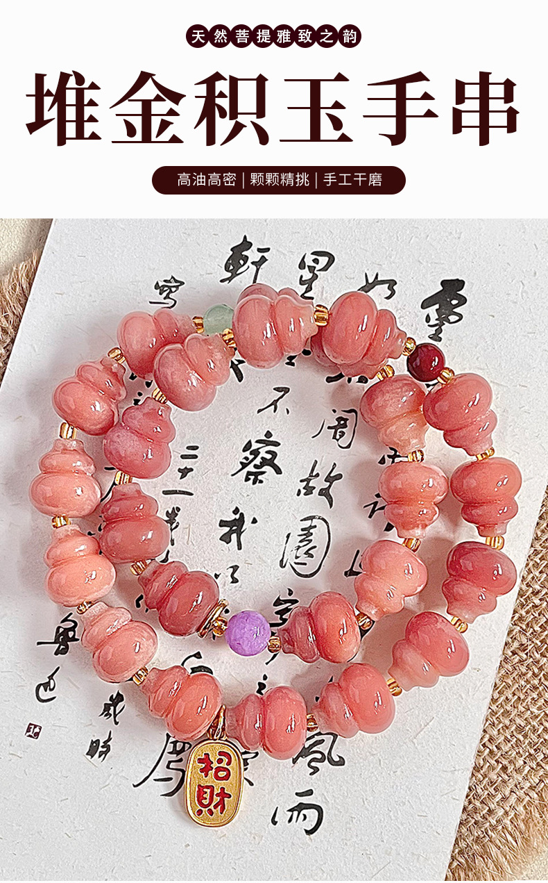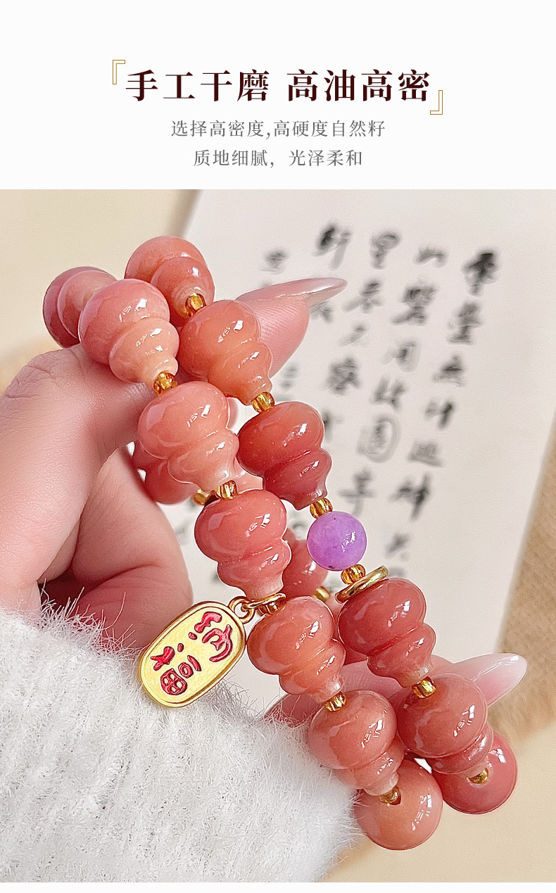天然藕粉菩提手串抖音爆款葫芦雕刻件双圈文玩盘玩手链佛珠批发女