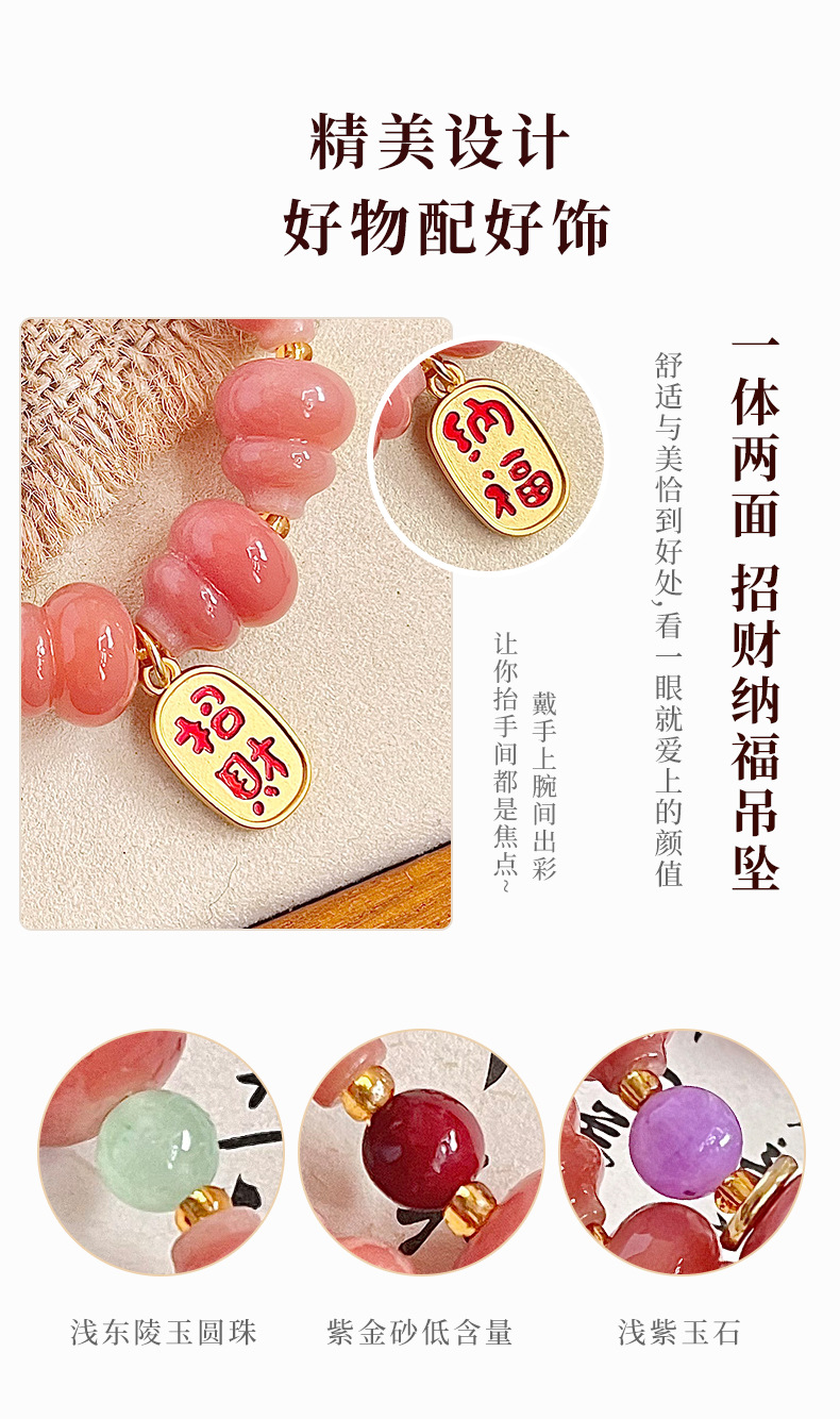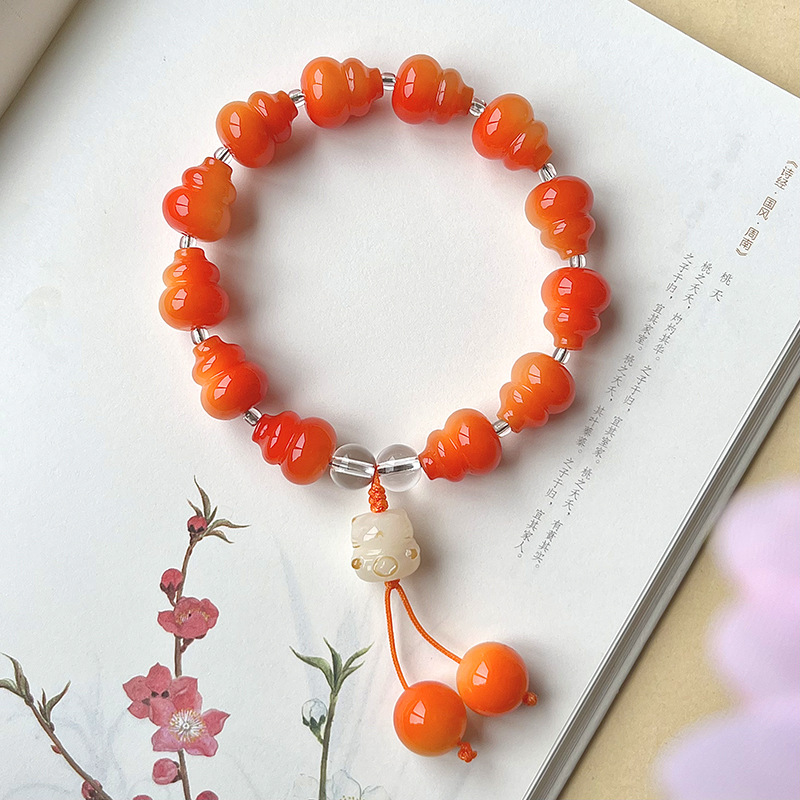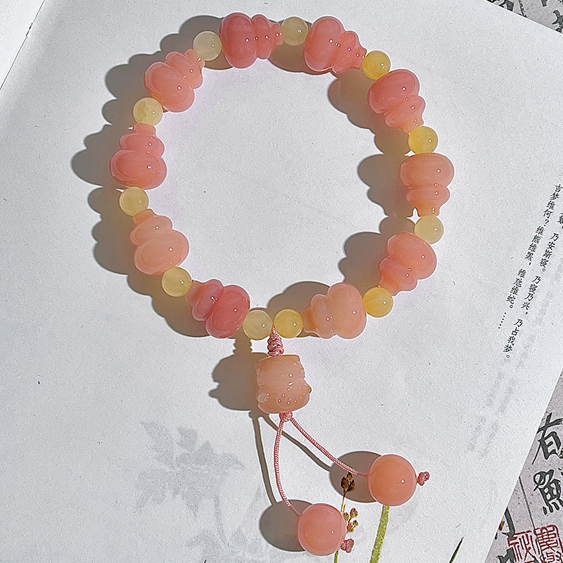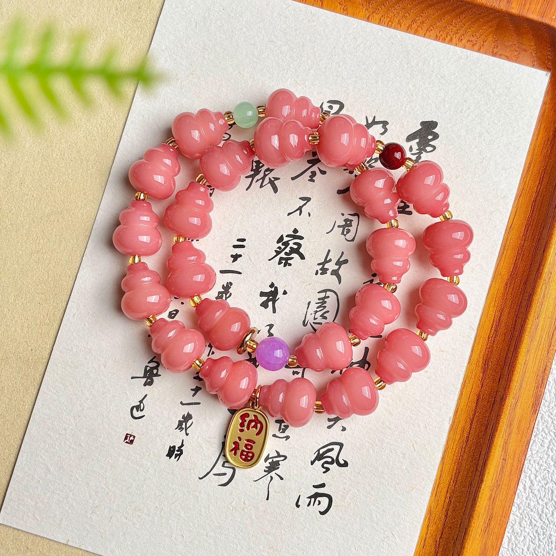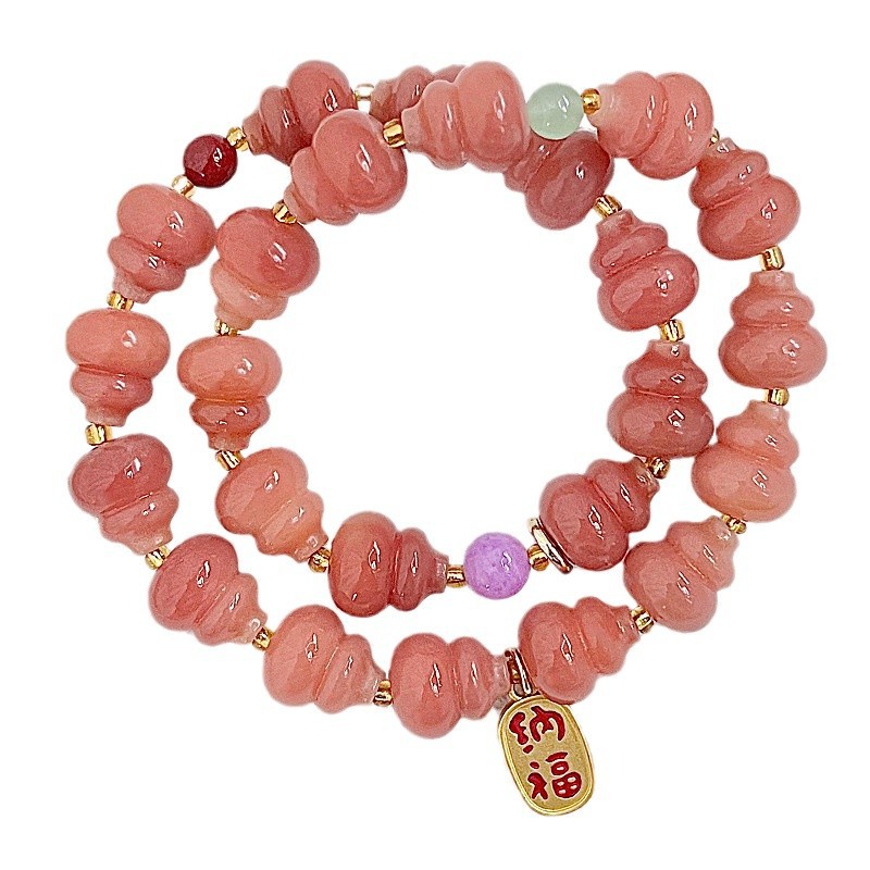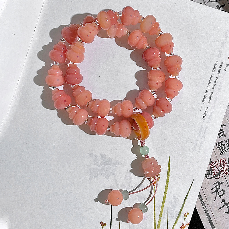 天然藕粉菩提手串抖音爆款葫芦雕刻件双圈文玩盘玩手链佛珠批发女