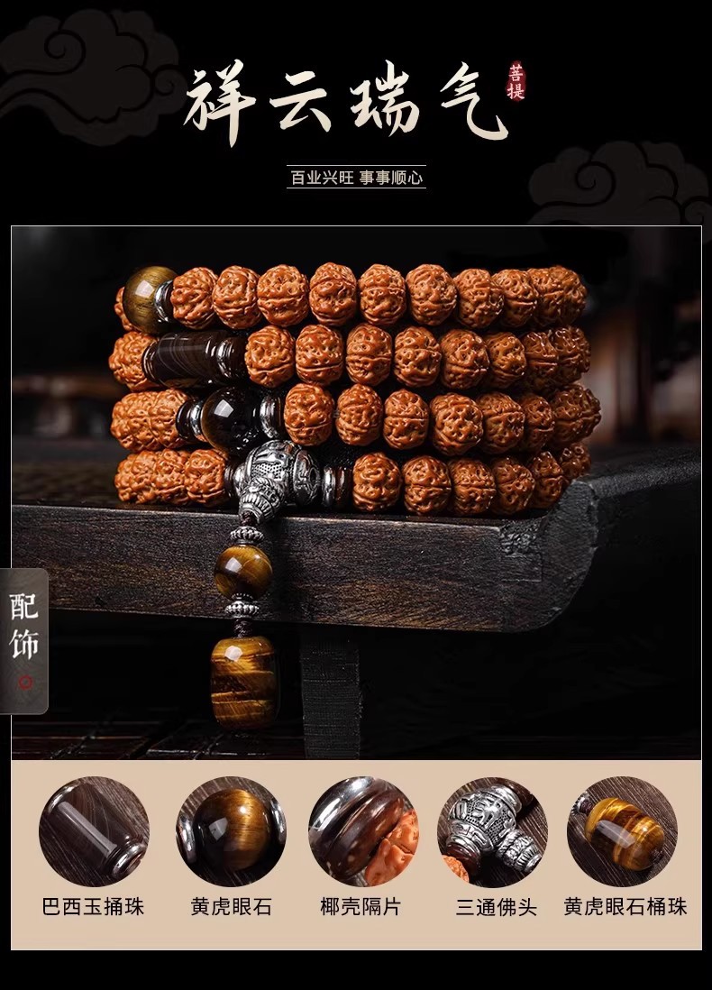 爆肉树王小金刚菩提手串108颗设计款文玩菩提子男士佛珠念珠批发