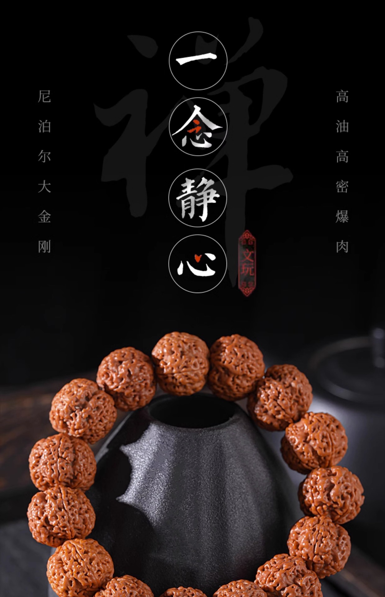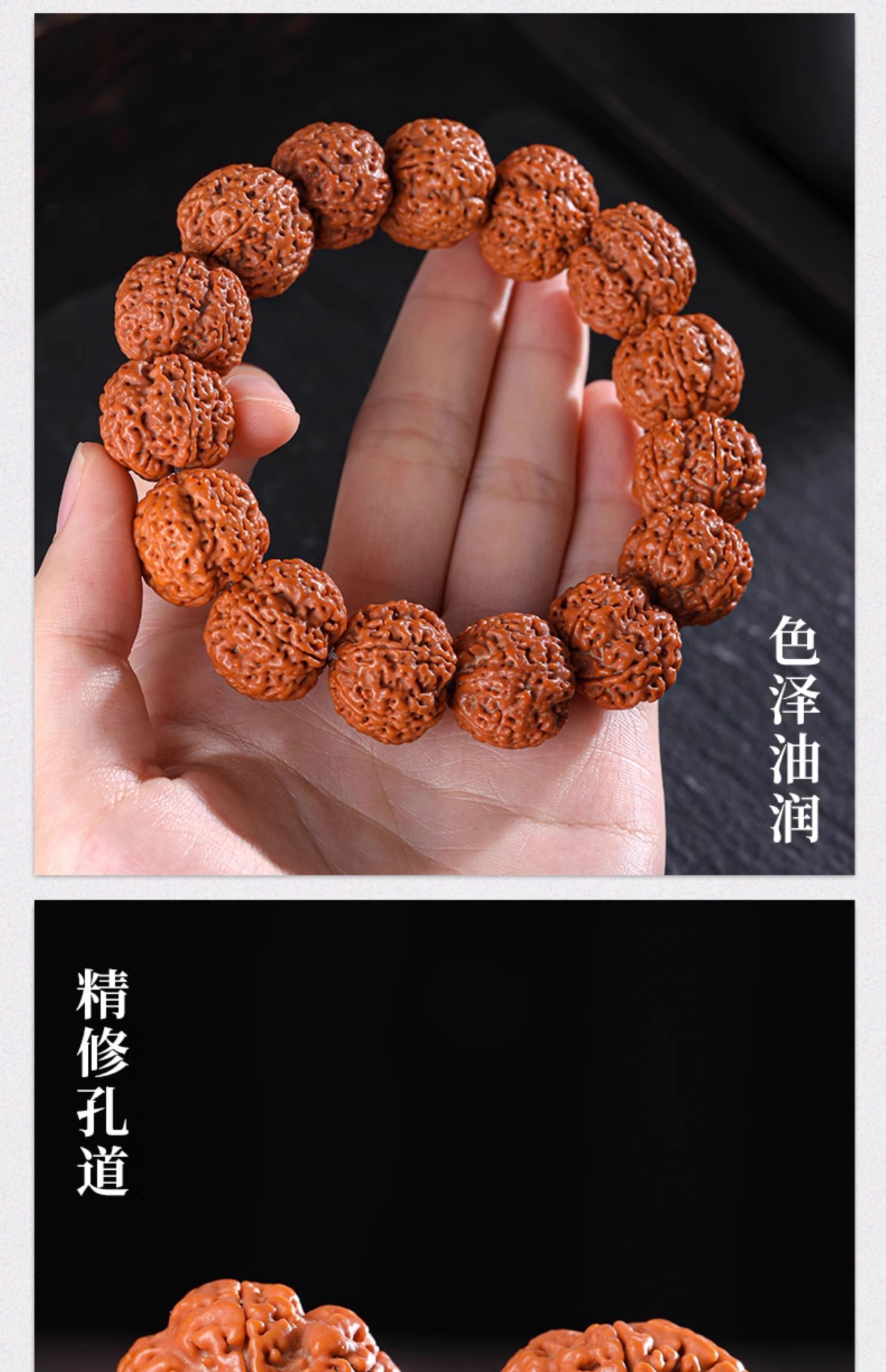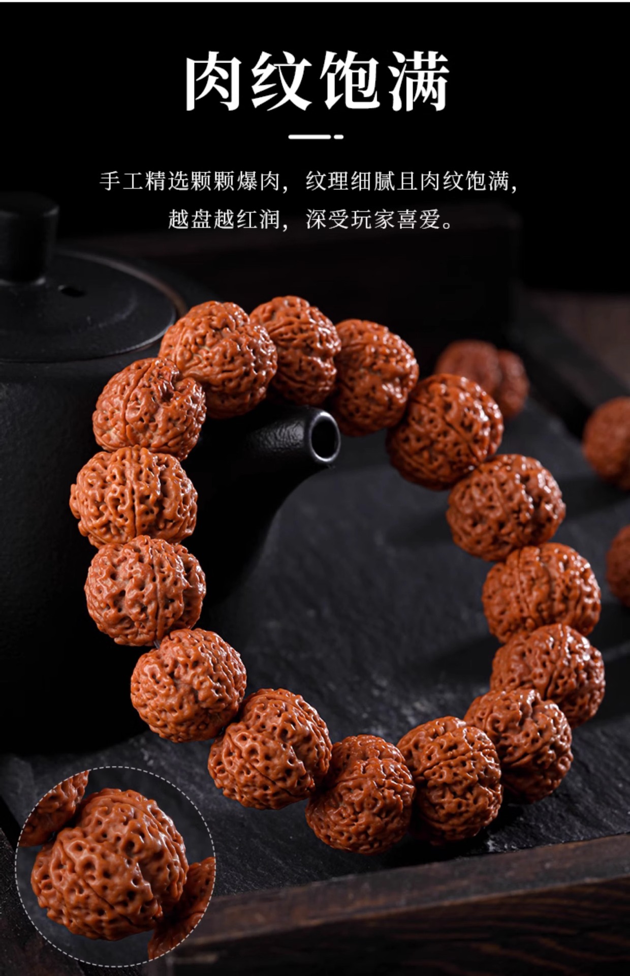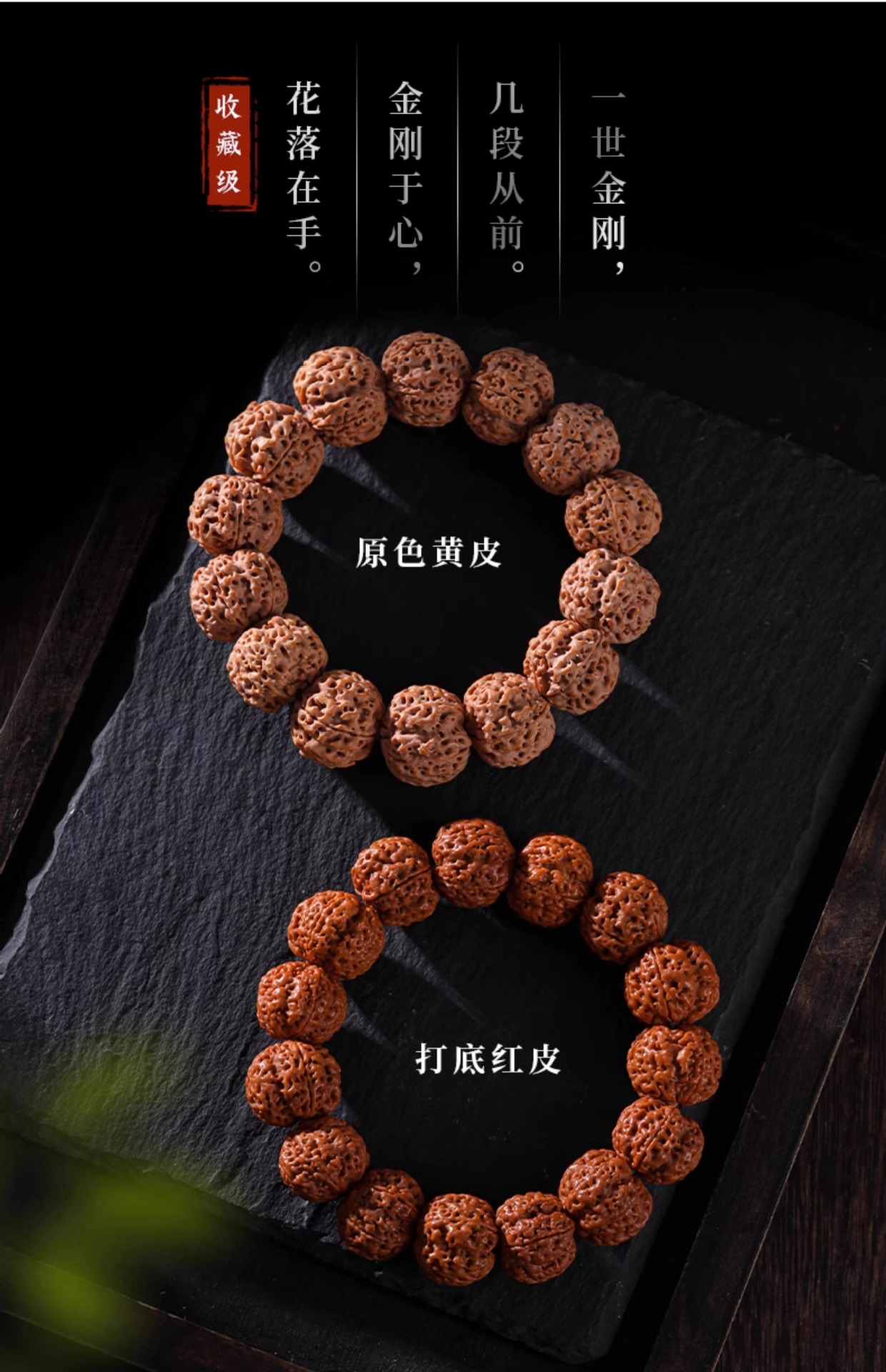 尼泊尔爆肉红黄皮大金刚菩提子手串文玩佛珠男士原籽盘玩手链单圈
