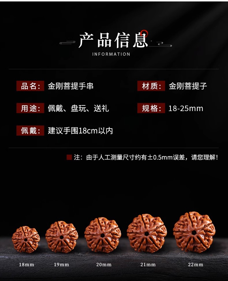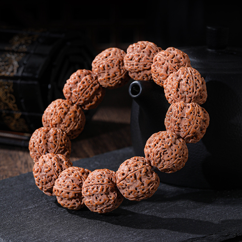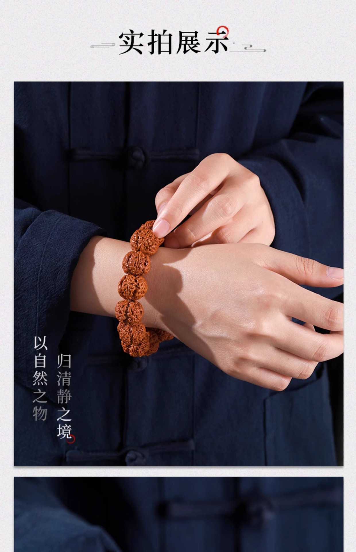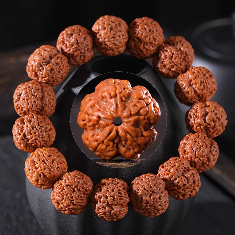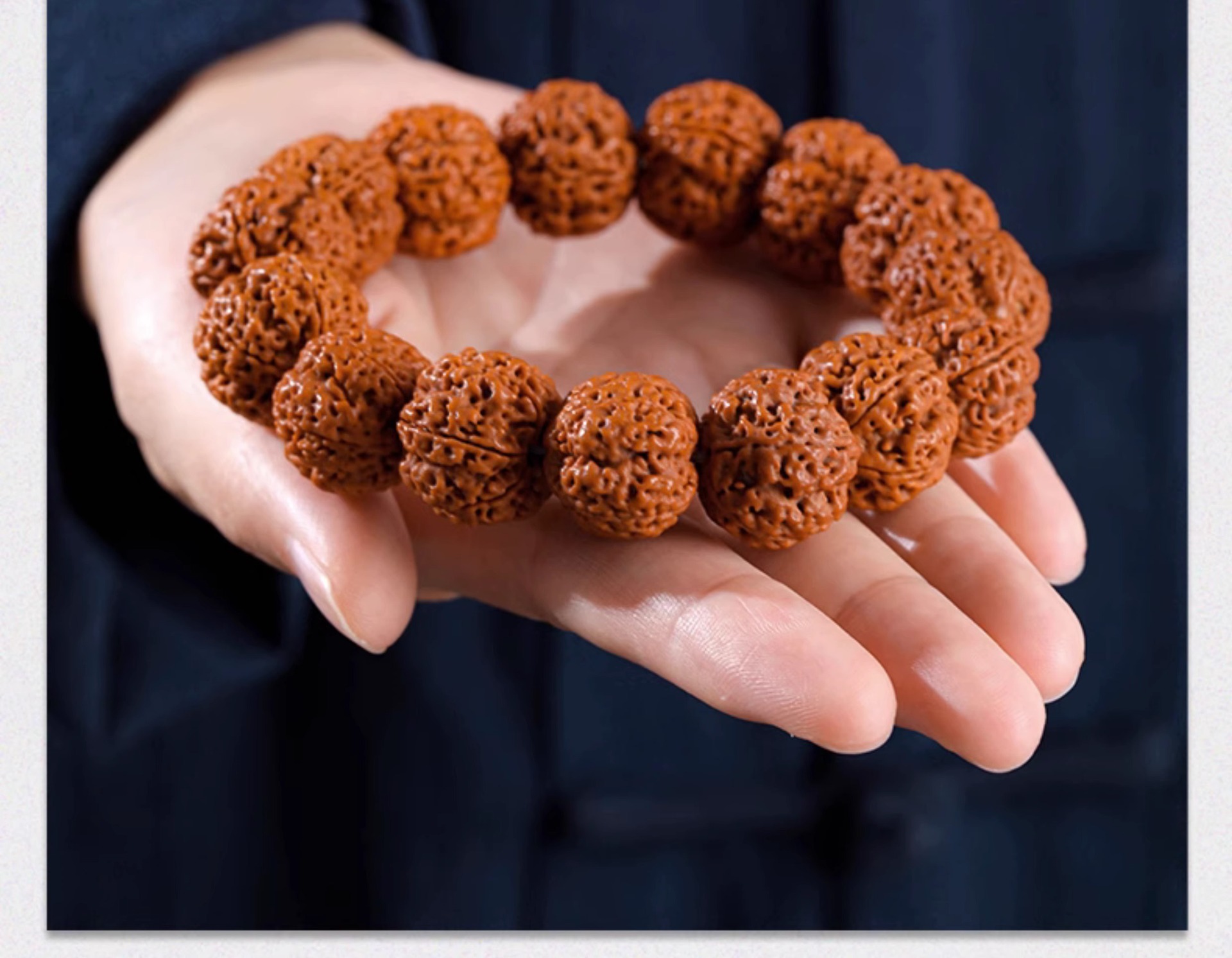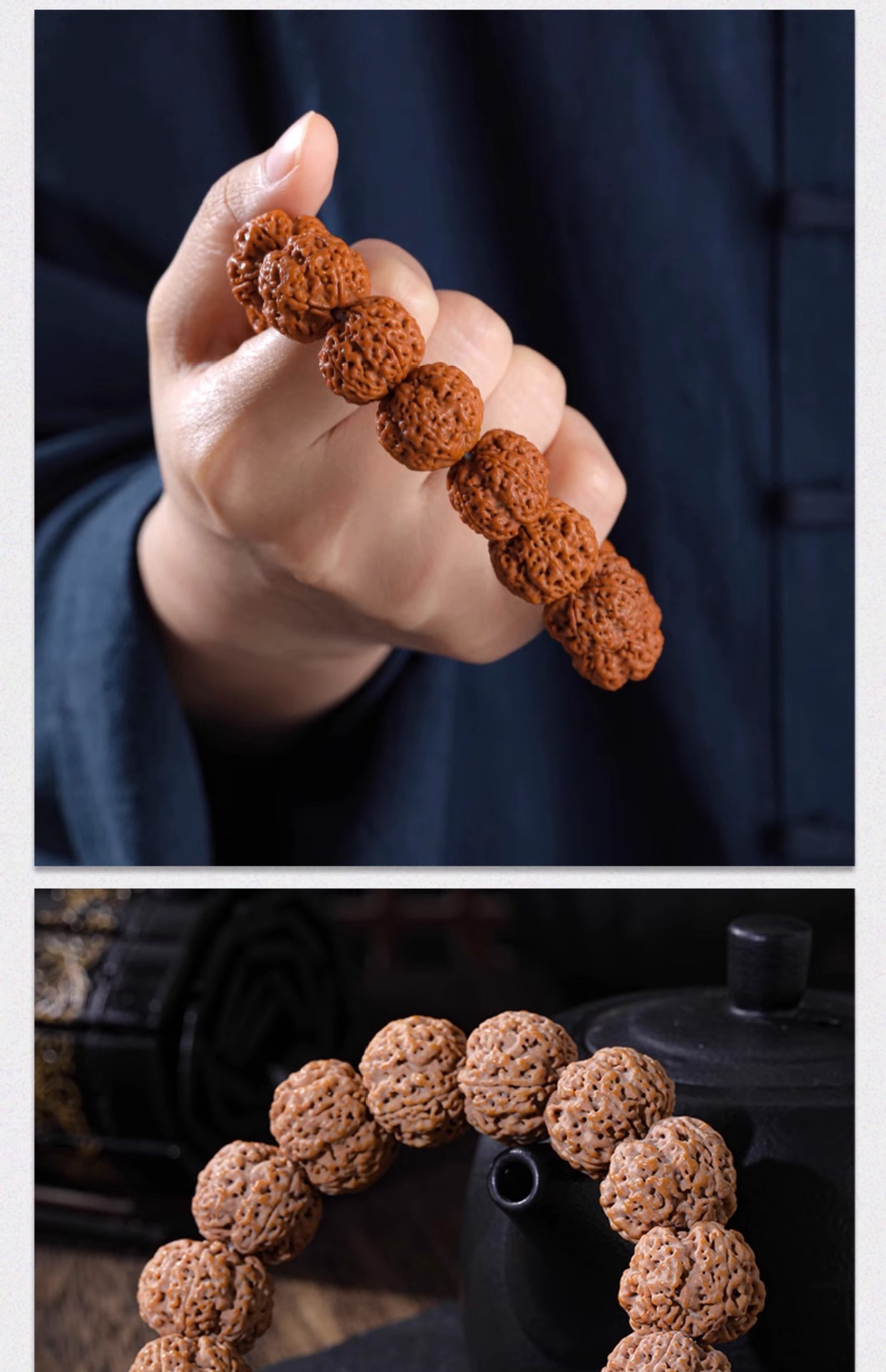 尼泊尔爆肉红黄皮大金刚菩提子手串文玩佛珠男士原籽盘玩手链单圈
