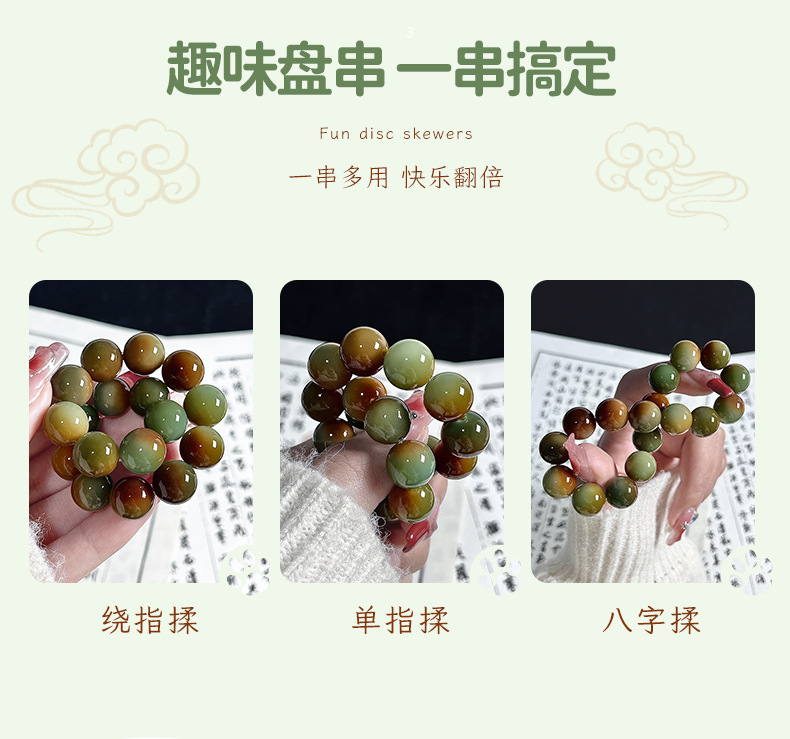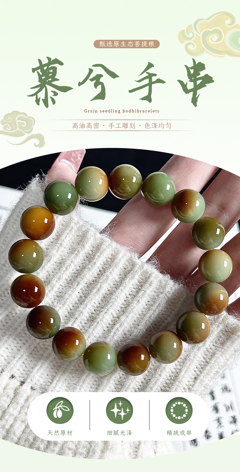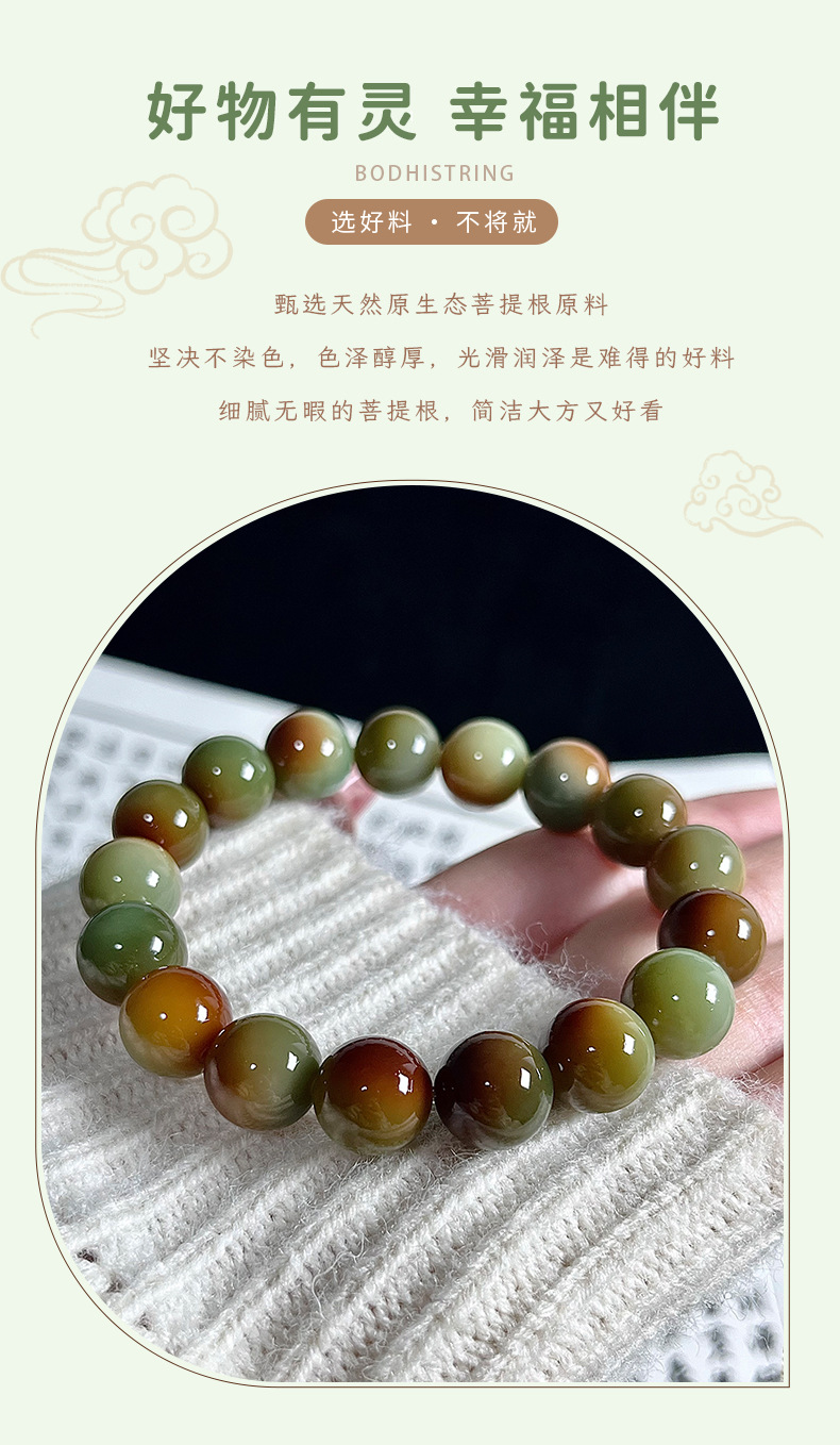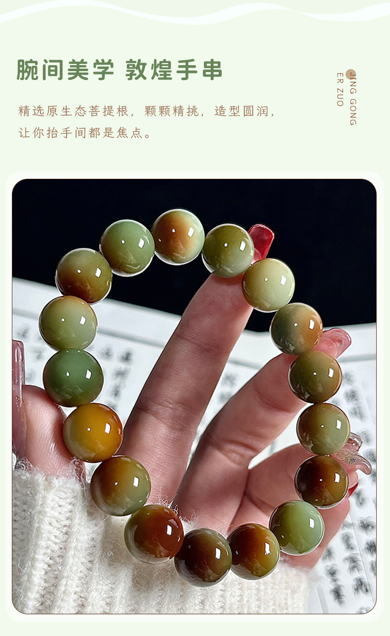 敦煌绿菩提手串男女绕指柔单圈圆珠菩提子文玩手串念珠佛珠批发