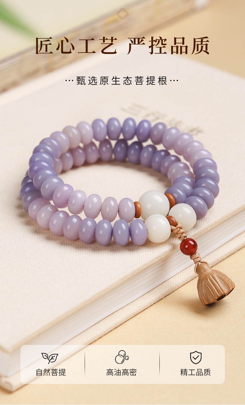 芋泥紫菩提手串算盘珠女款手持莲花静心菩提盘玩佛珠文玩手链批发