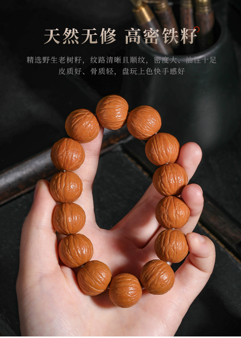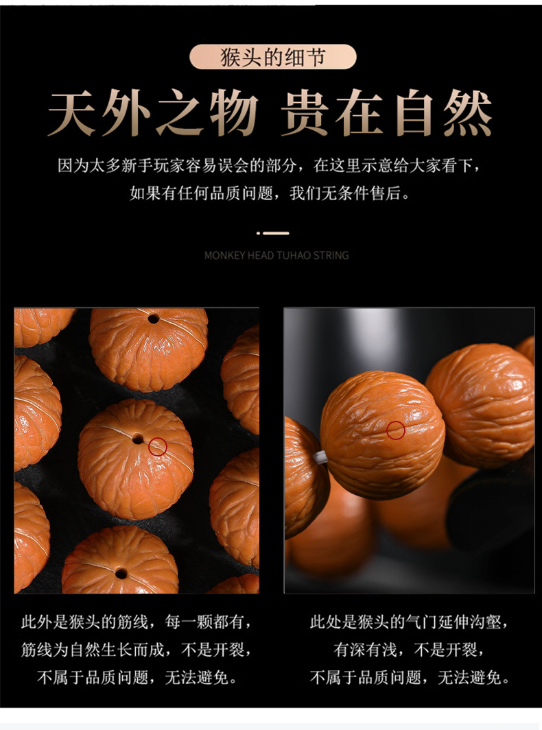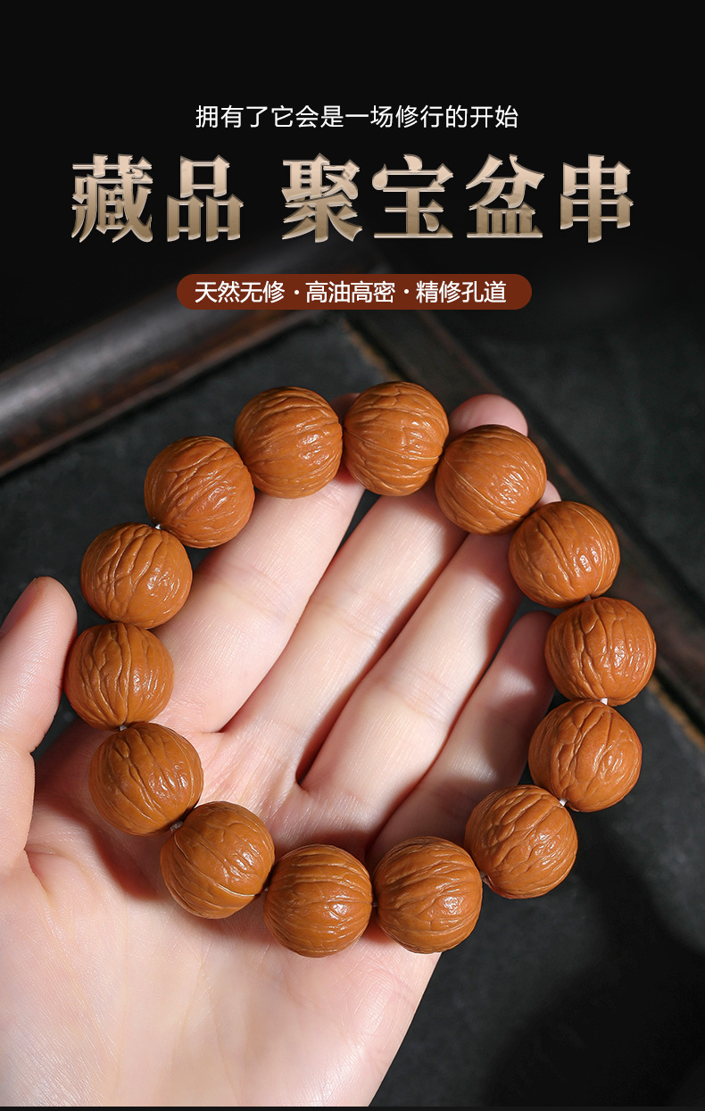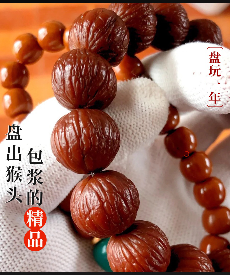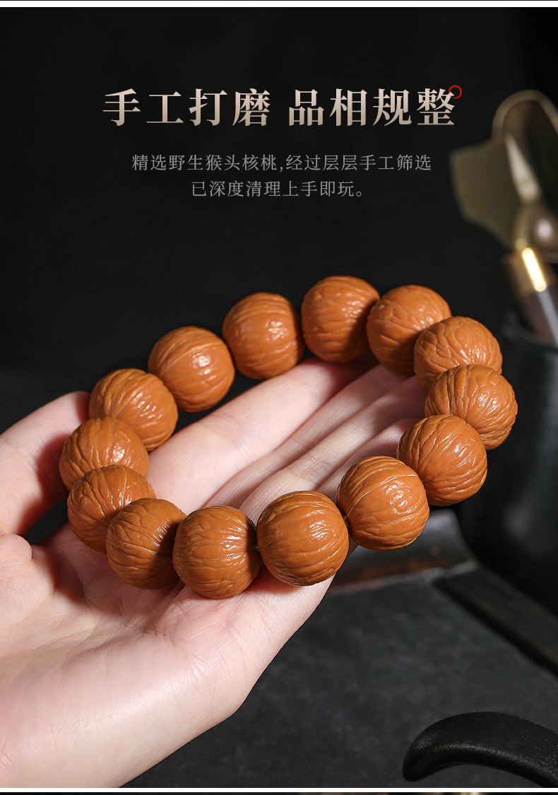 猴头核桃手串聚宝盆天然无修野生原籽土豪凤羽单圈文玩佛珠男批发