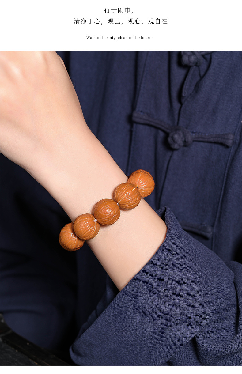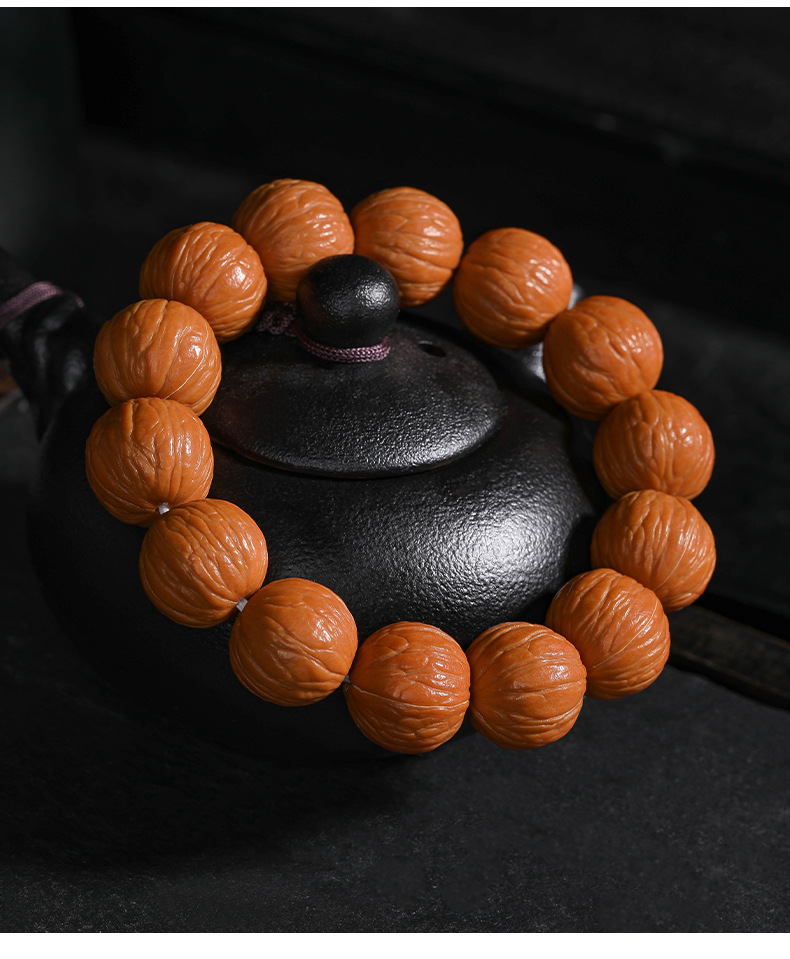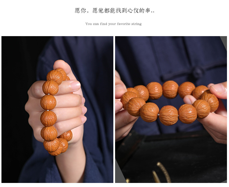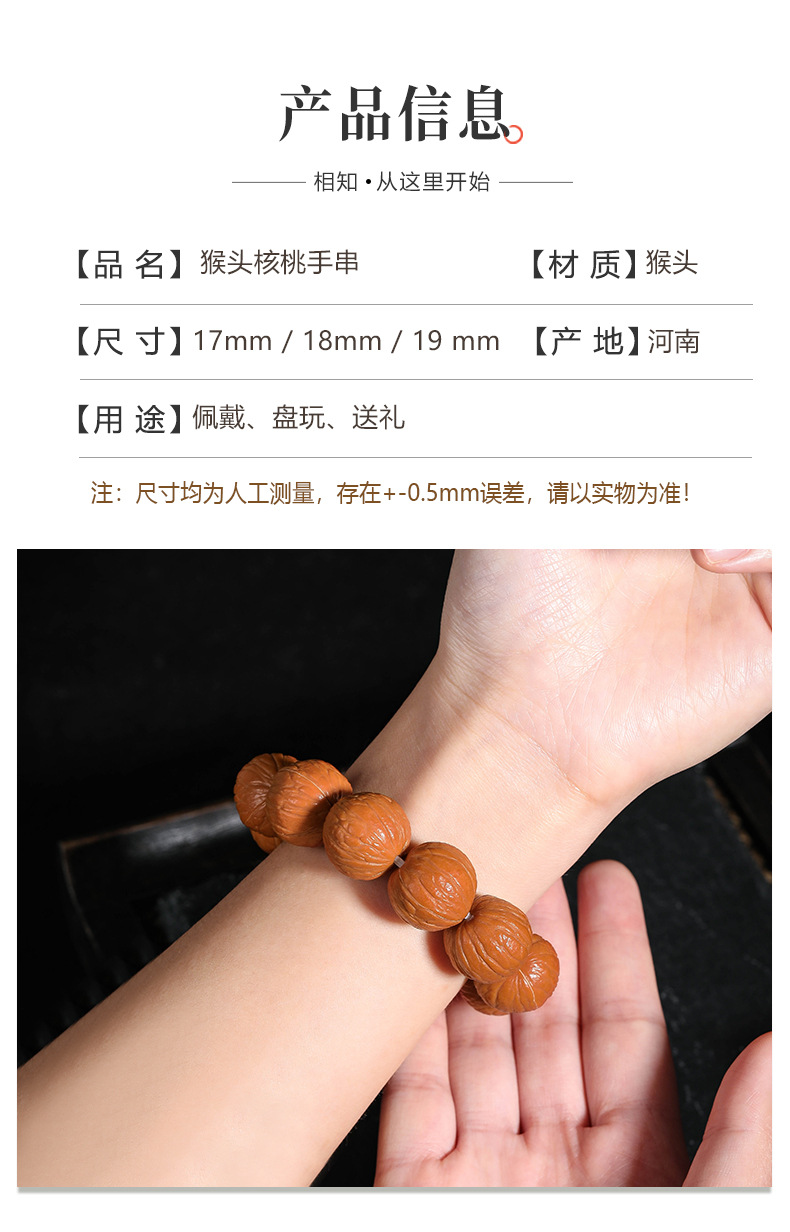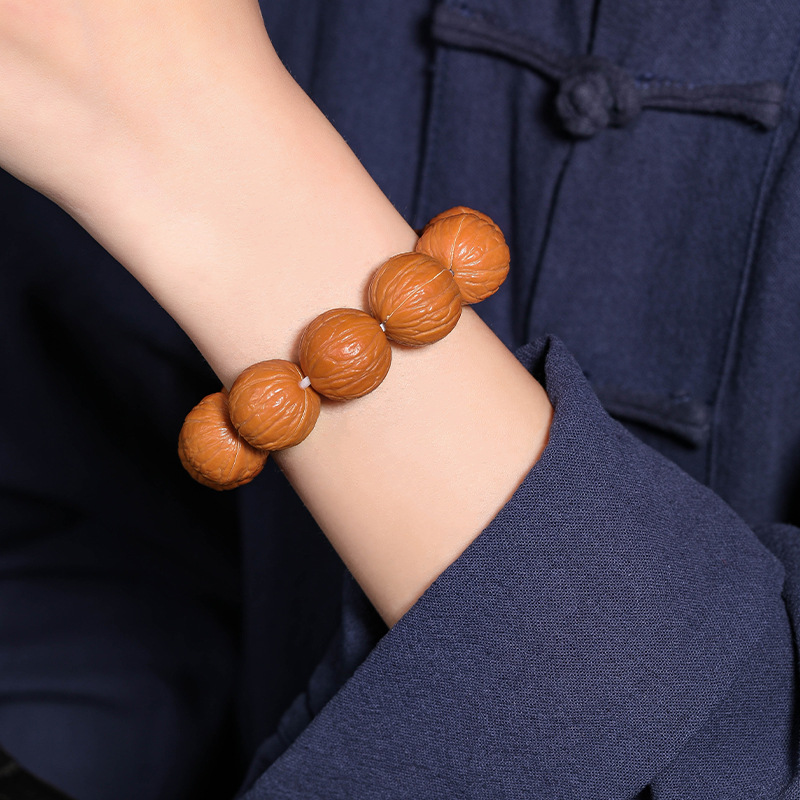 猴头核桃手串聚宝盆天然无修野生原籽土豪凤羽单圈文玩佛珠男批发