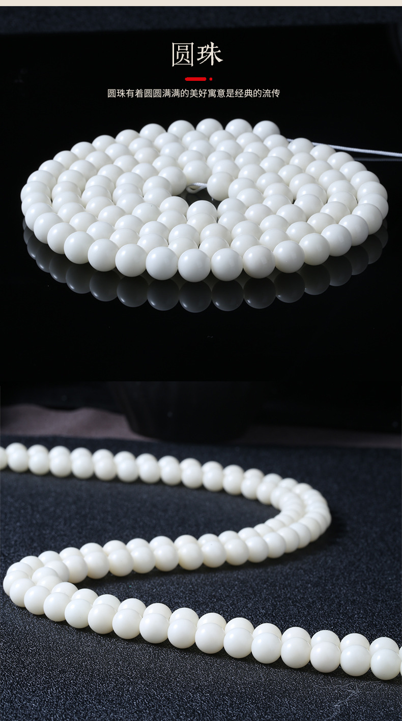 天然白玉菩提根手串男女圆珠素珠114颗高抛菩提佛珠手链厂家批发
