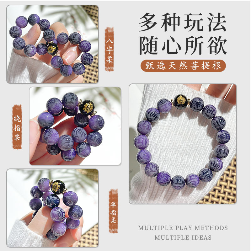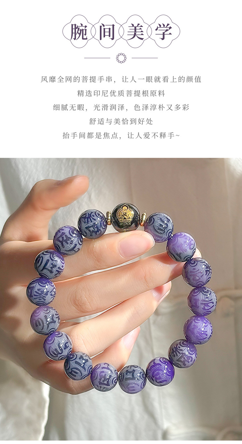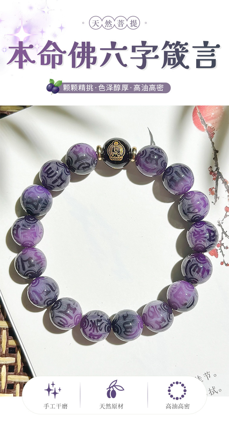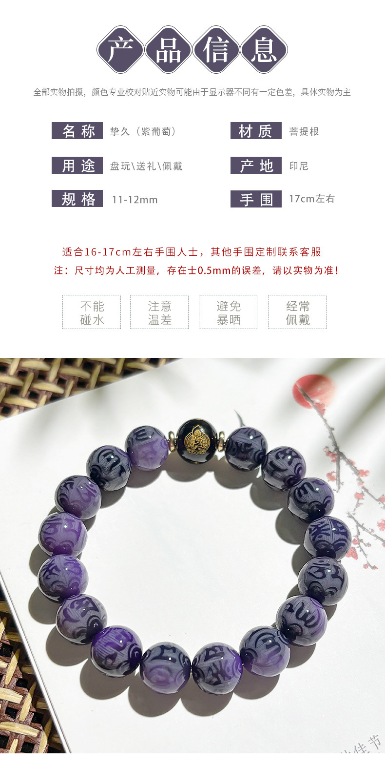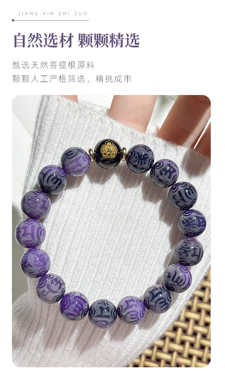 小蓝莓六字箴言菩提手串本命十二生肖单圈手链盘玩文玩佛珠批发