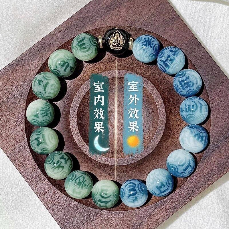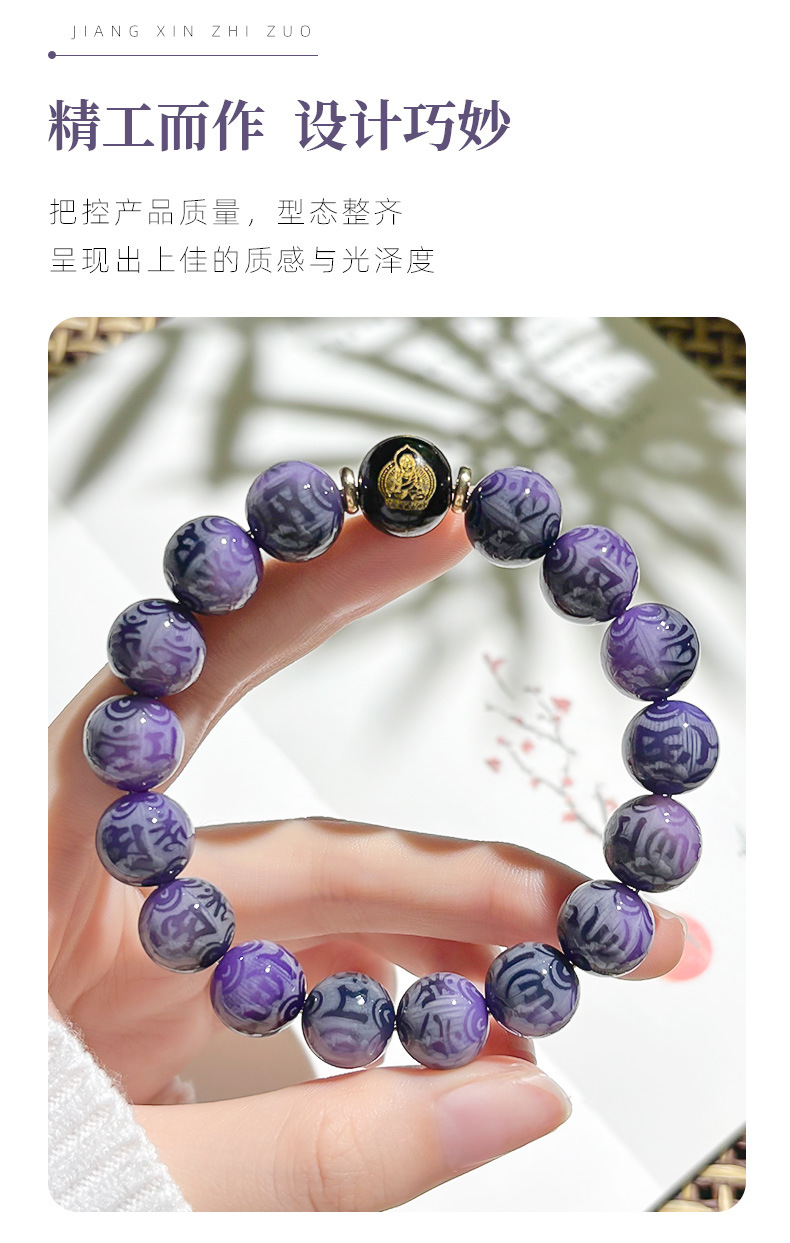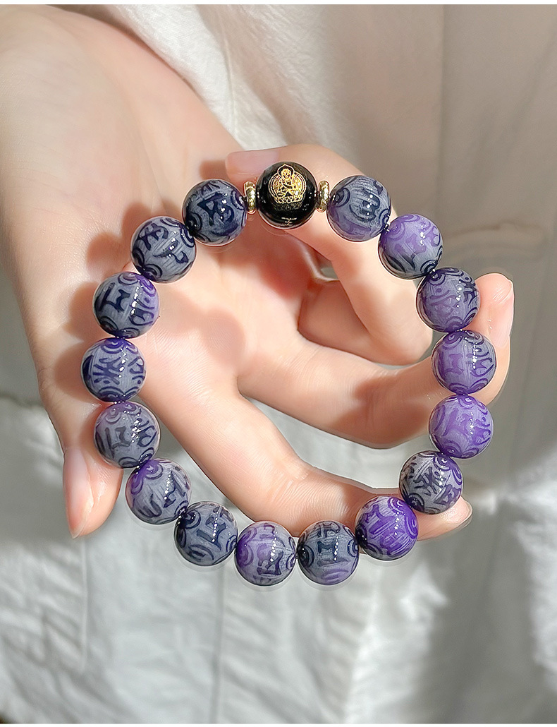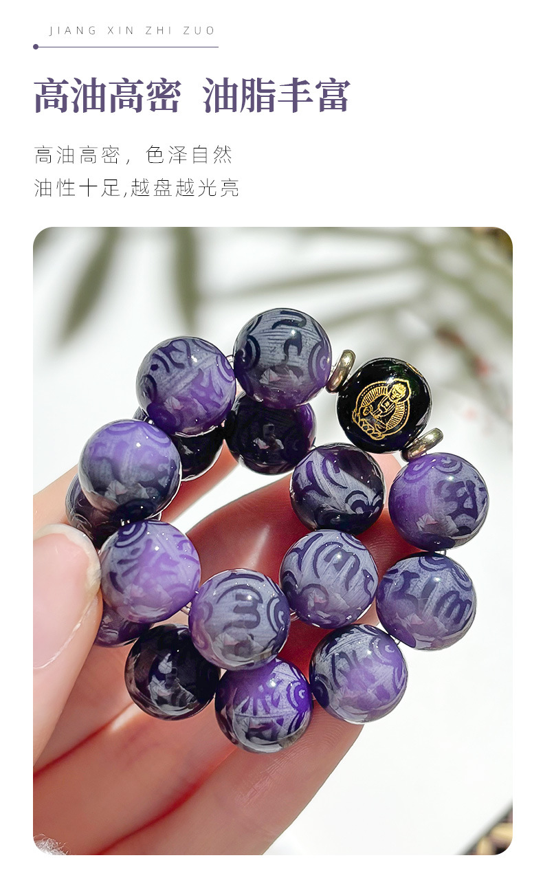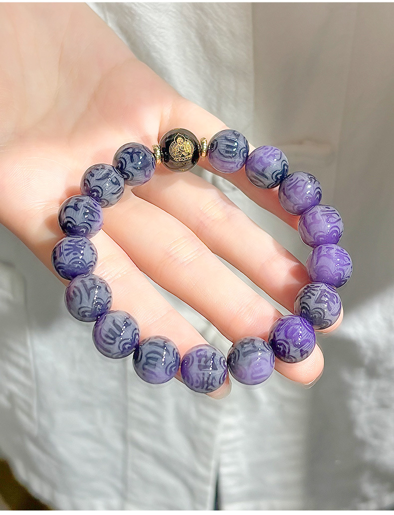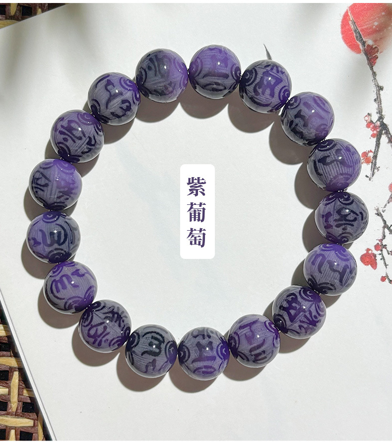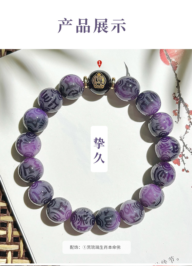 小蓝莓六字箴言菩提手串本命十二生肖单圈手链盘玩文玩佛珠批发
