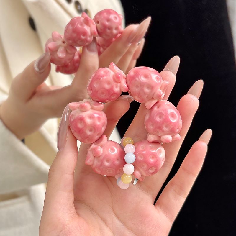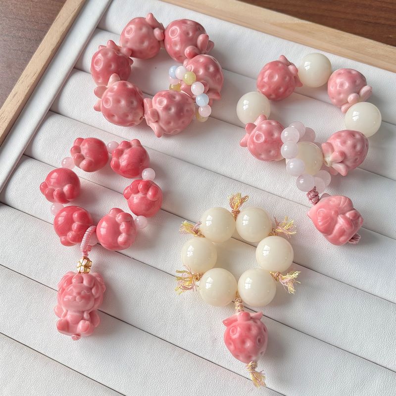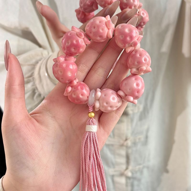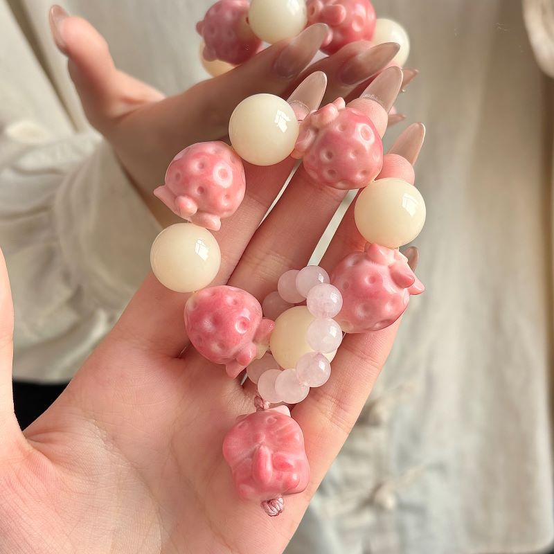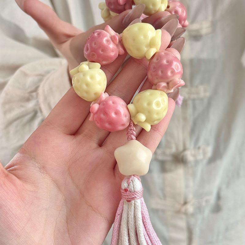 【小红书同款】天然象牙果手串草莓雕刻件手捻女闺蜜文玩手把件