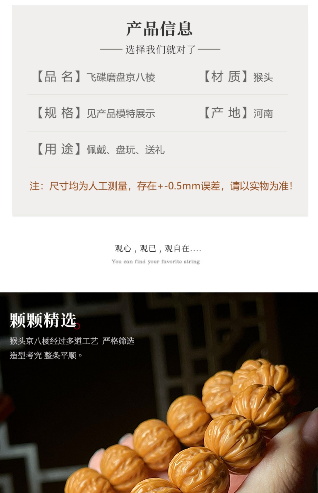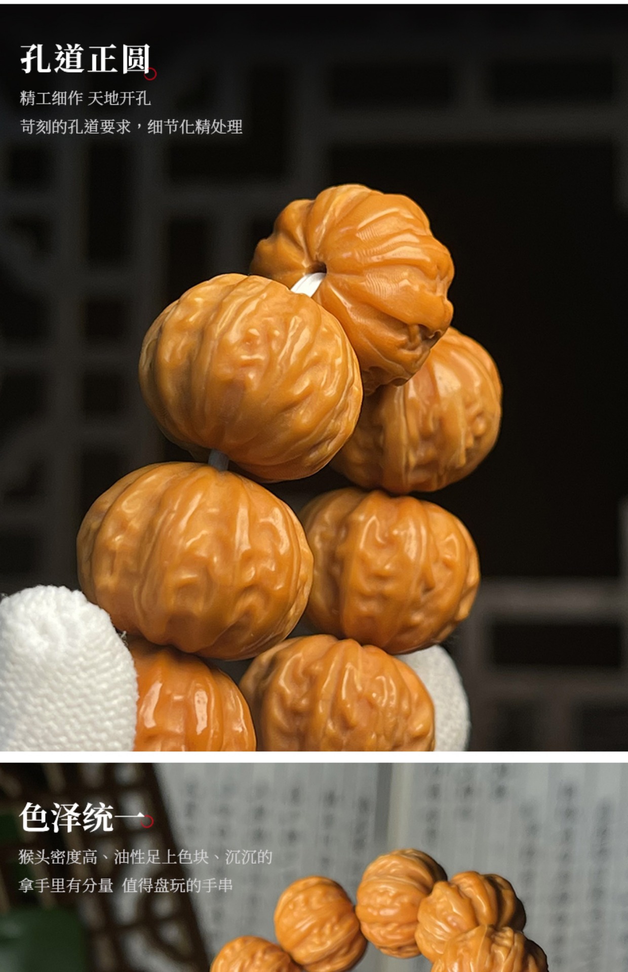 工厂直销猴头雕刻京八棱核桃手串土豪串南瓜桩单圈文玩佛珠男批发