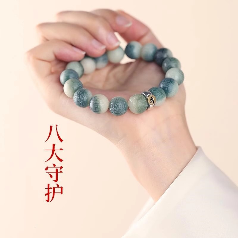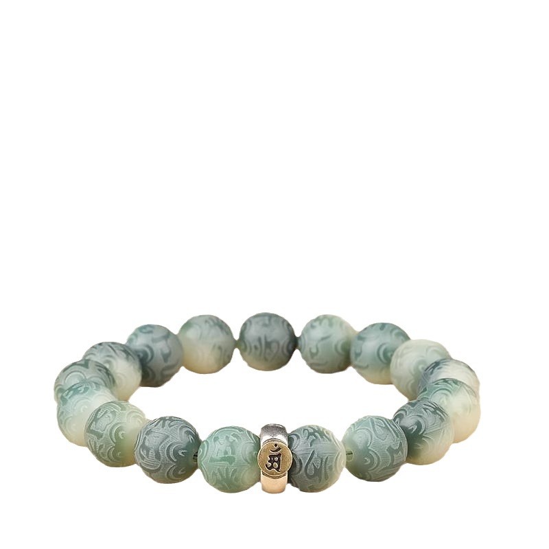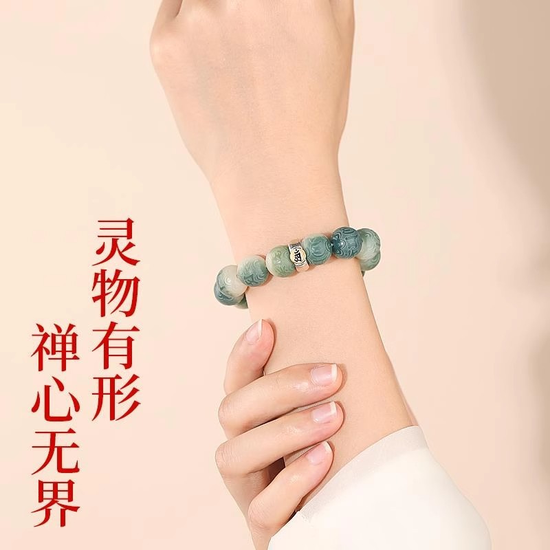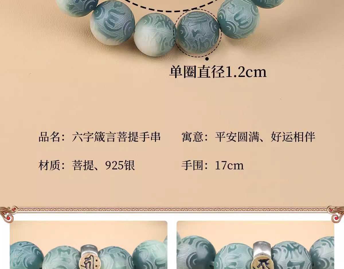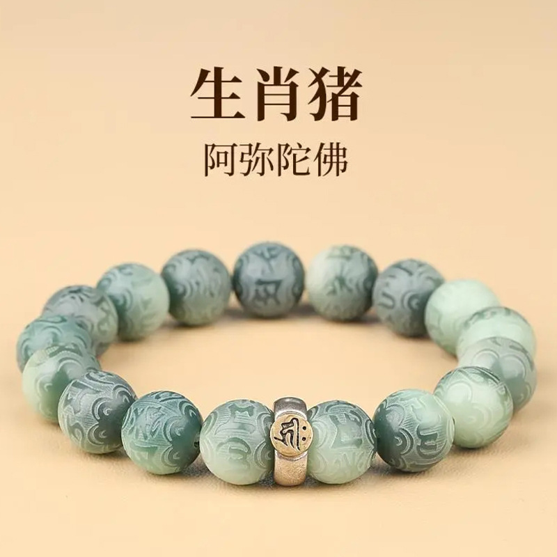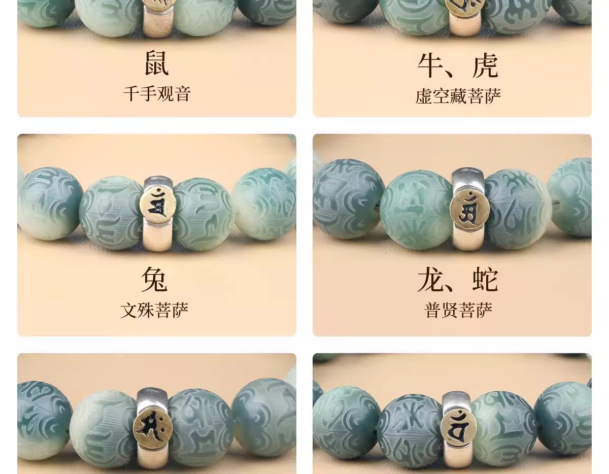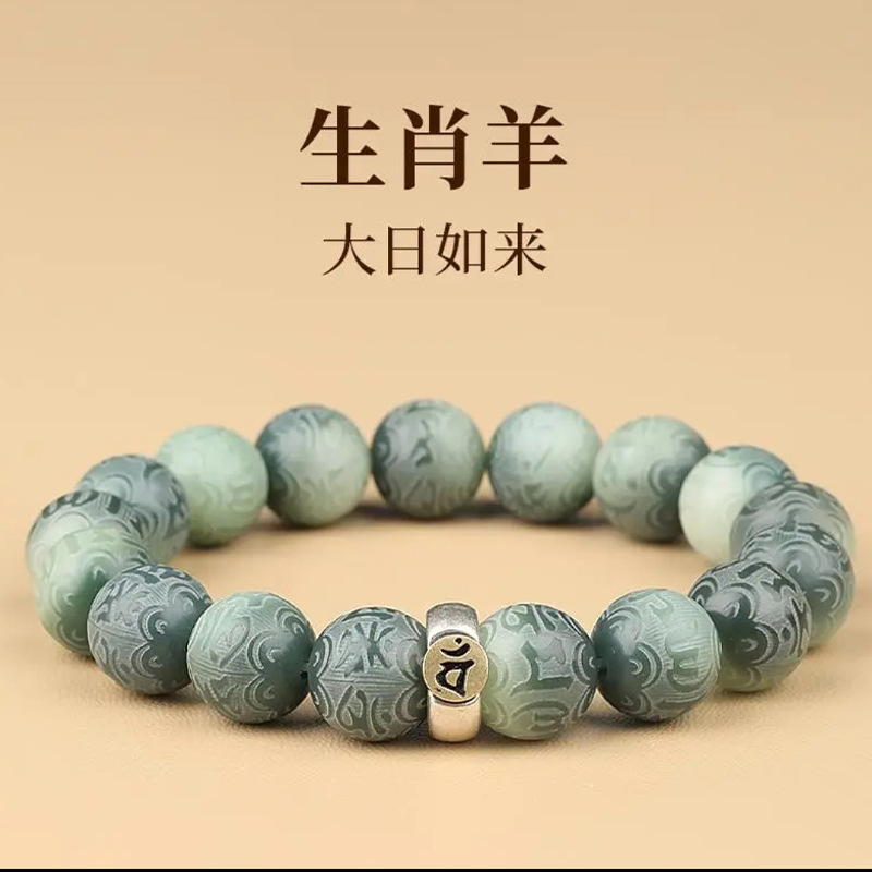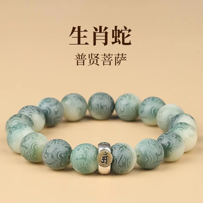 绿飘花六字真言菩提手串十二生肖本命年绕指柔佛珠文玩手链批发