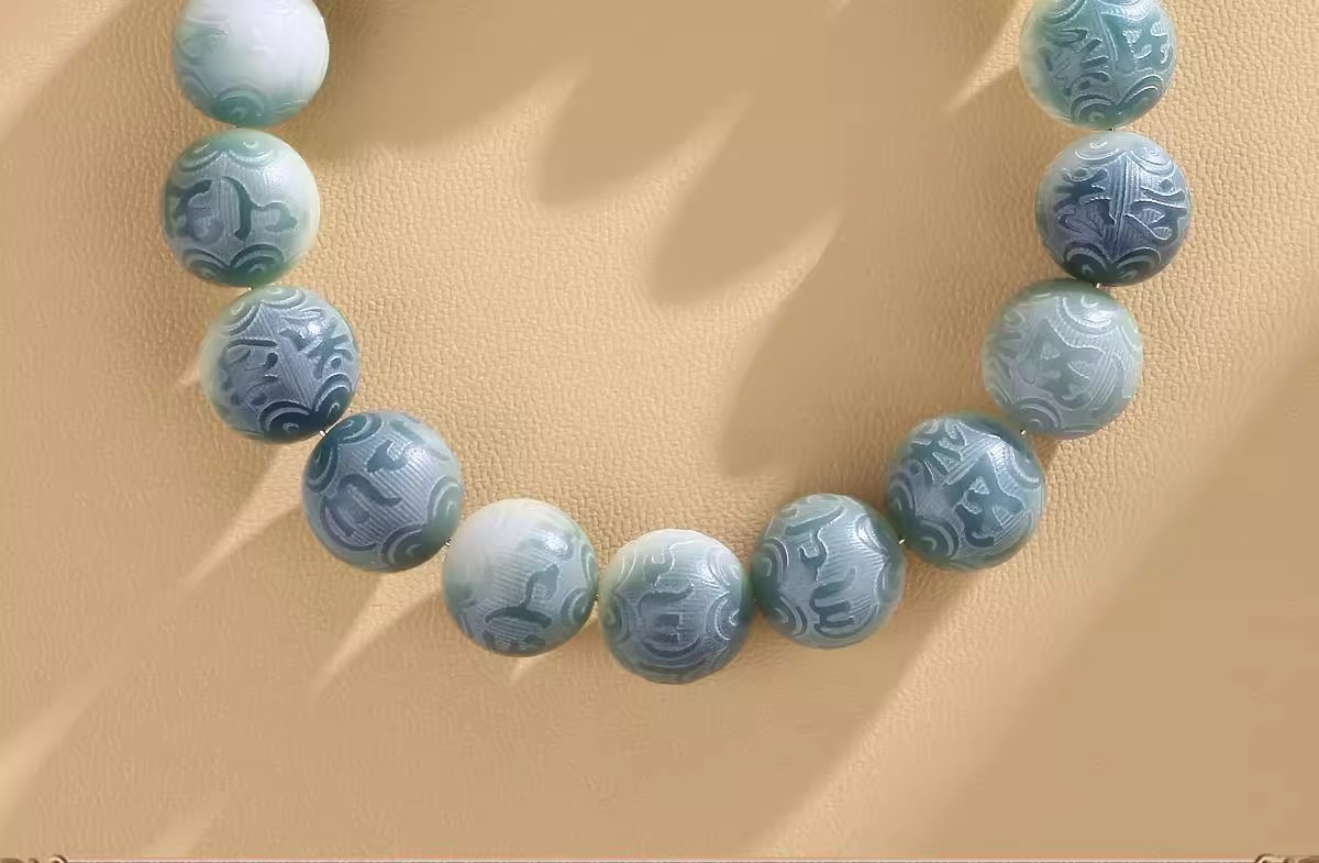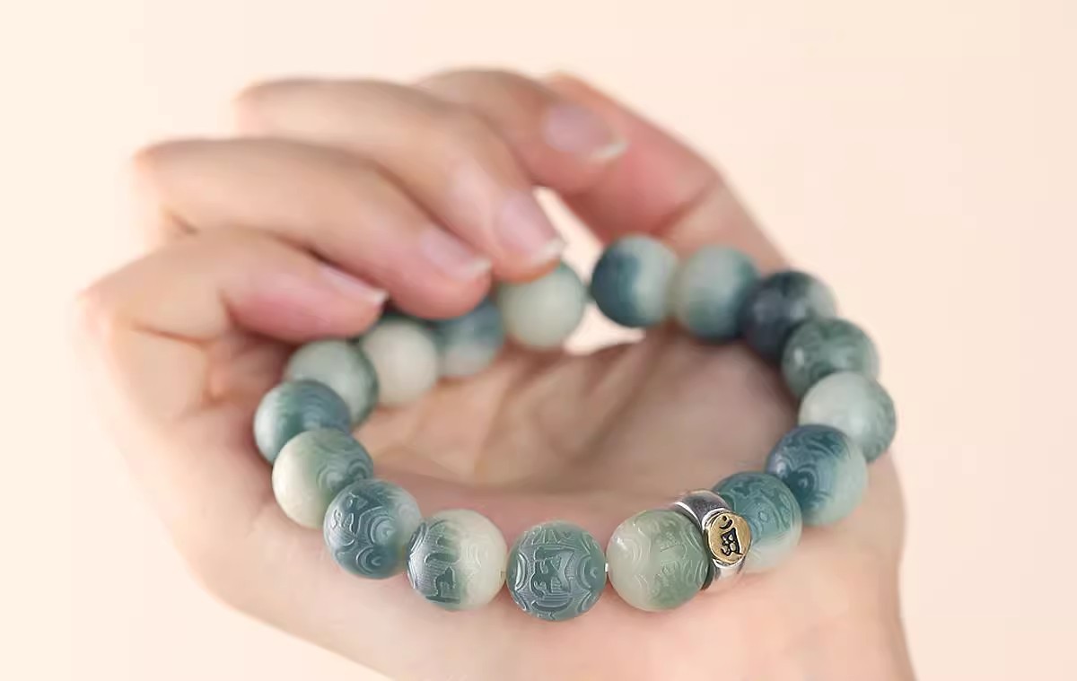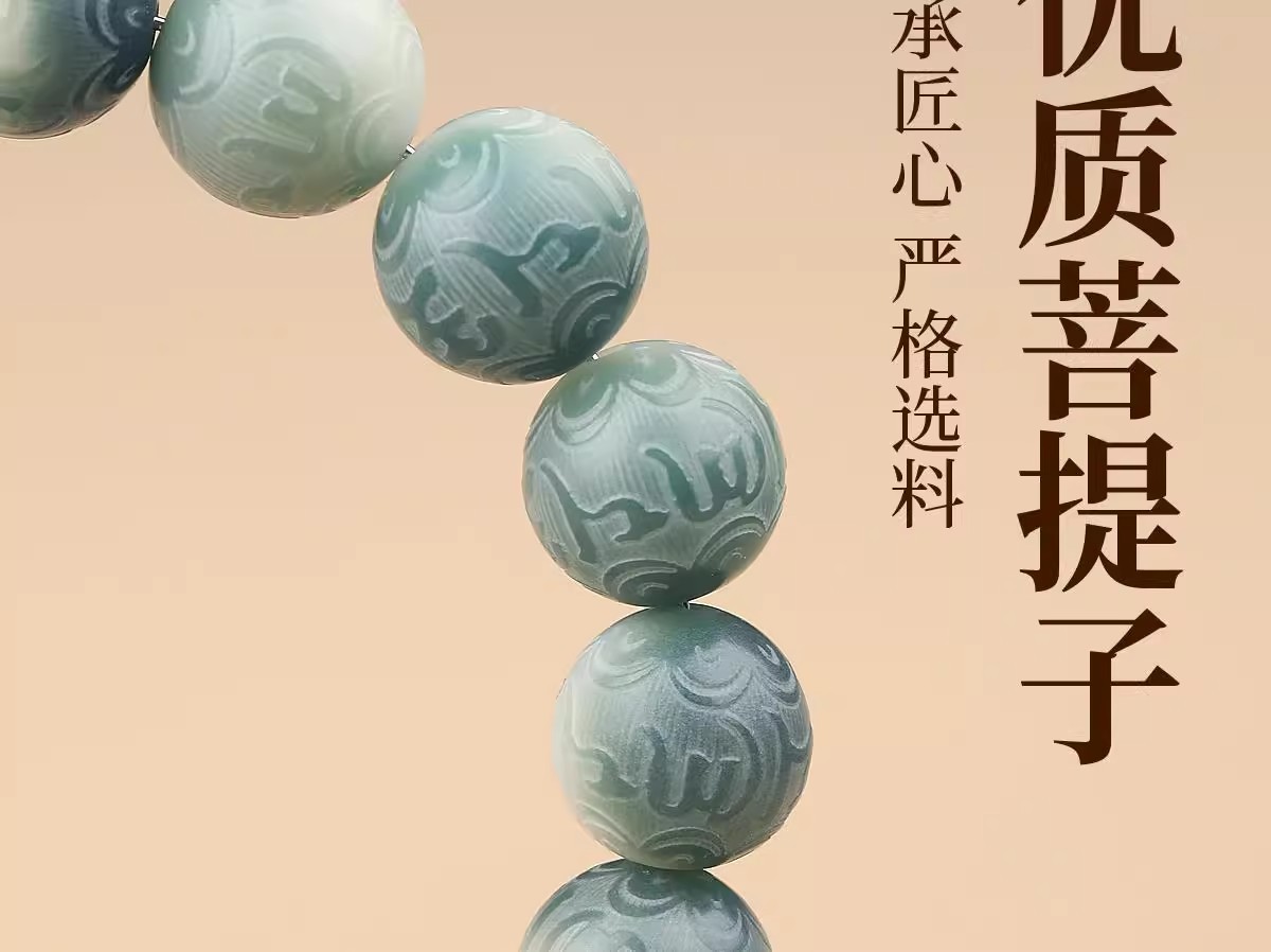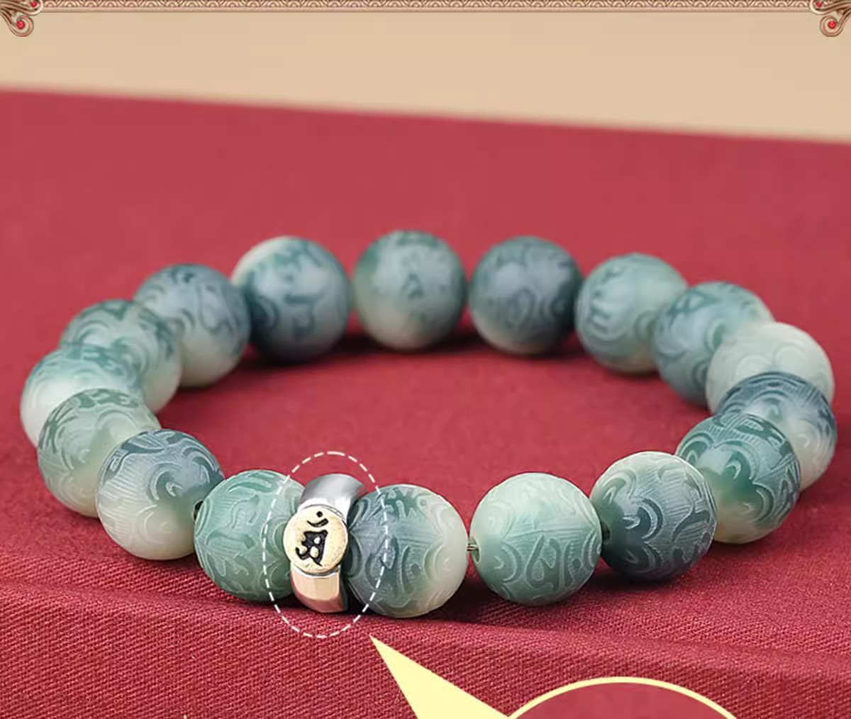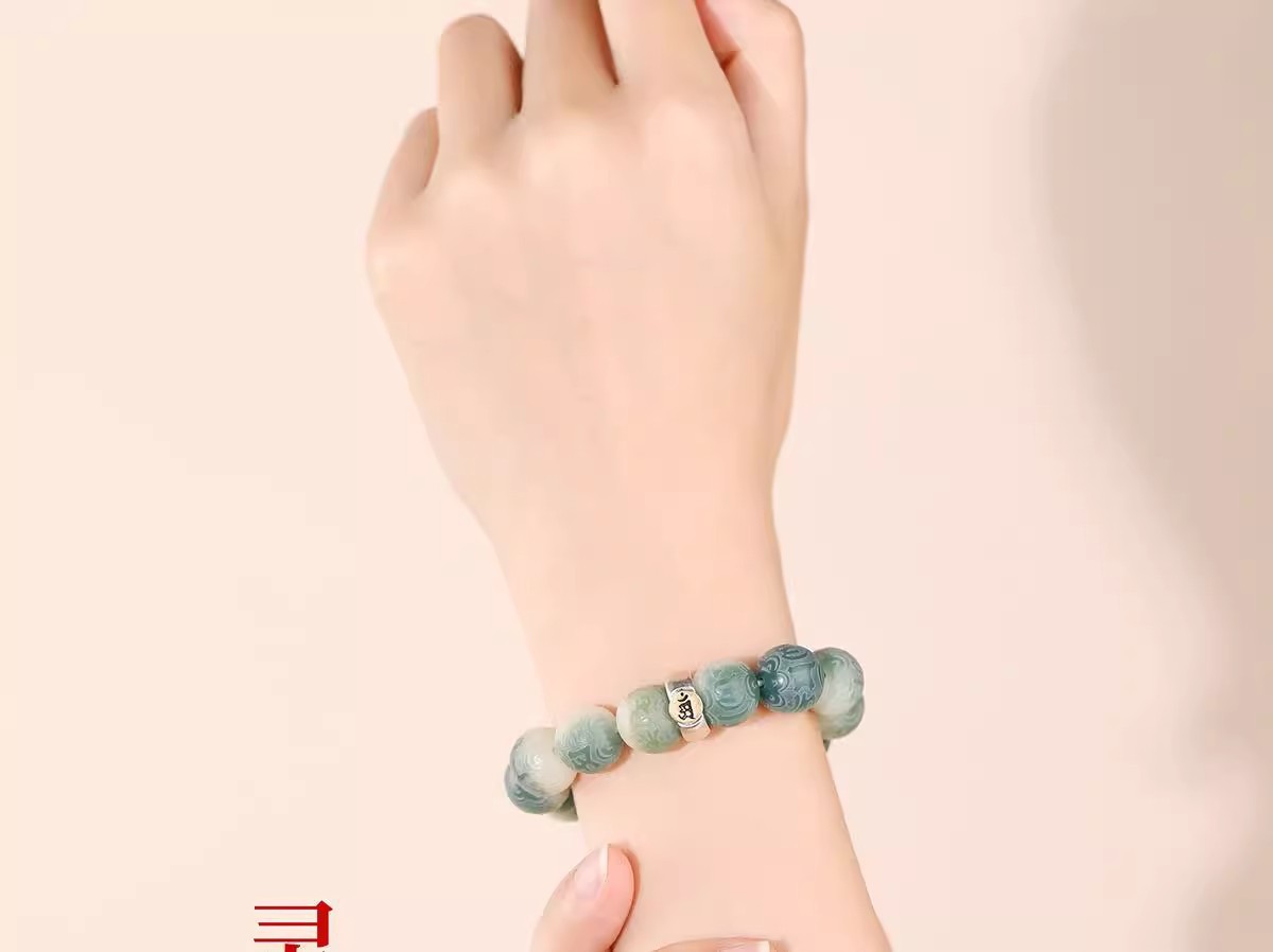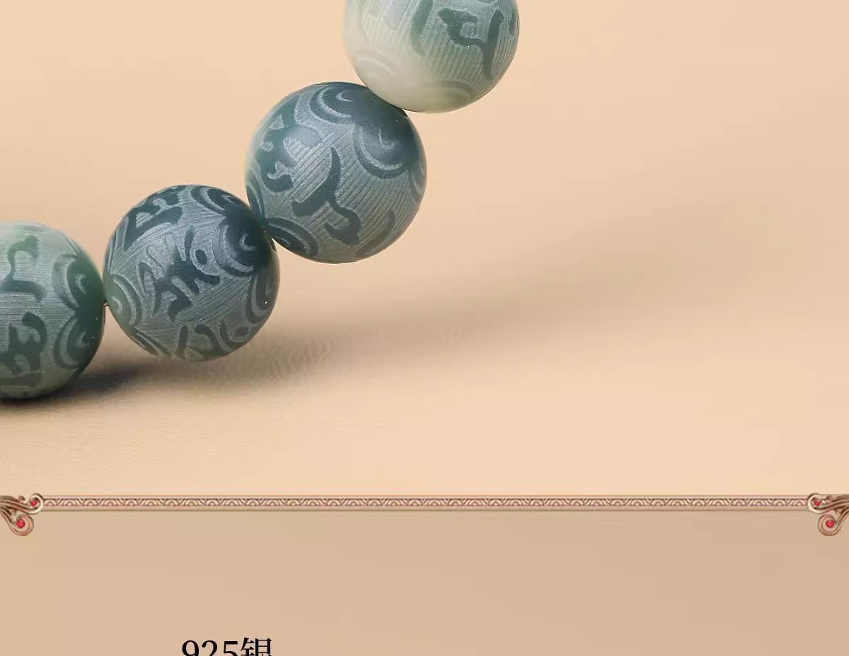 绿飘花六字真言菩提手串十二生肖本命年绕指柔佛珠文玩手链批发
