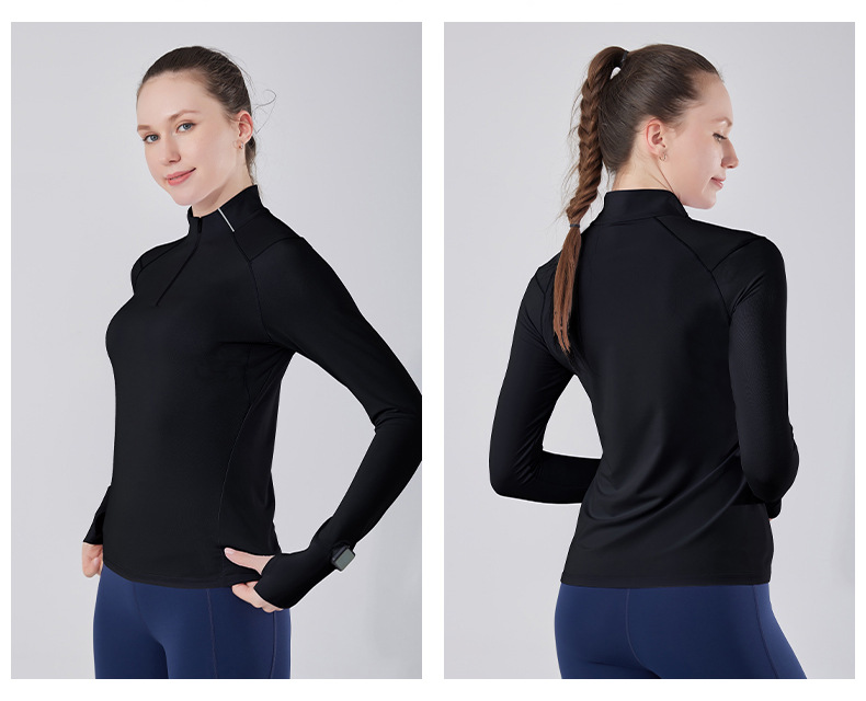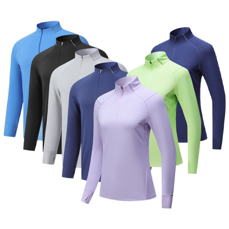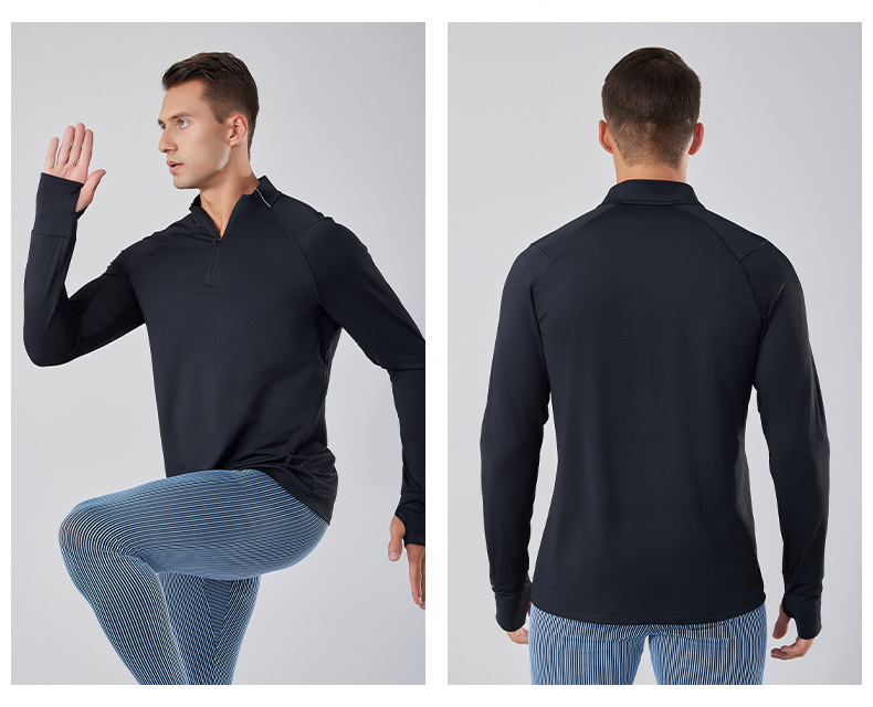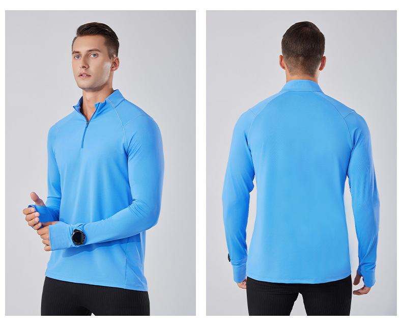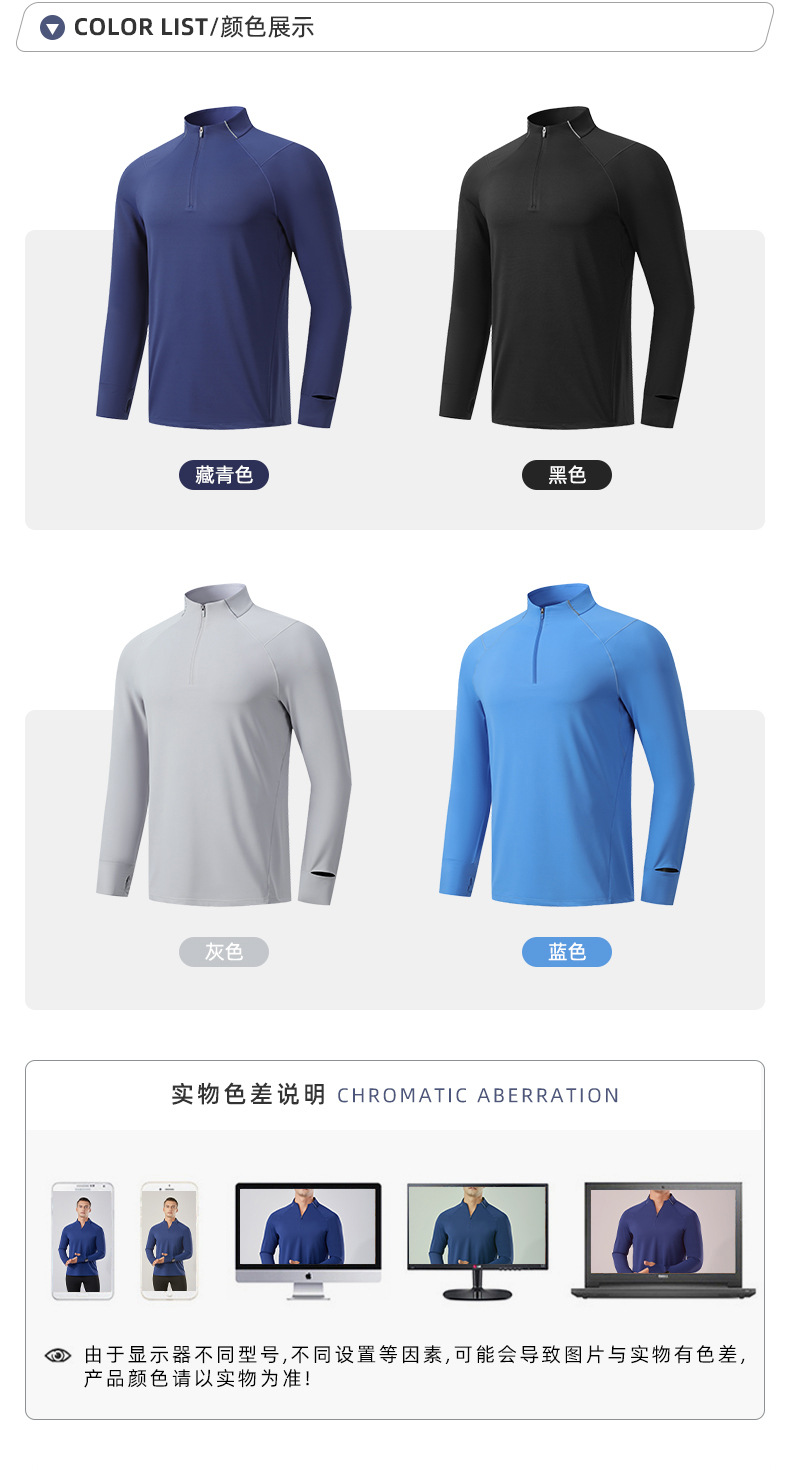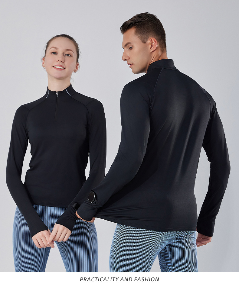 2025秋季新款速干衣T恤男女吸湿训练健身服半开拉链运动跑步长袖