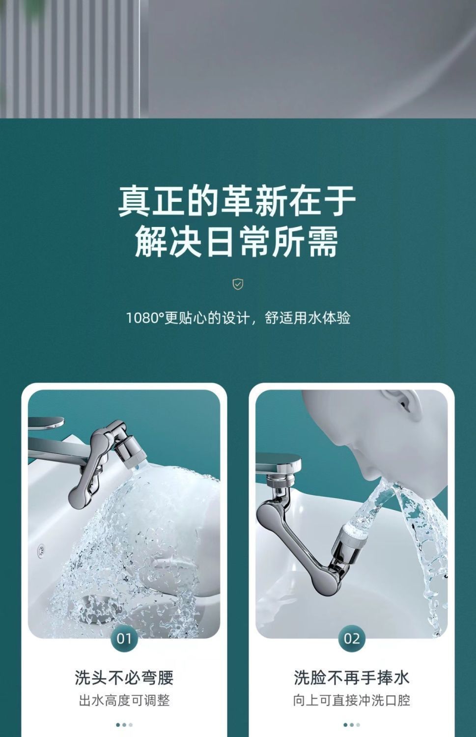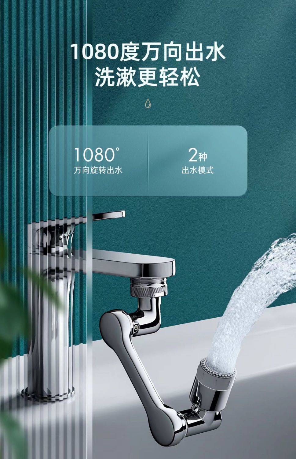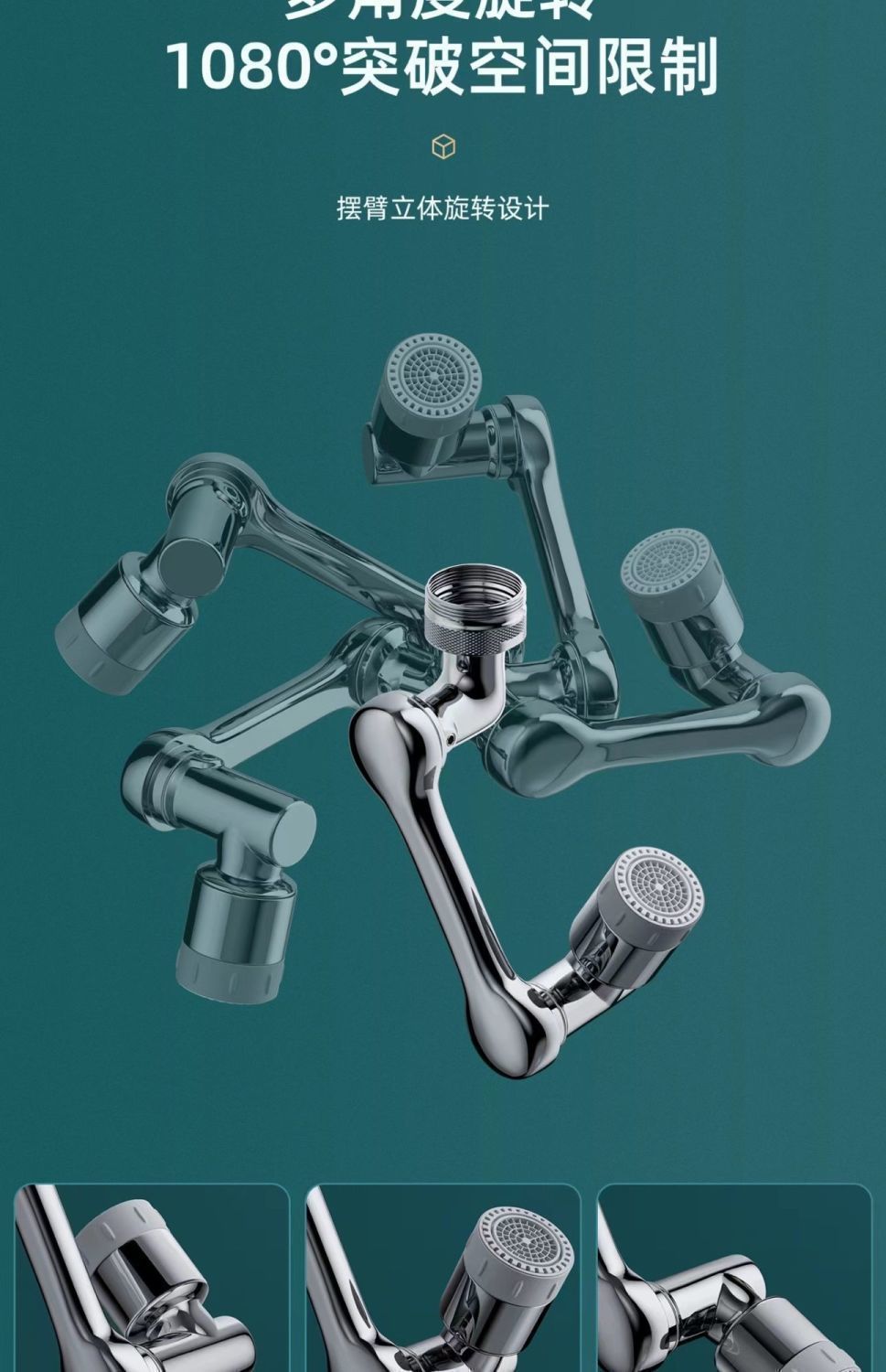 机械臂万向1080°可旋转水龙头卫生间防溅水龙头延伸器起泡器水嘴