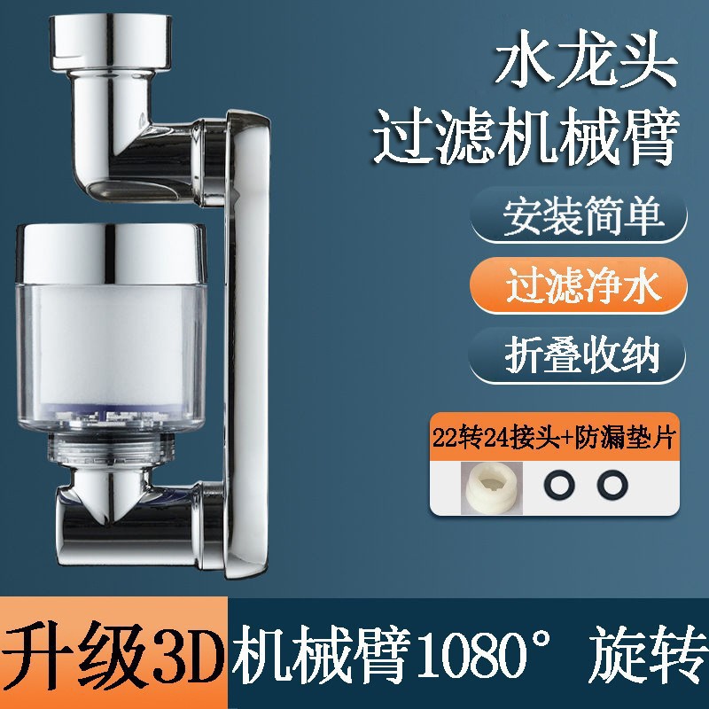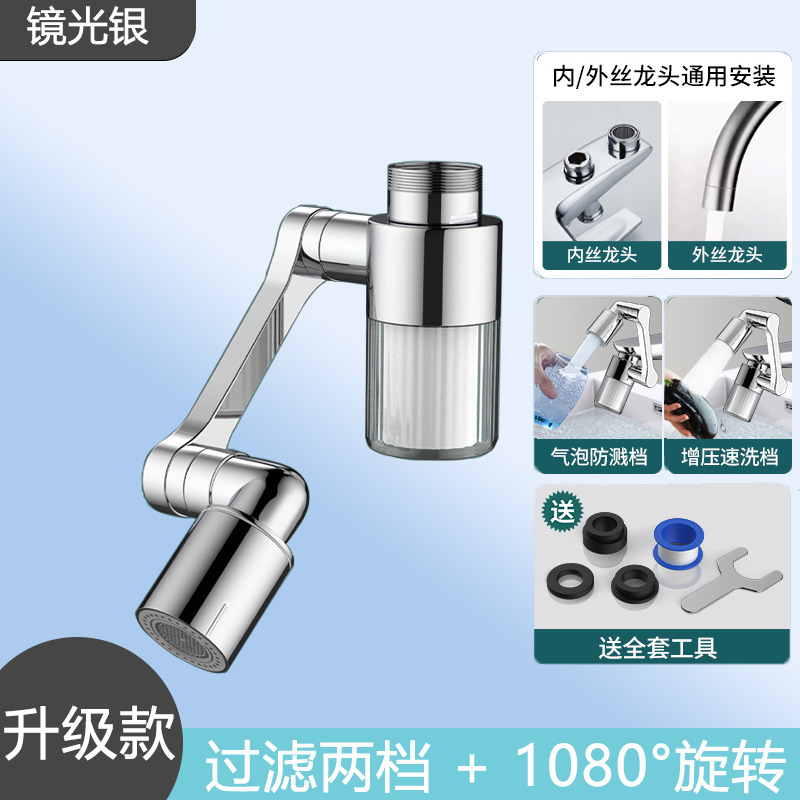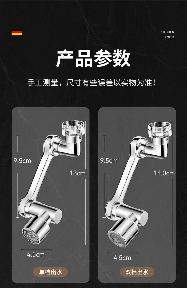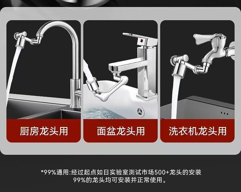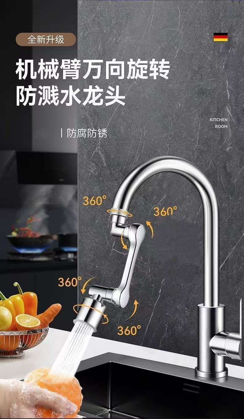 万向水龙头卫生间防溅水嘴1080°旋转加长延伸器机械臂洗漱起泡器