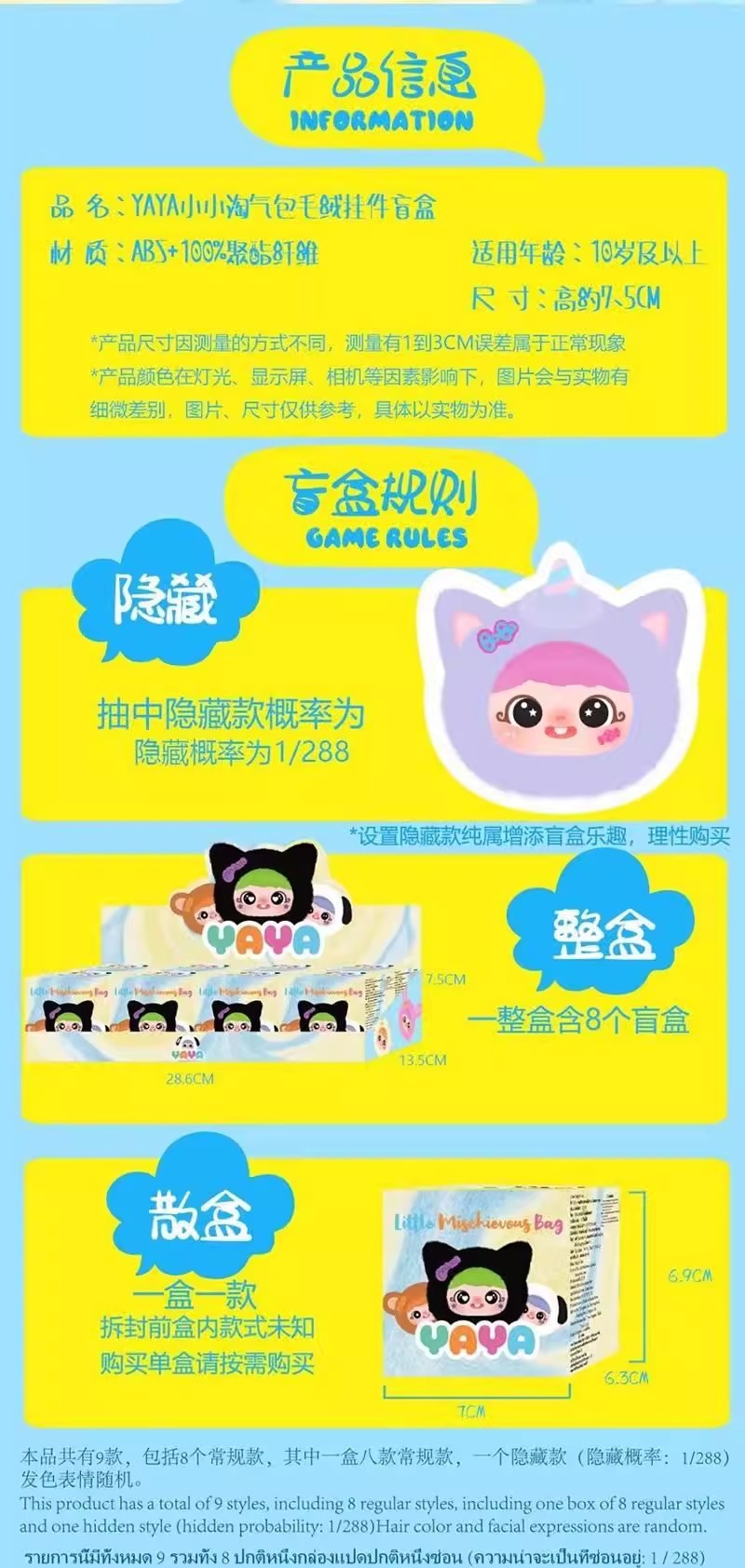 正版YAYA的小小淘气包毛绒挂件玩偶公仔玩具可爱手办盲盒批发