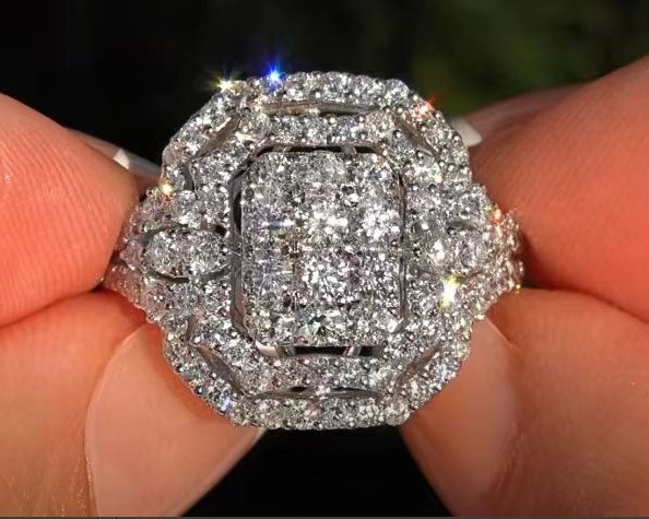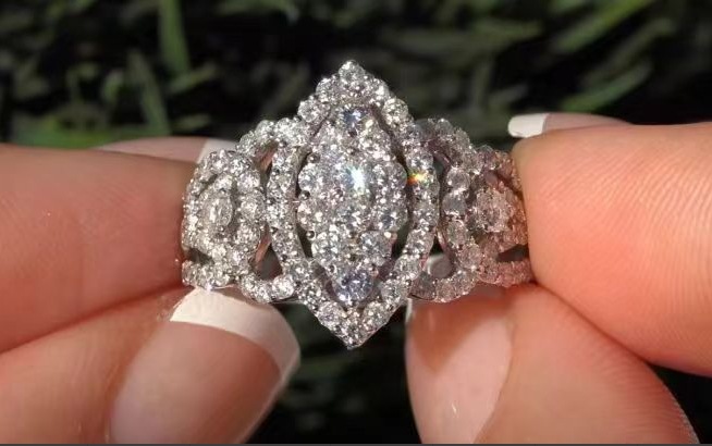 爆闪奢华重工镶嵌满钻锆石戒指欧美风时尚夸张个性镶钻指环手饰