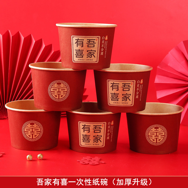 结婚一次性纸碗加厚喜庆红色圆形喜碗婚礼酒席订婚宴家用婚庆用品
