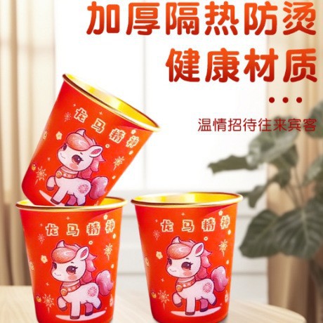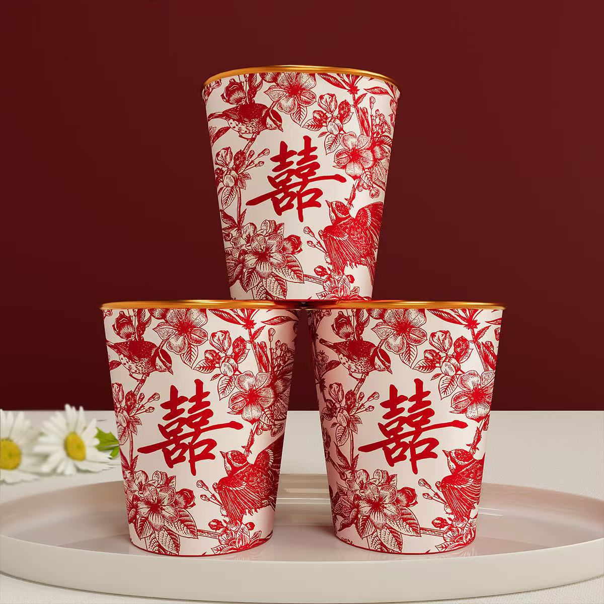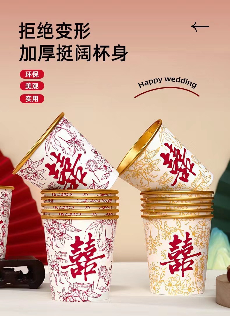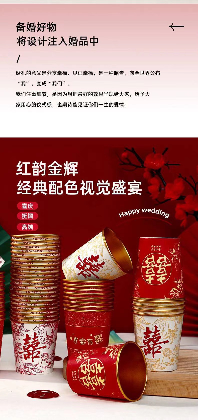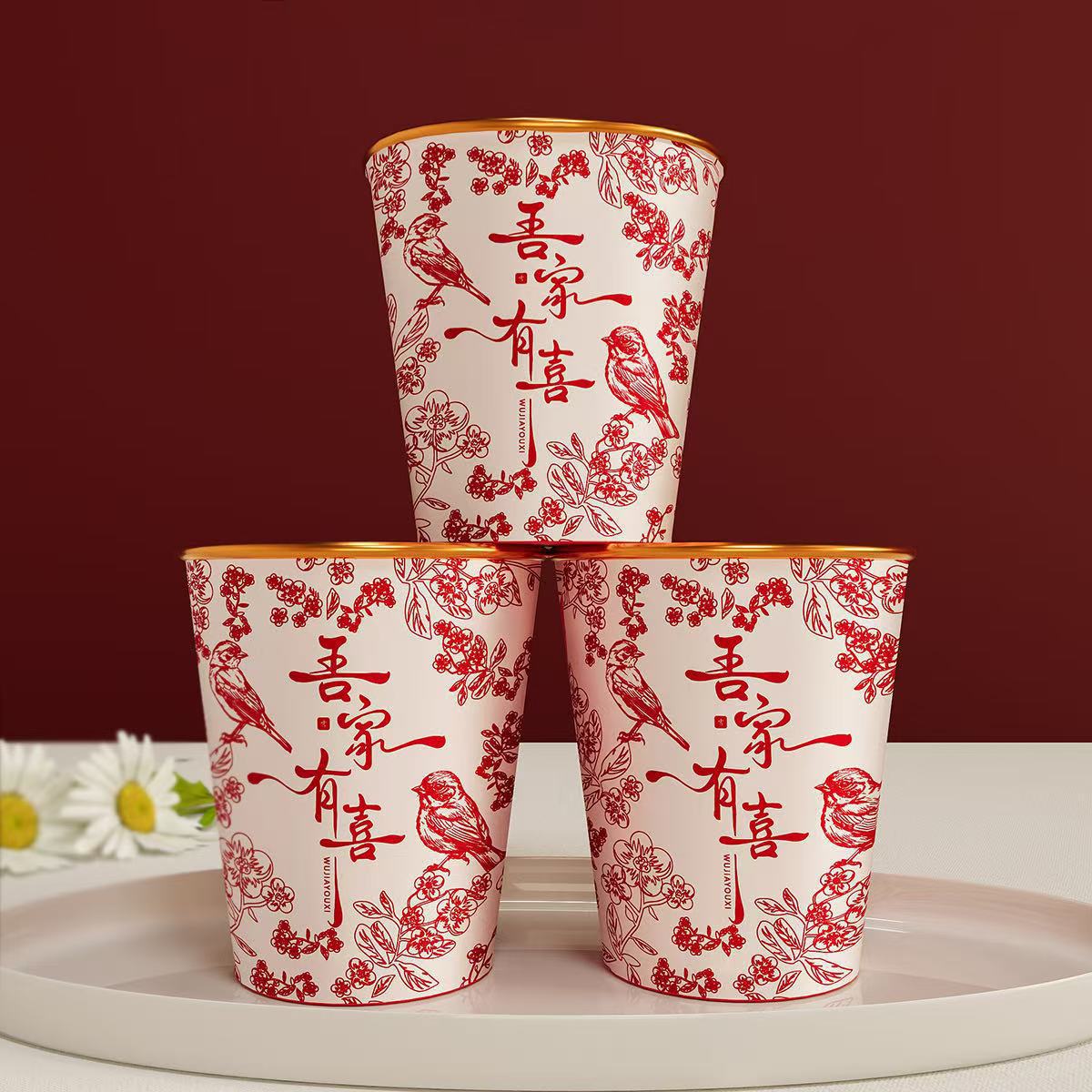 马年金箔纸杯婚礼红色喜茶纸杯金箔纸杯加厚杯子结婚纸杯一次性