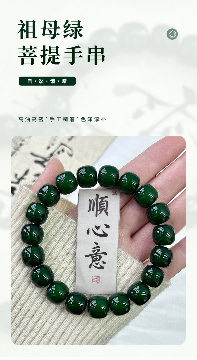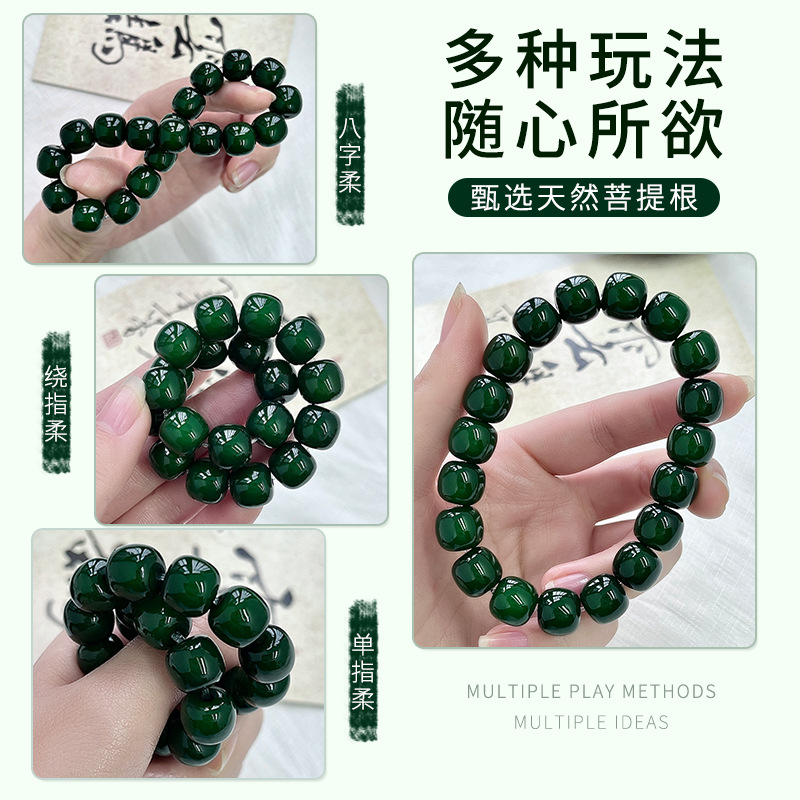 精工干磨老料祖母绿菩提手串绕指柔手把件菩提子文玩手串佛珠批发