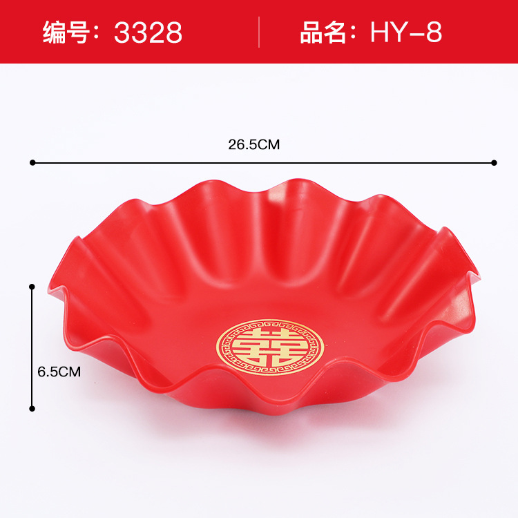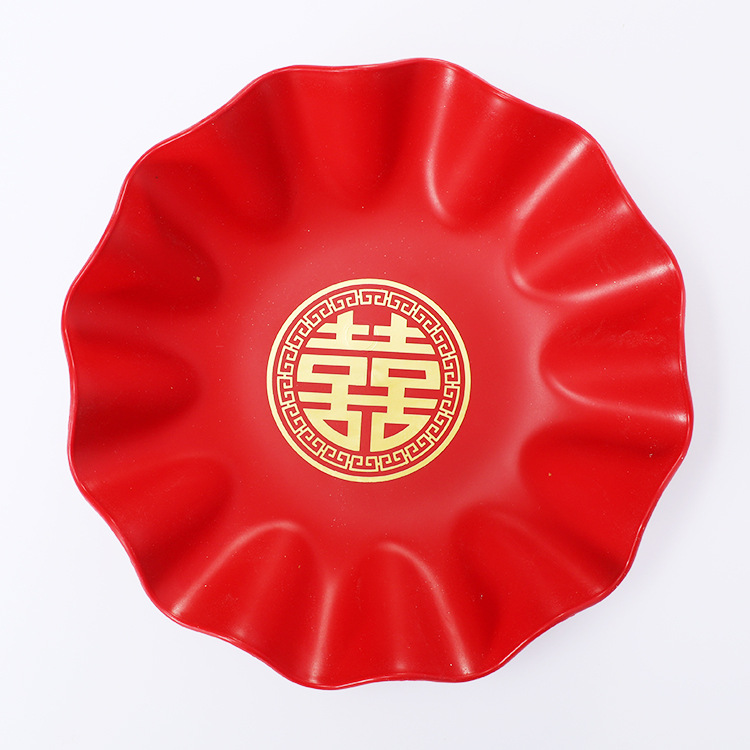 厂家批发结婚小吃盘中式干果盘婚庆水果盘塑料果篮喜字果盘摆盘