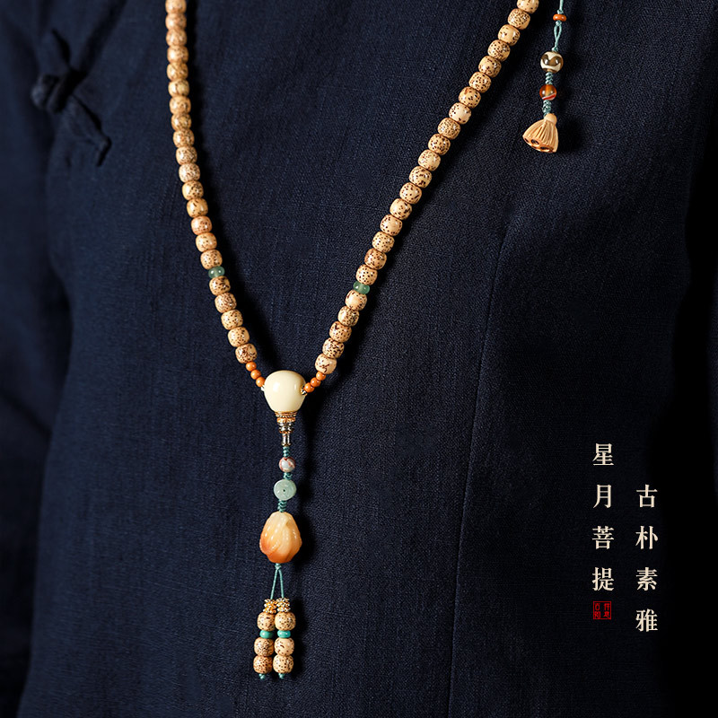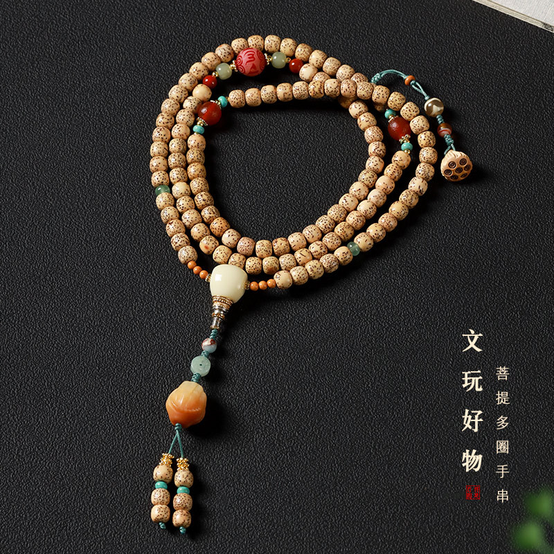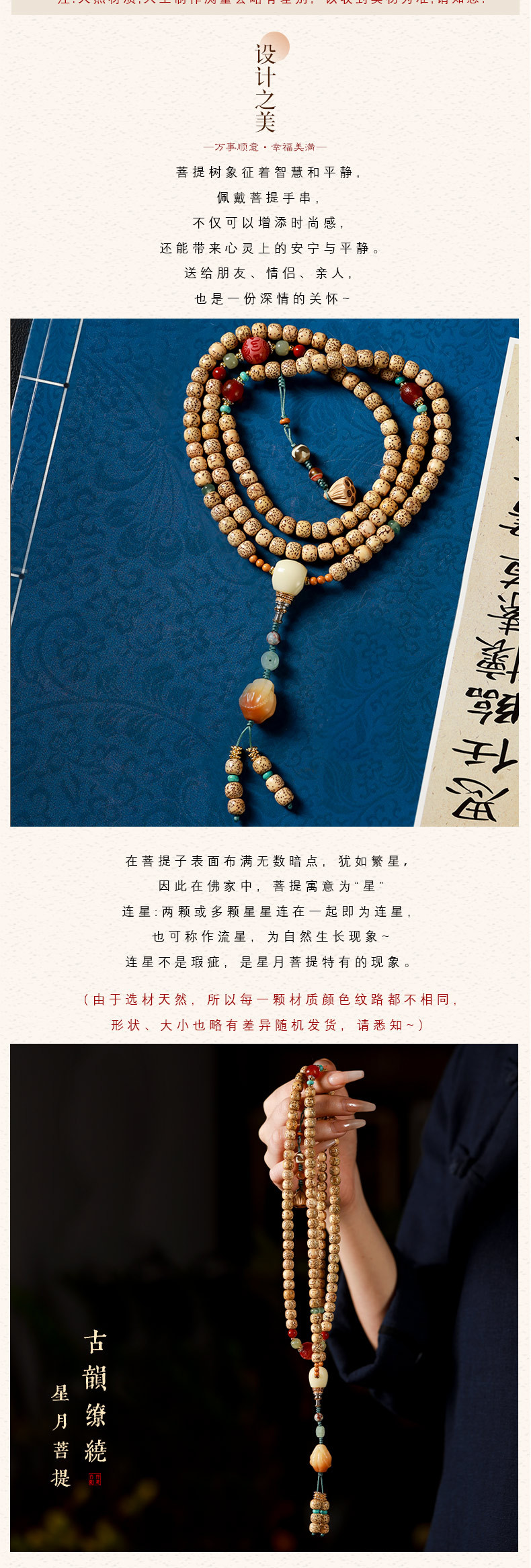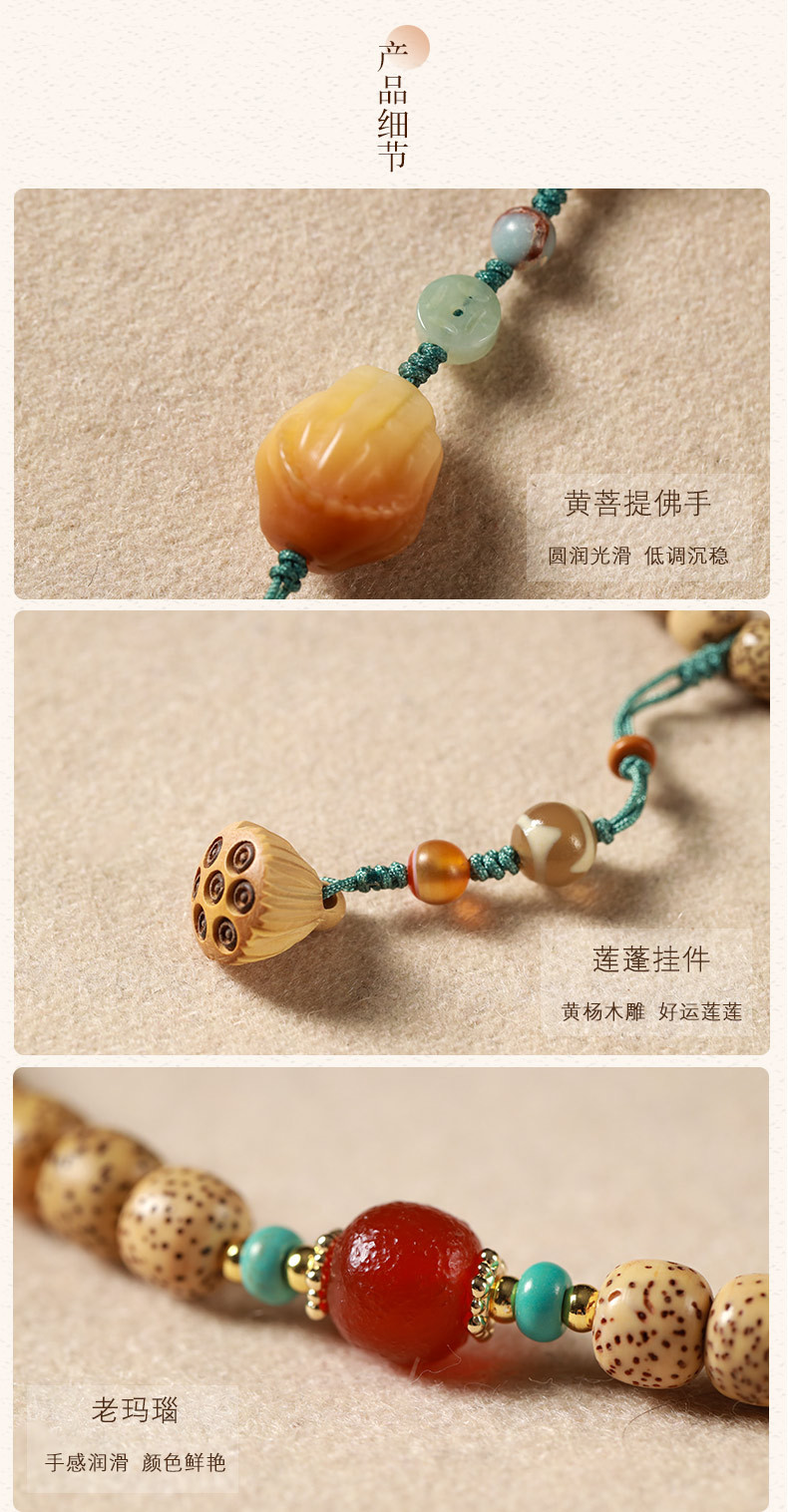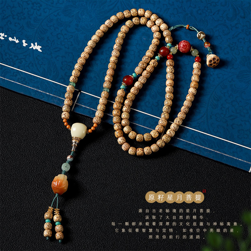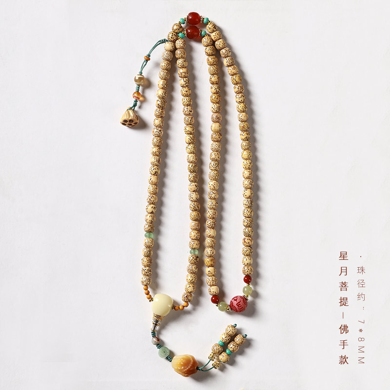 国潮海南黄金籽 星月菩提子佛手手串多圈 复古文玩佛珠项链男女款