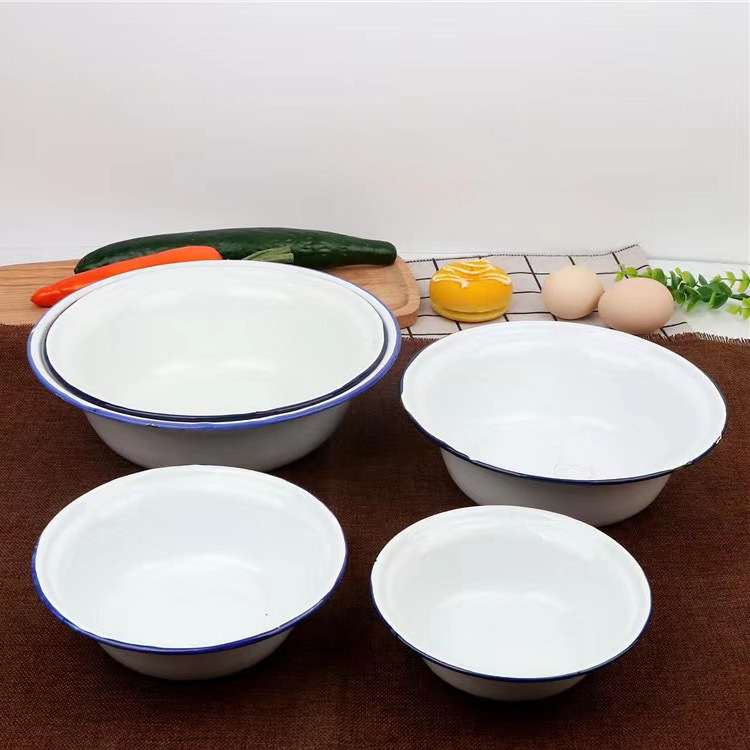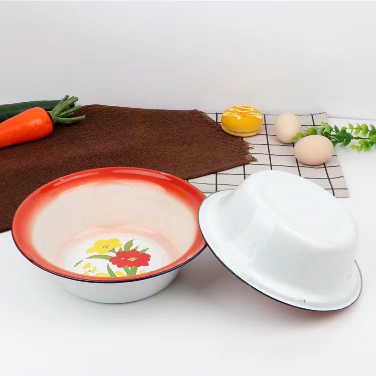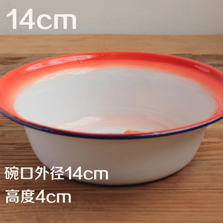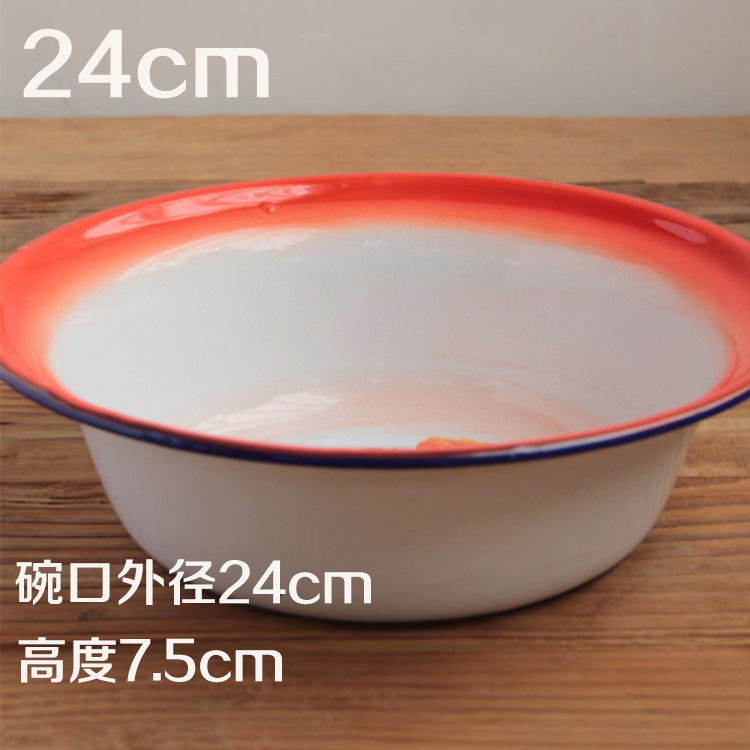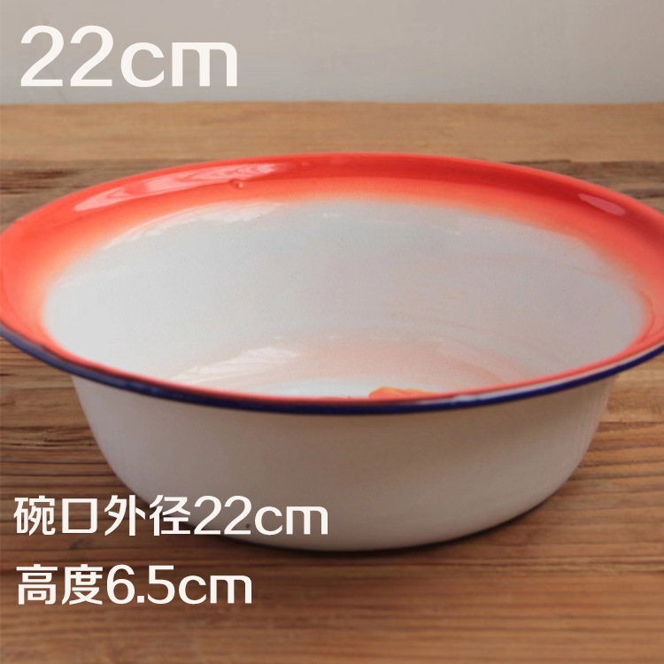 搪瓷碗红色平边盆复古汤盆饭盆餐厅用浅盆面碗市井火锅串串蒸菜碗