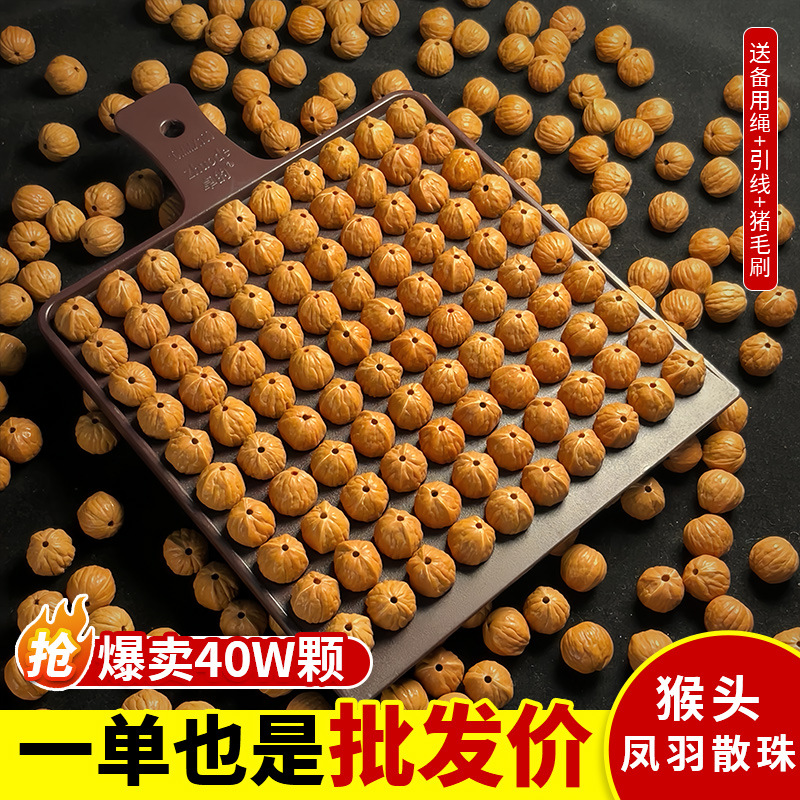 猴头凤羽桃核手串散珠子diy南瓜桩土豪原籽佛珠配珠手串男女批发