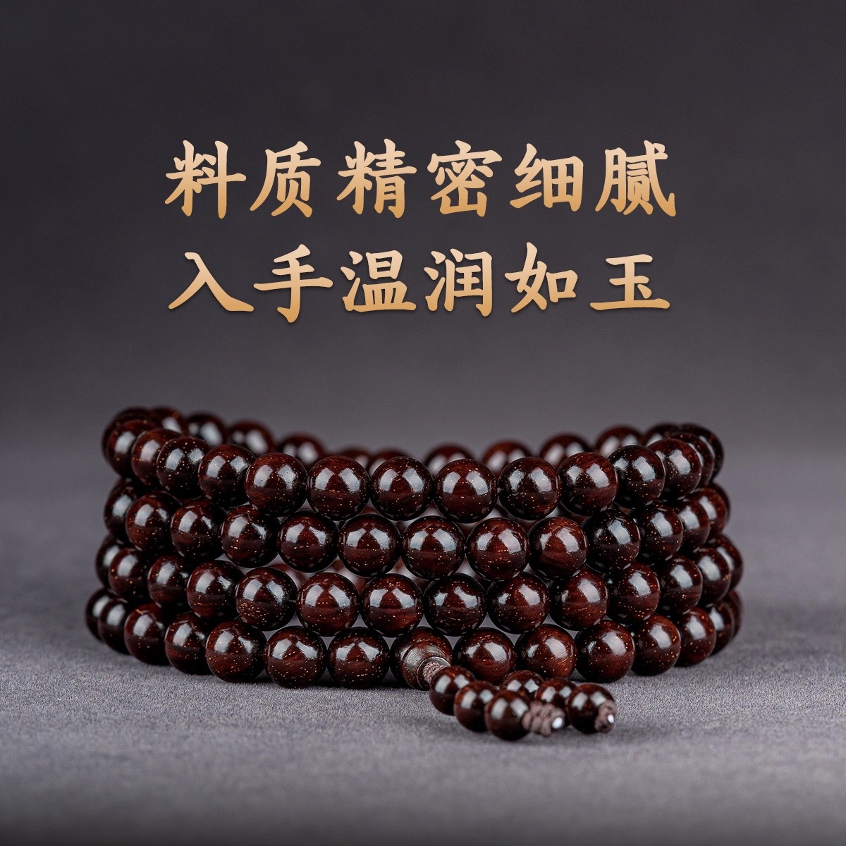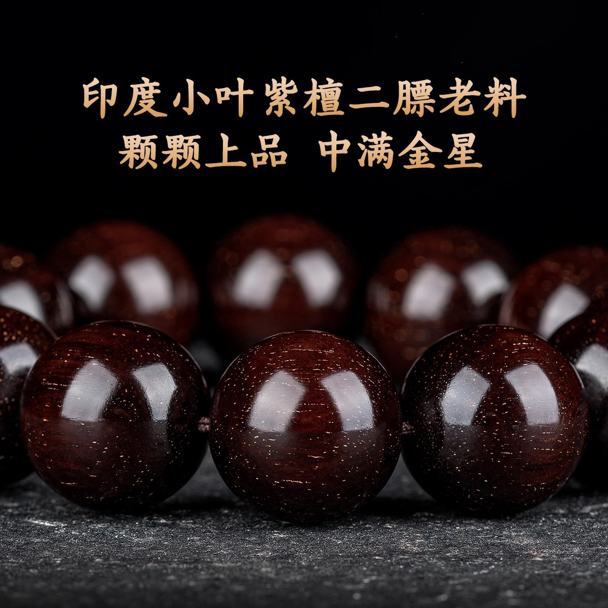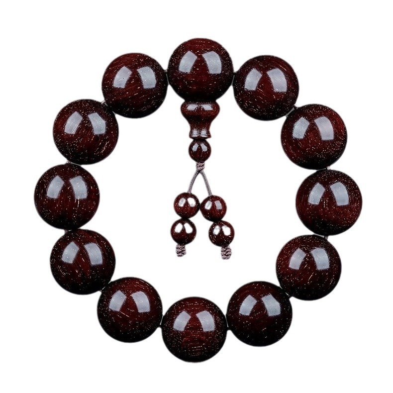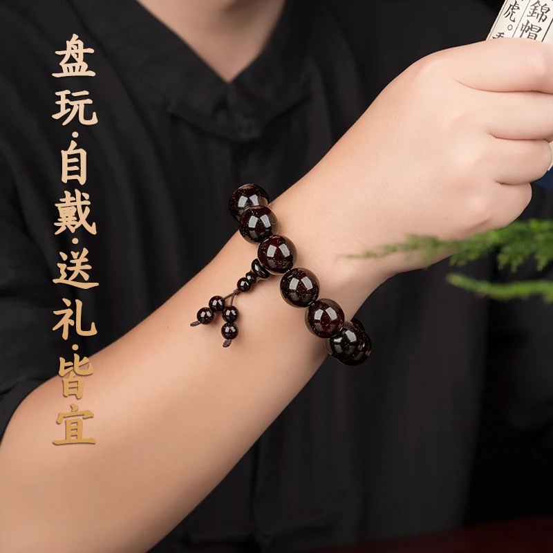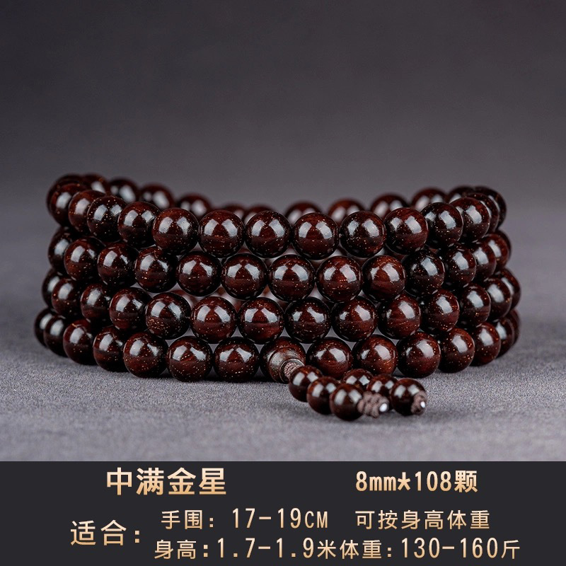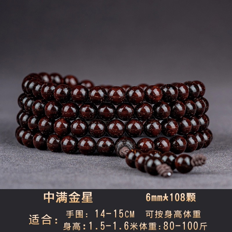 印度小叶紫檀手串沉水料男士高油金丝顺纹佛珠手串赞比亚血檀