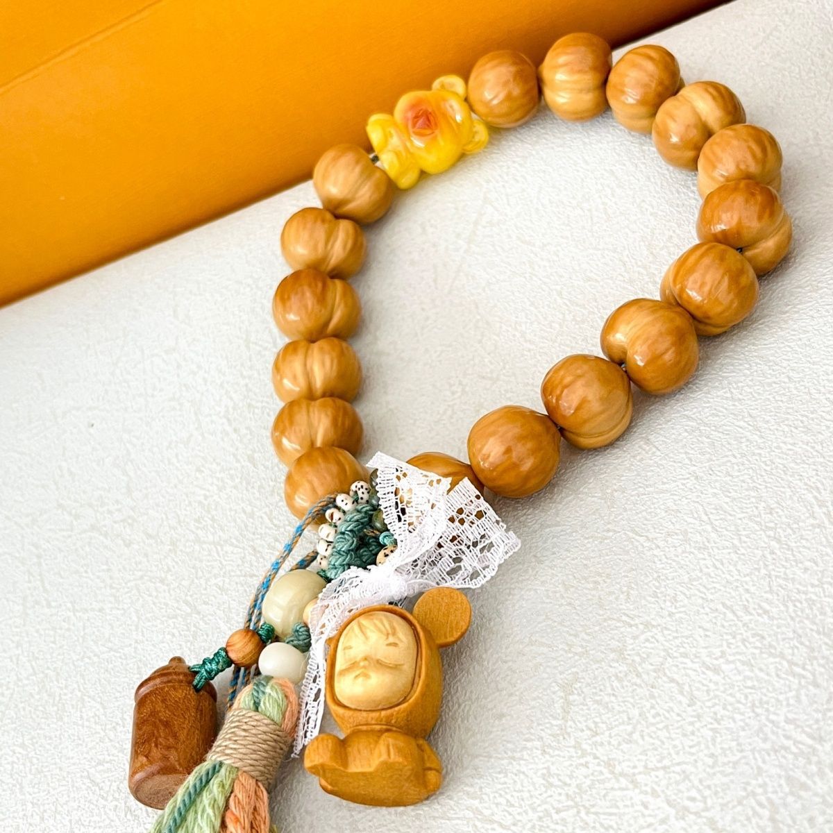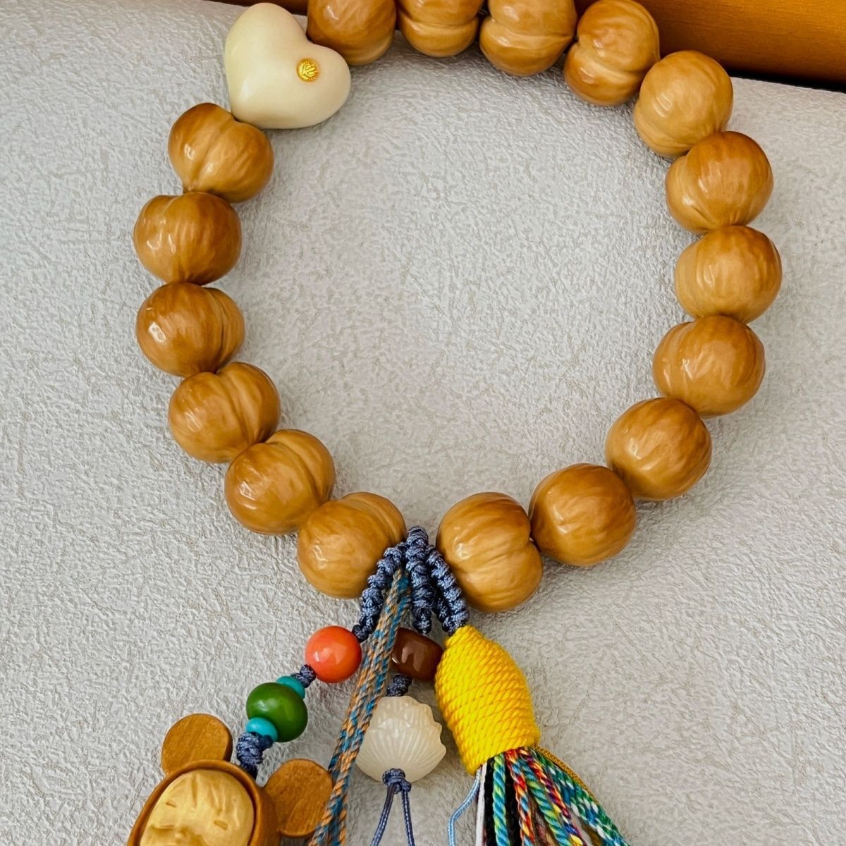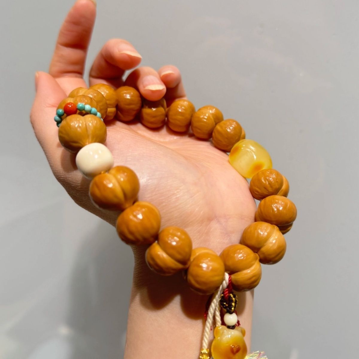 猴头核桃聚宝盆料手工雕刻屁桃姬宝手串全品爱心文玩手串*无配饰