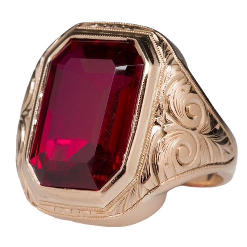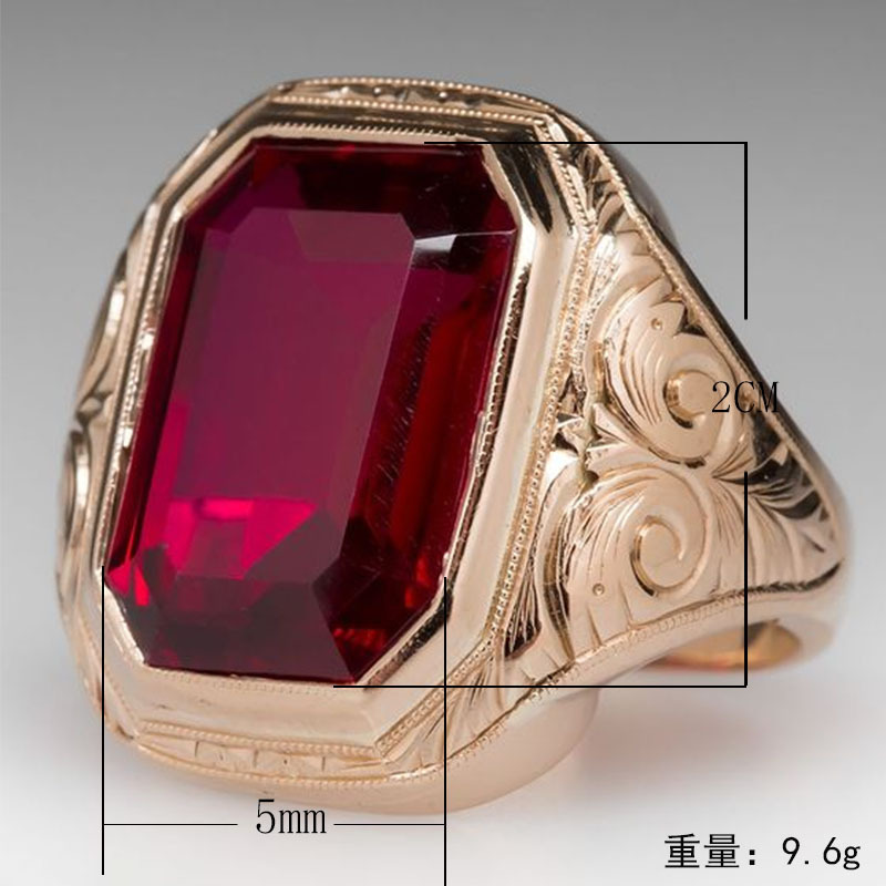 欧美跨境饰品 时尚几何方形红色宝石戒指 男士商务通勤百搭指环