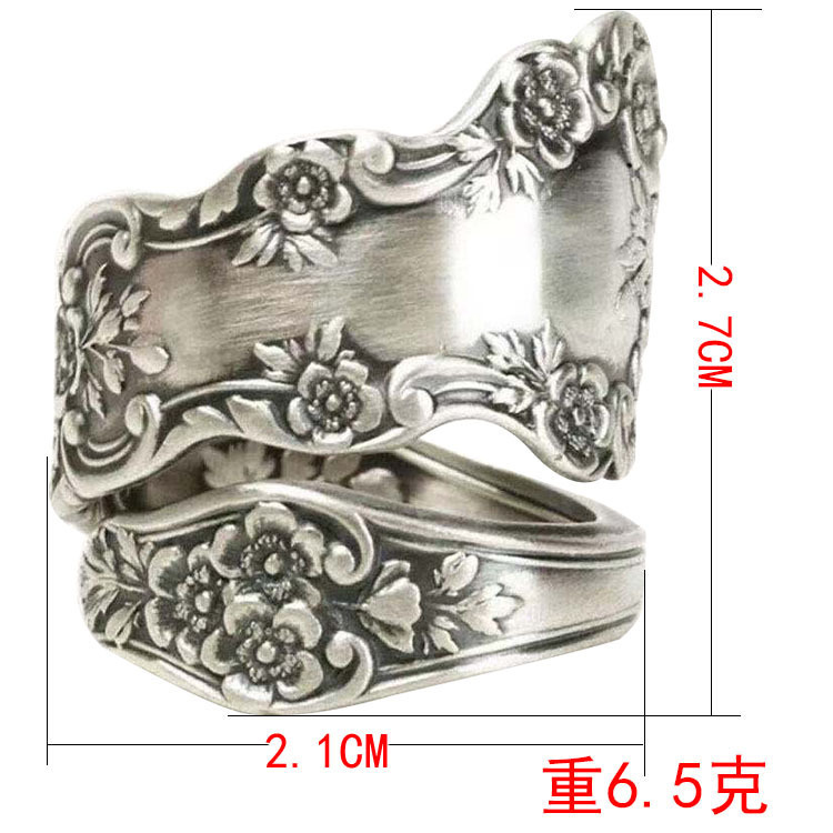 威娅wish跨境新款轻奢复古女士黑暗系花朵繁花争艳订婚戒活口戒指