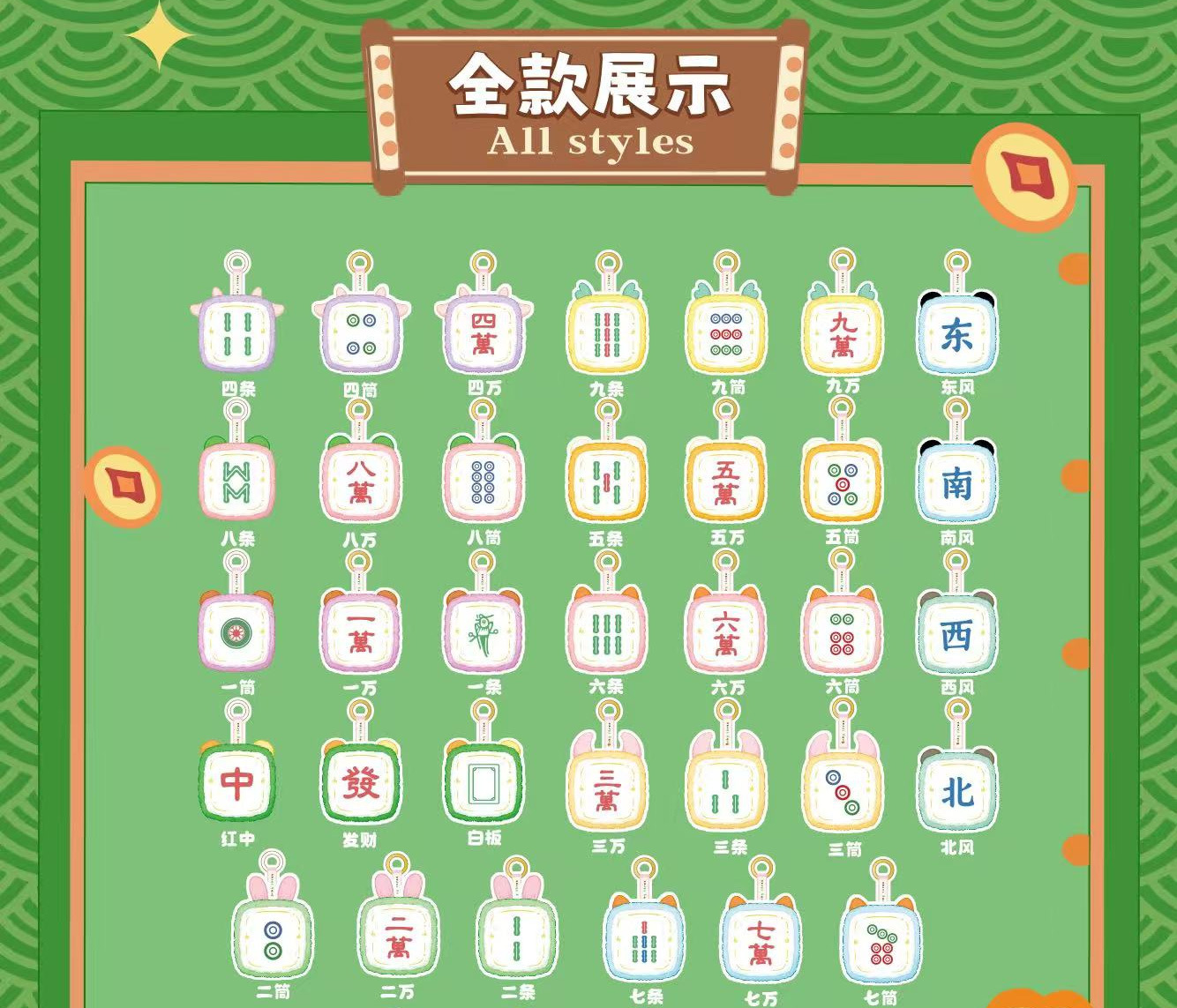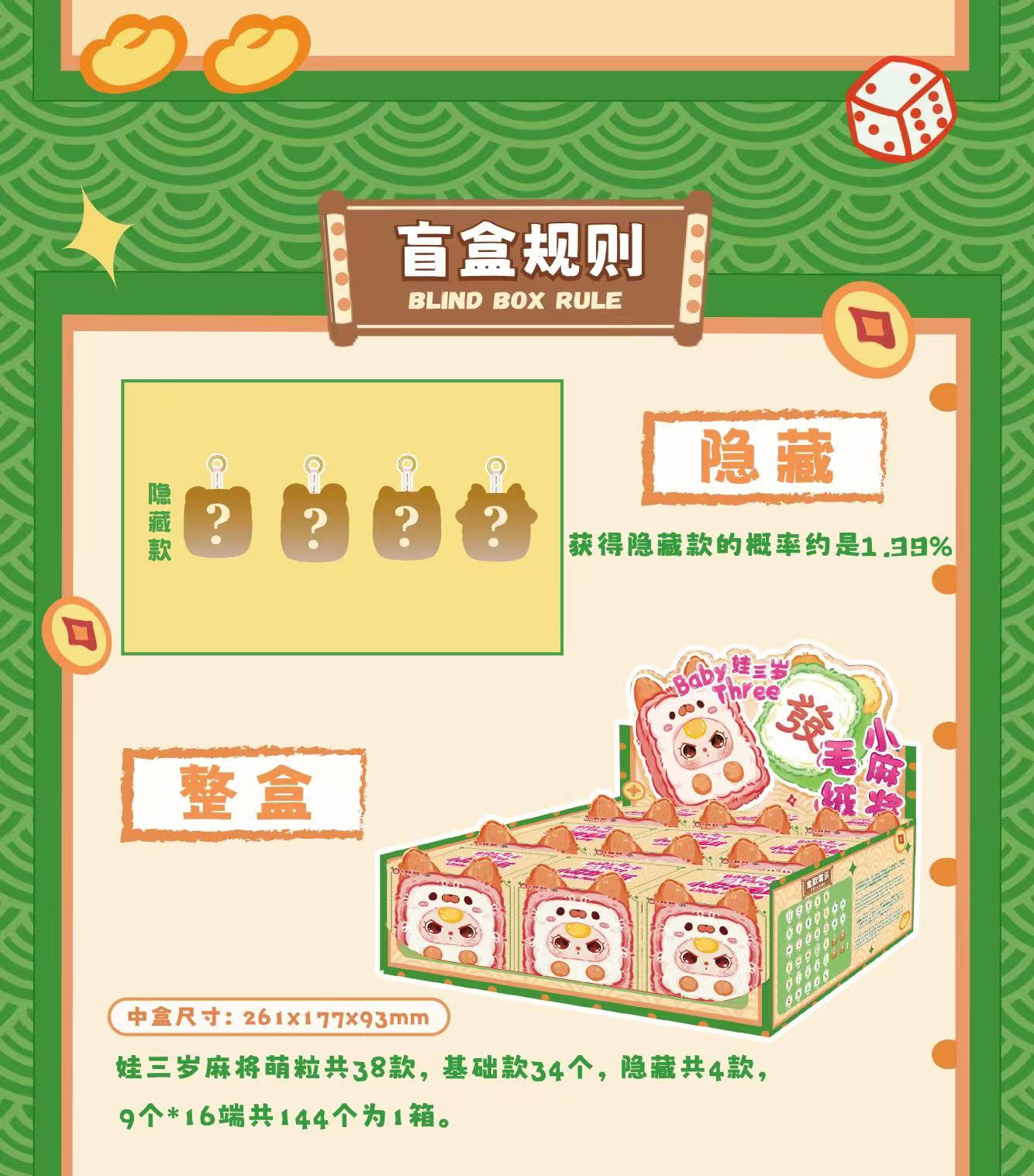 正版娃三岁小麻将毛绒系列包包挂件玩偶公仔玩具可爱盲盒批发